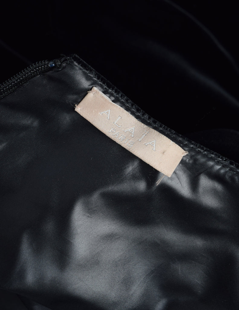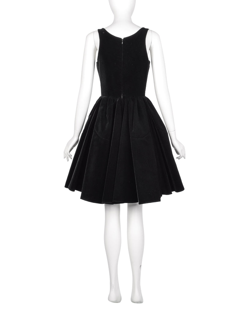 Azzedine Alaia Vintage Black Velvet Fit and Flare Full Skirt Dress