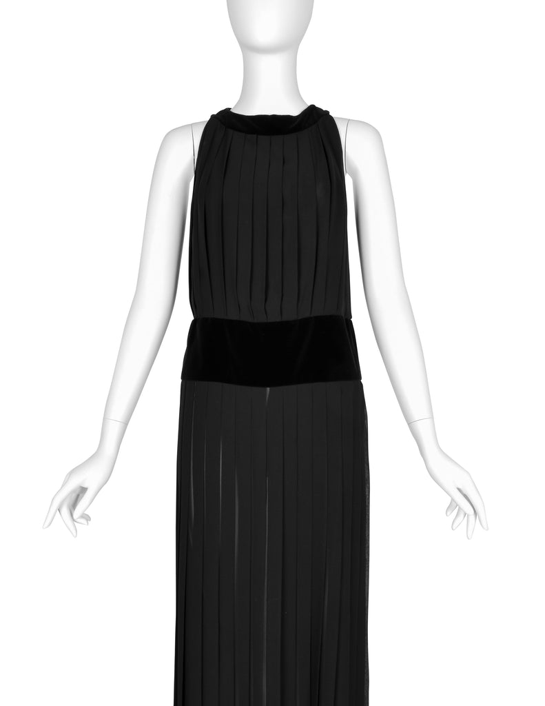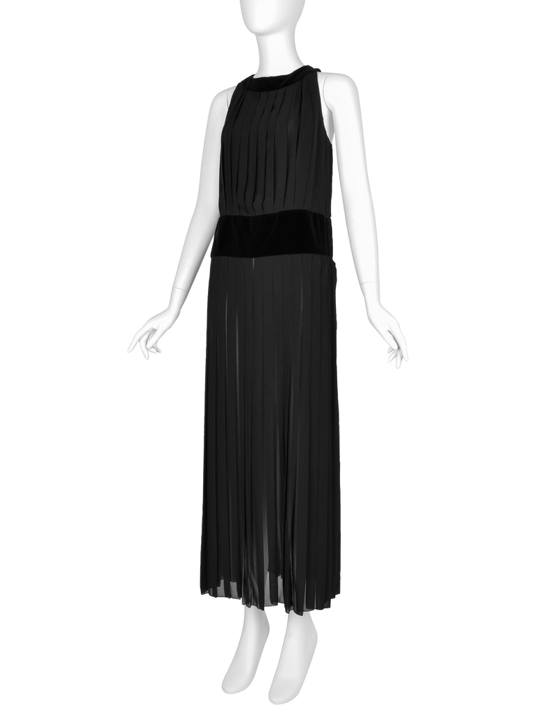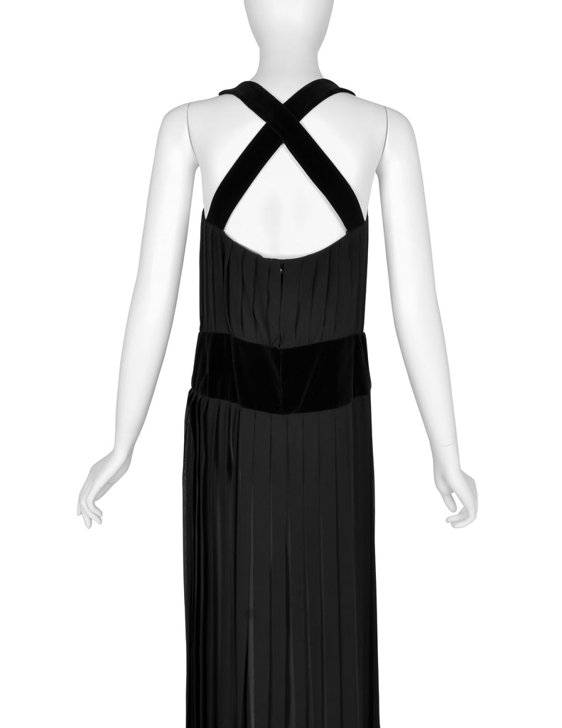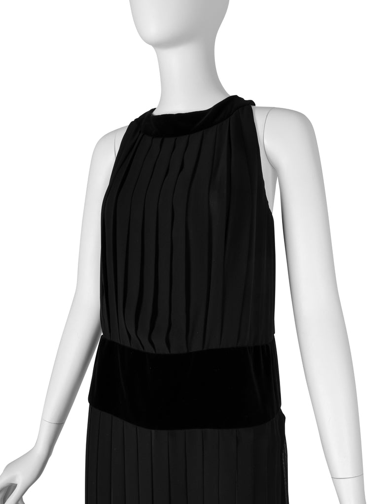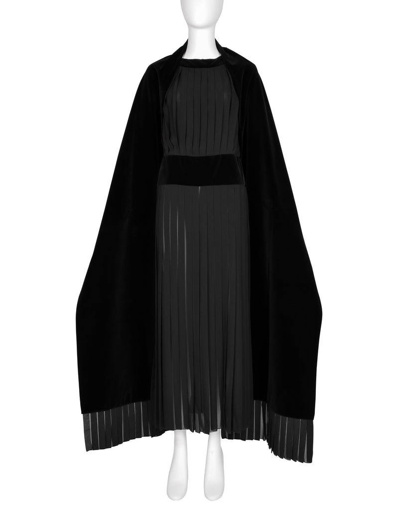 Chanel Vintage AW 1989 Black Pleated Silk and Velvet Gown with Matching Shawl