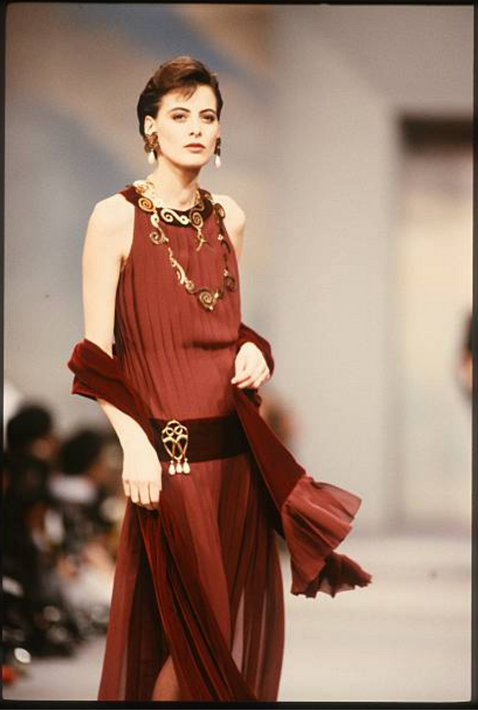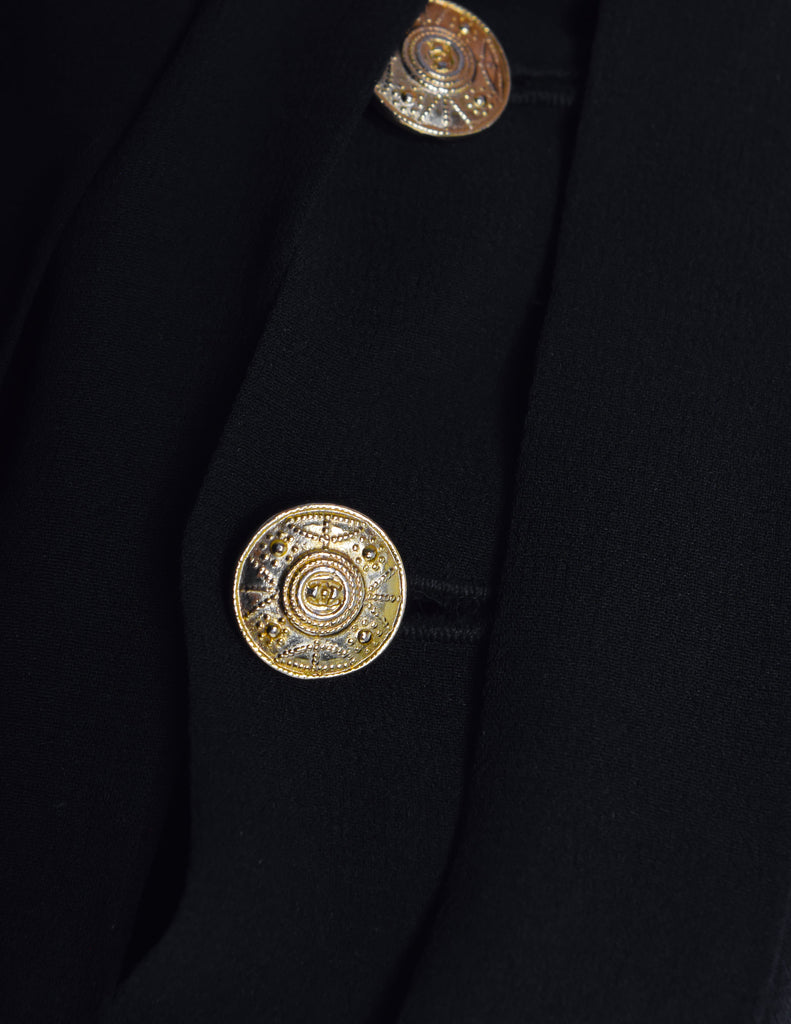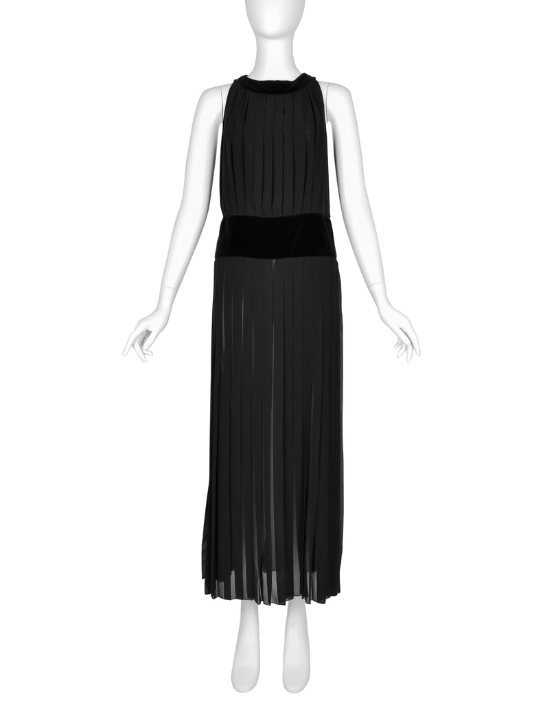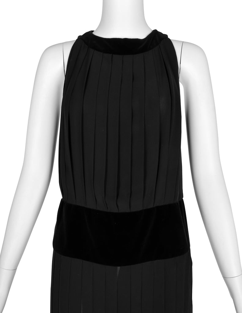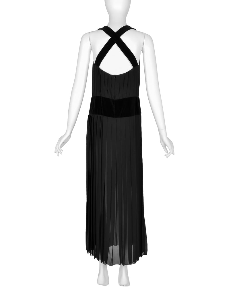Chanel Vintage AW 1989 Black Pleated Silk and Velvet Gown with Matching Shawl
