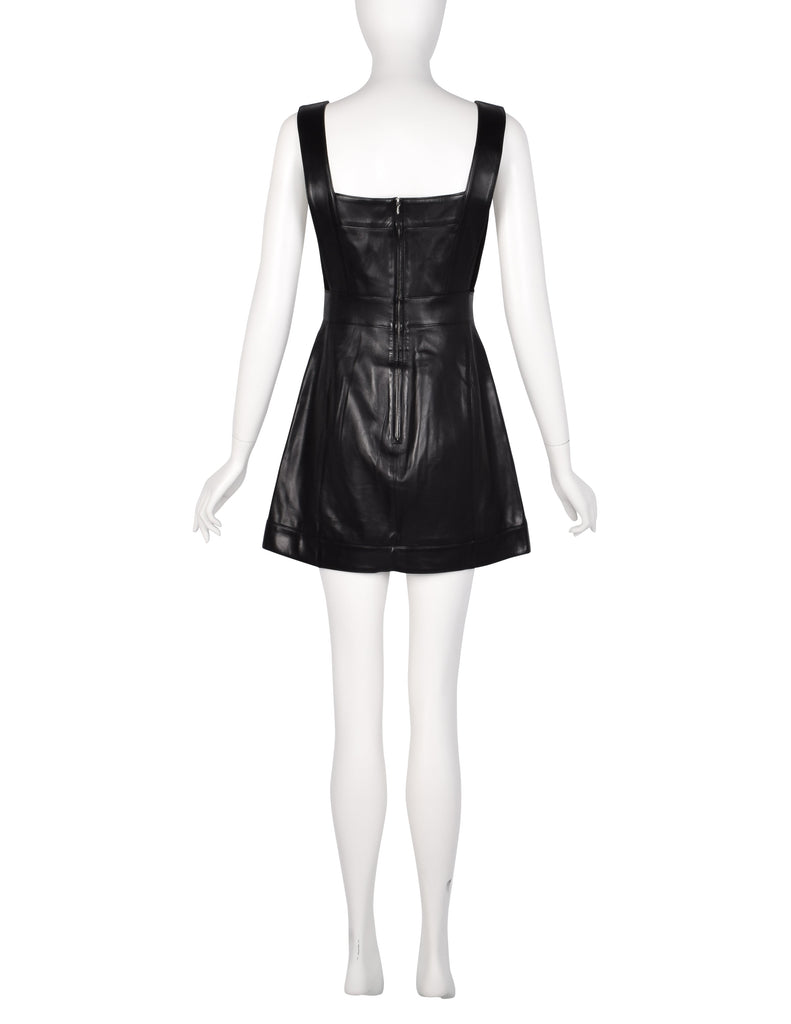 Herve Leger Vintage Black Leather Bustier Mini Dress