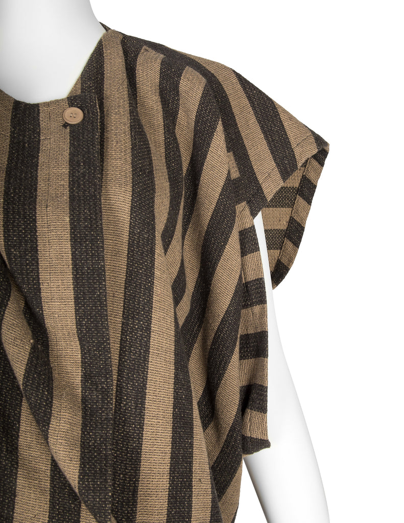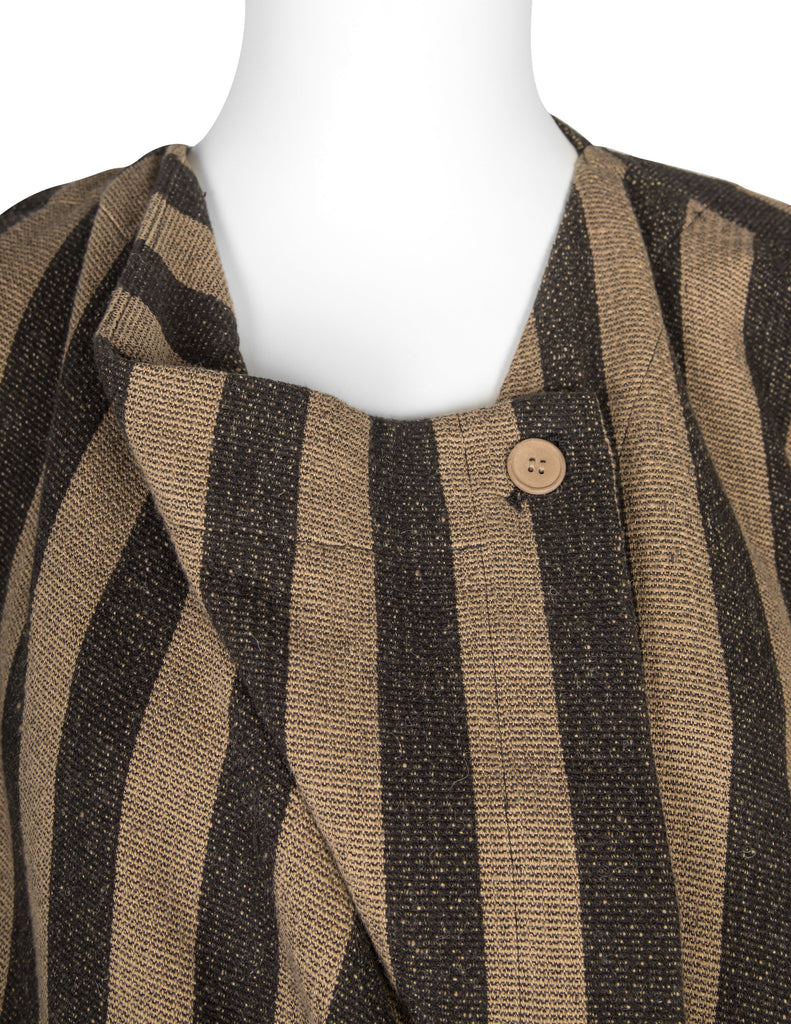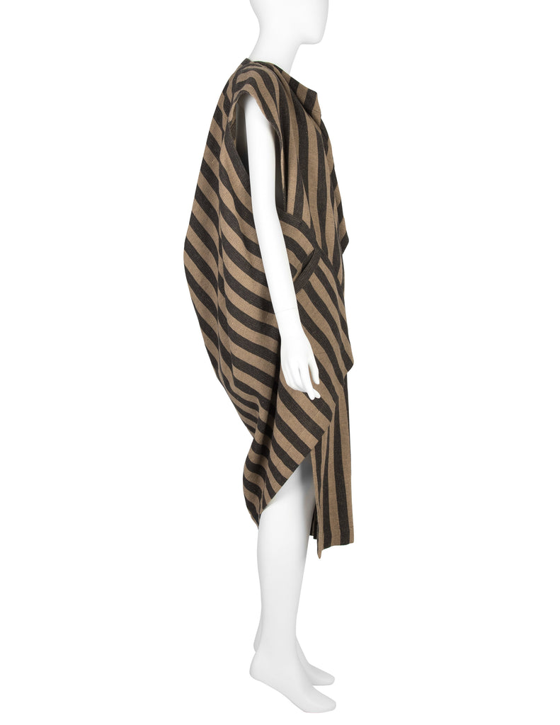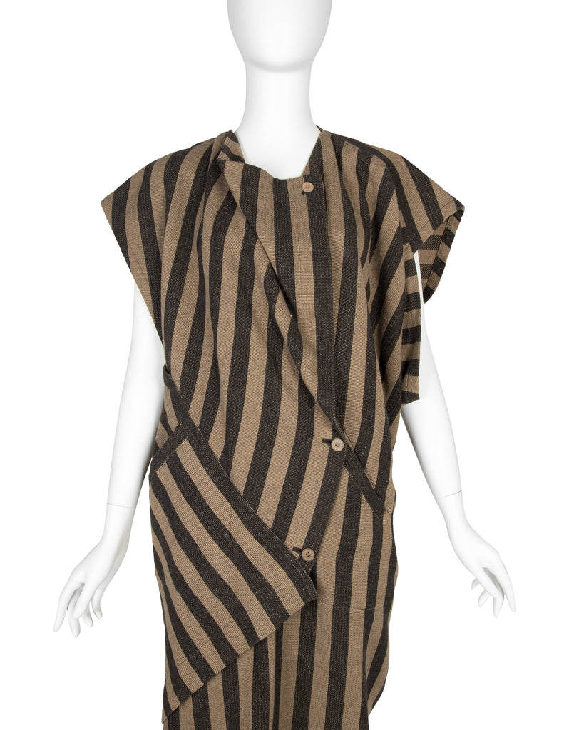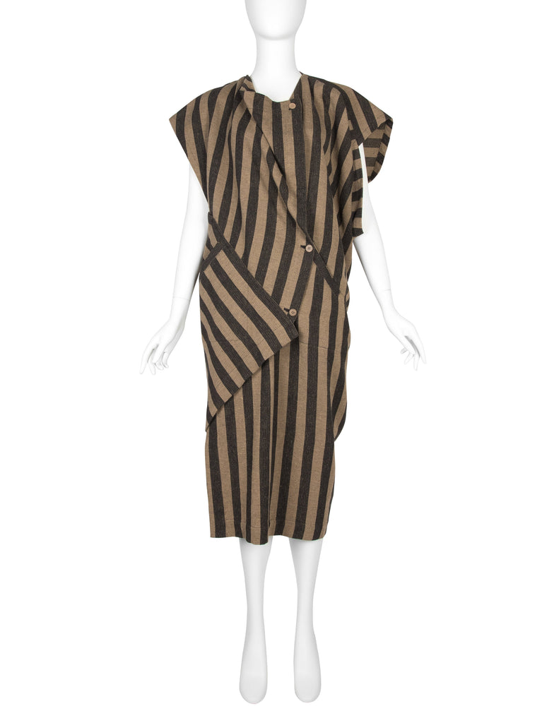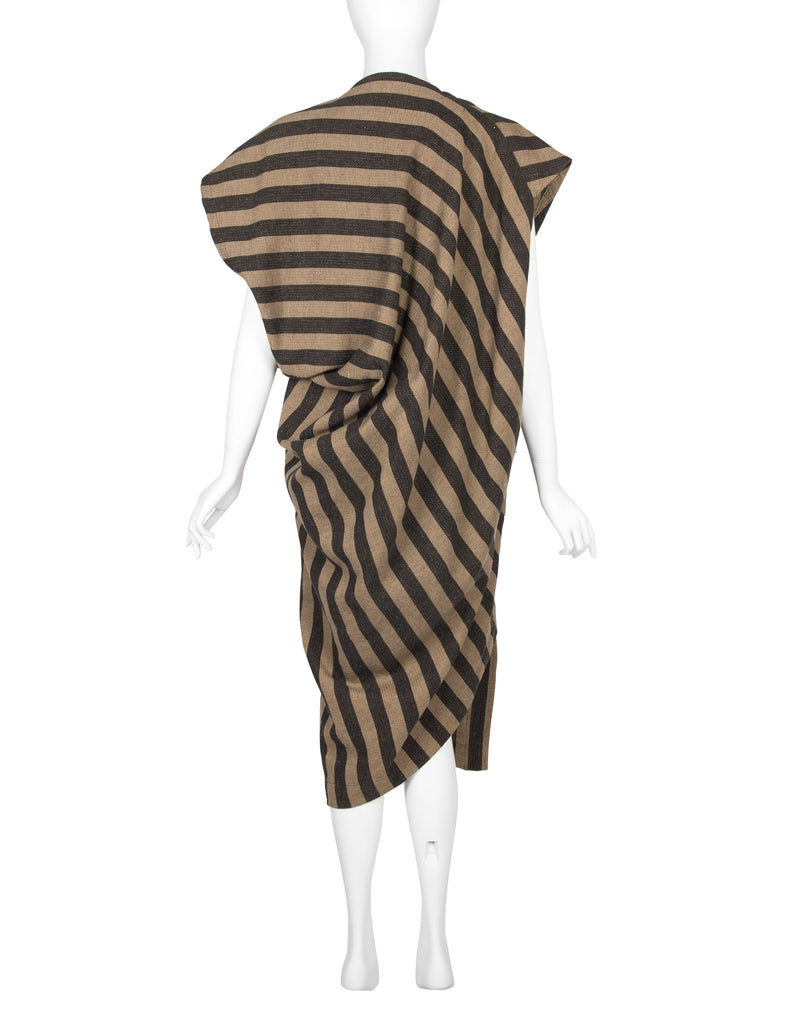 Issey Miyake AW 1984 Beige and Grey Striped Draping Conceptual Dress