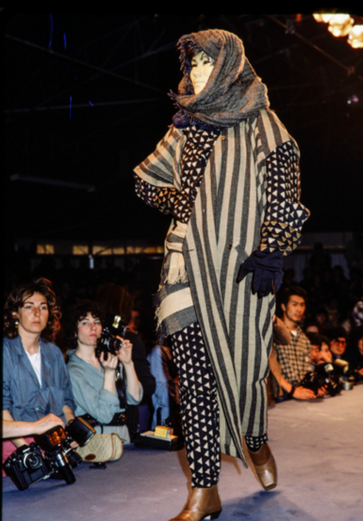 Stunning and rare vintage Issey Miyake dress from Fall/Winter 1984, shown here documented on the runway.