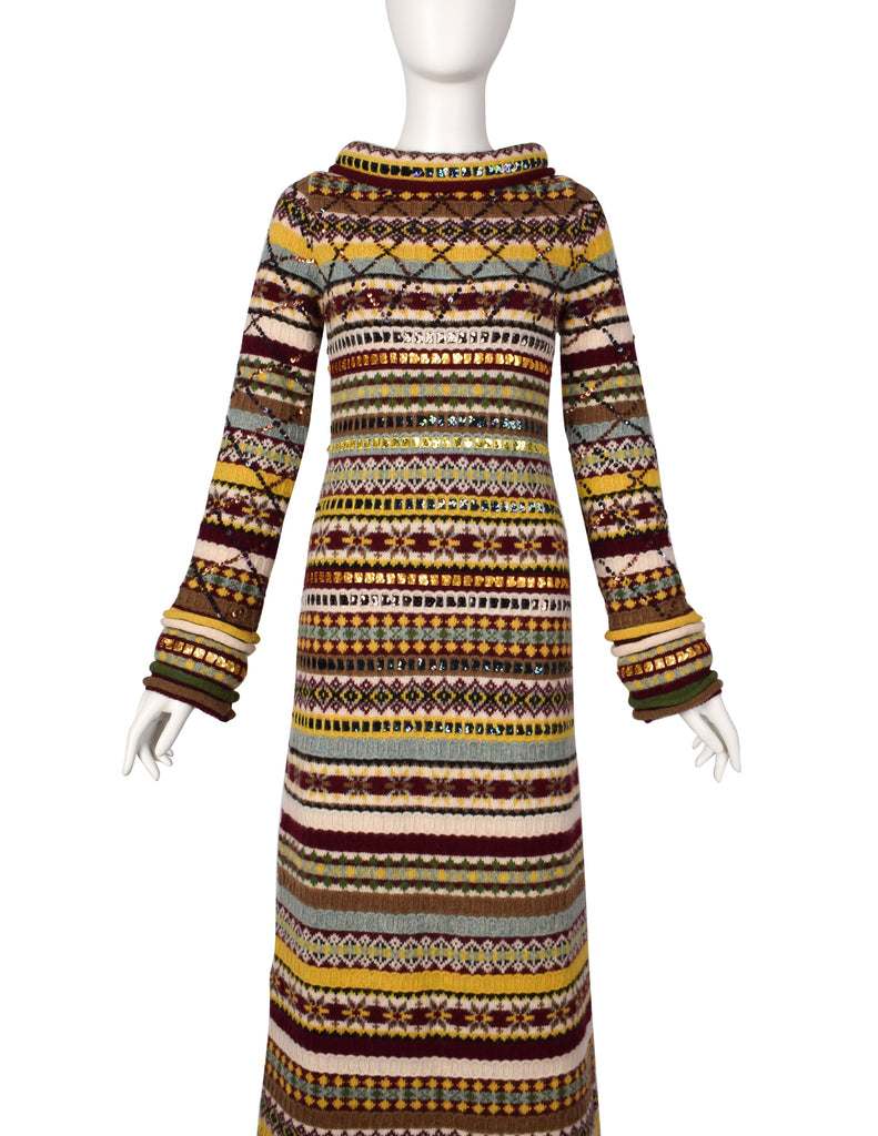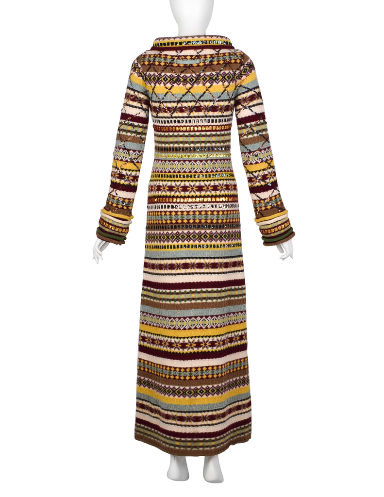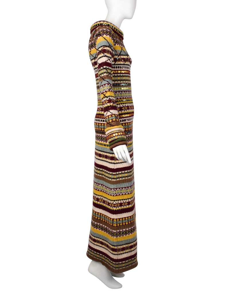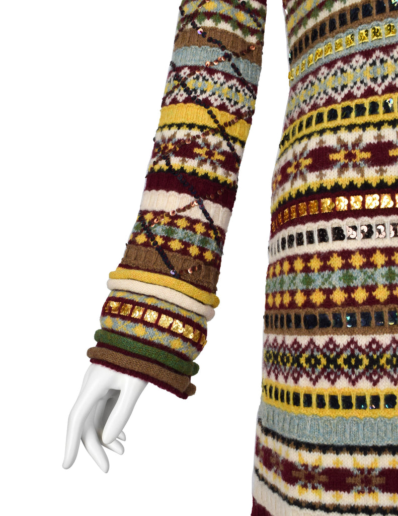 Jean Paul Gaultier AW 1999 Multicolor Fair Isle Sequin Embellished Knit Maxi Sweater Dress