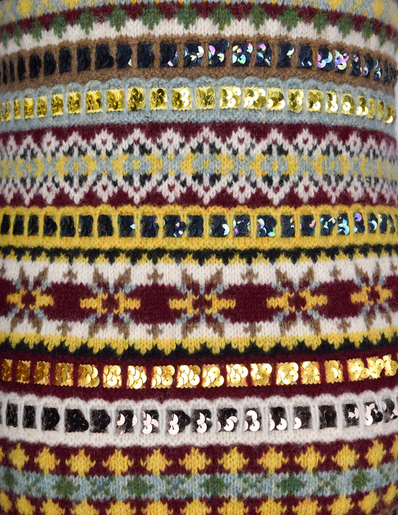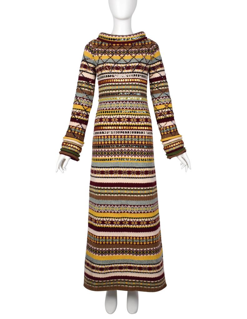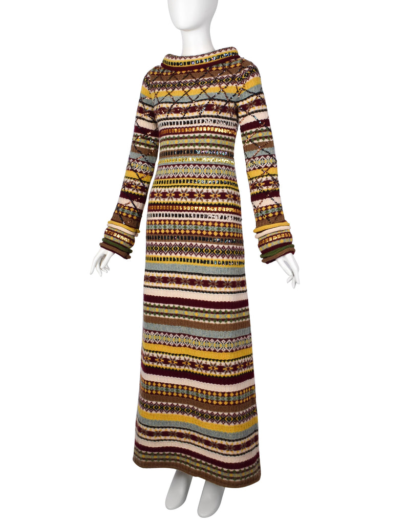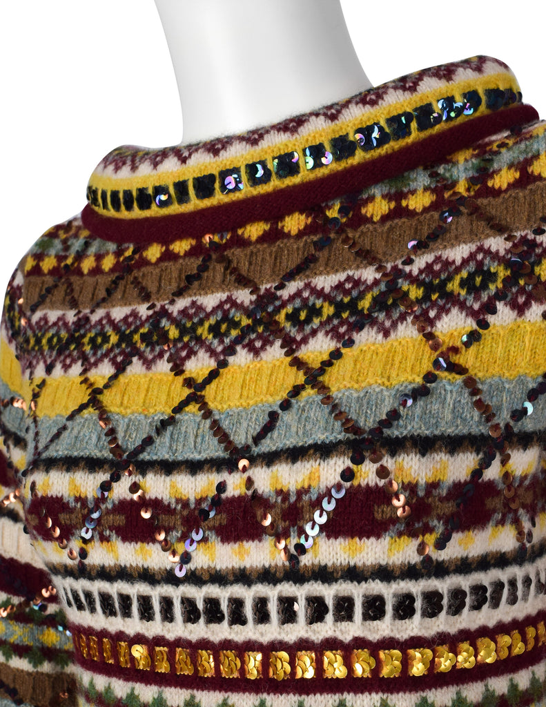 Jean Paul Gaultier AW 1999 Multicolor Fair Isle Sequin Embellished Knit Maxi Sweater Dress