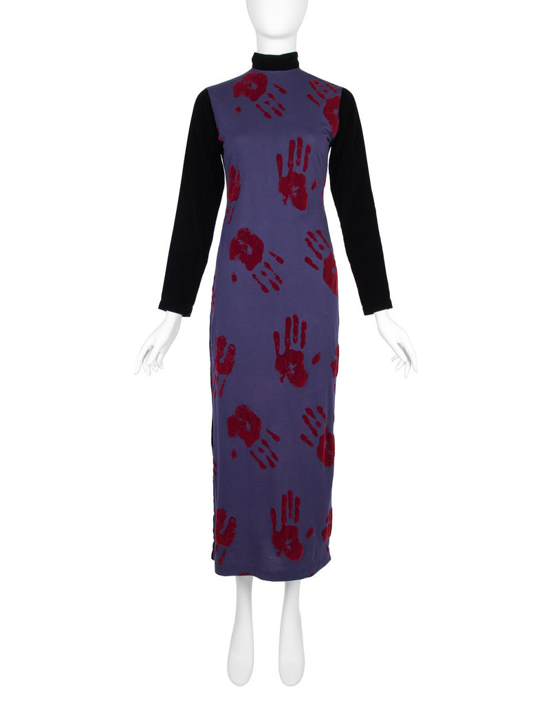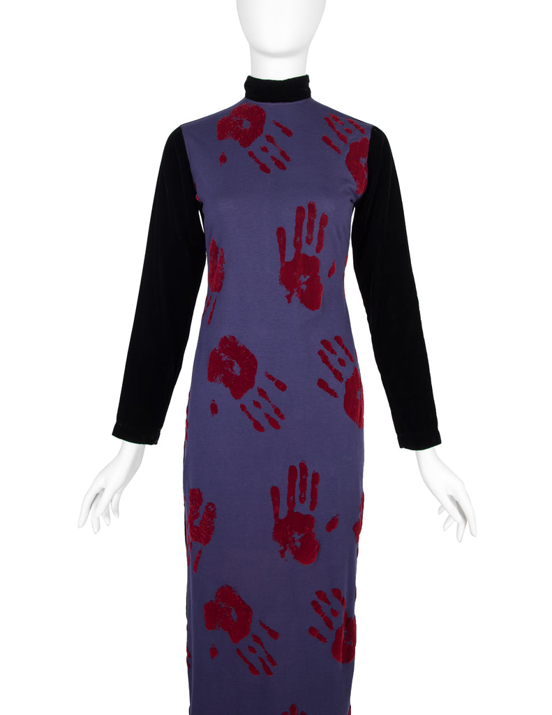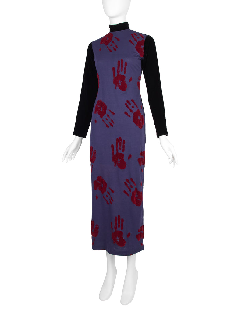Jean Paul Gaultier Vintage AW 1991 Cotton and Velvet Hand Print Dress