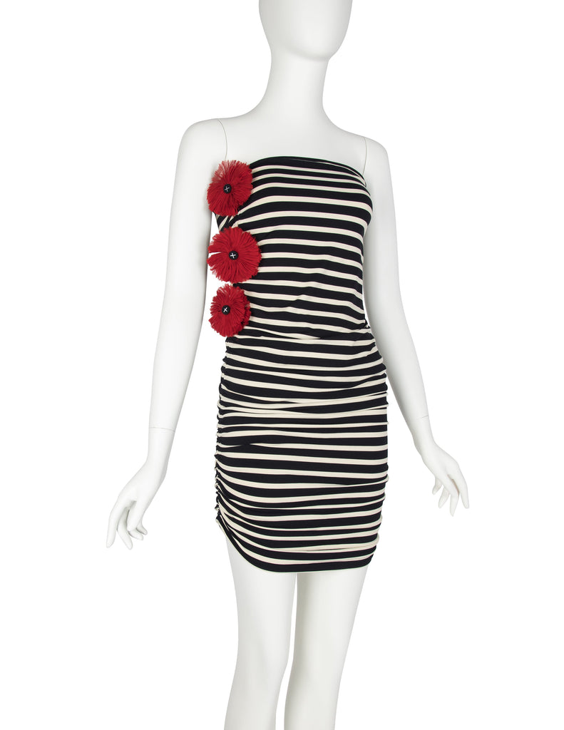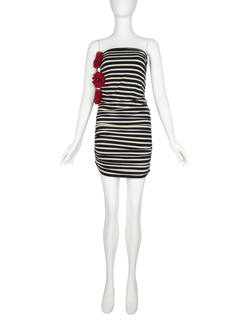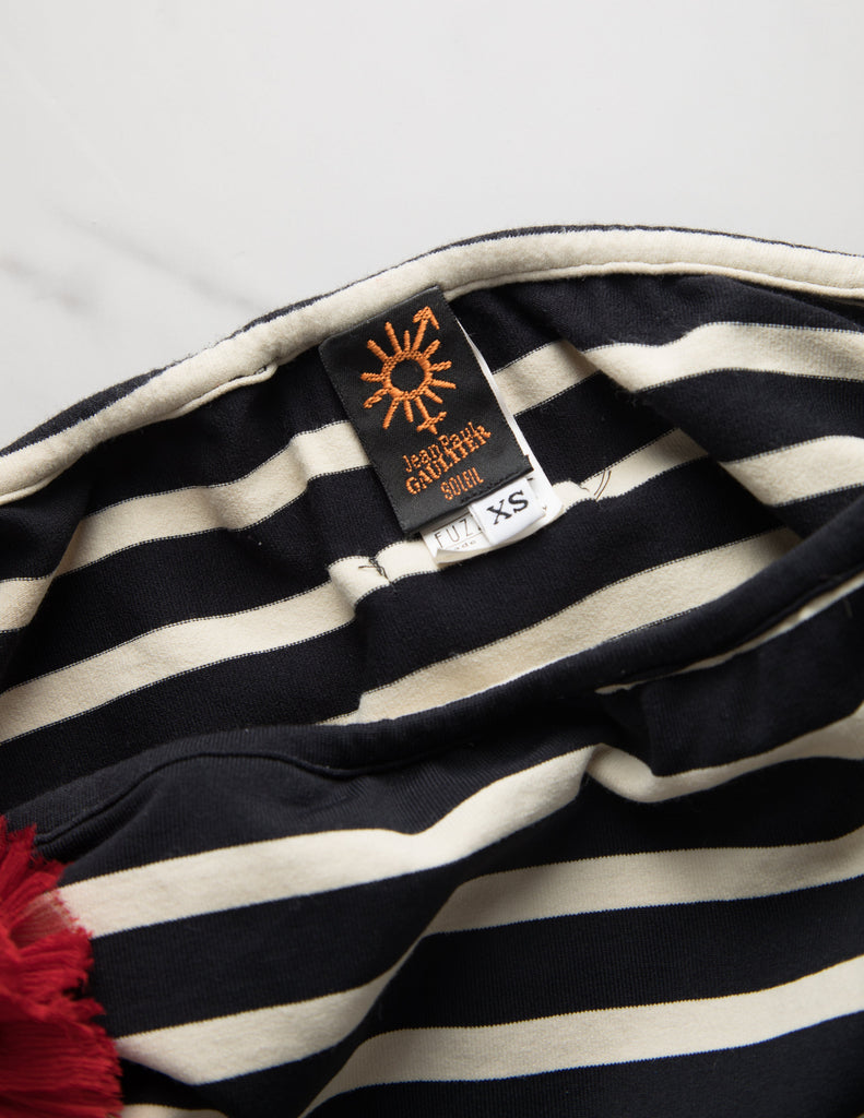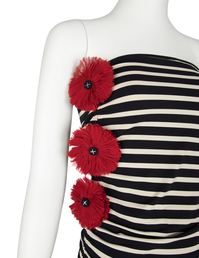 Jean Paul Gaultier Vintage Black White Striped Red Flower Ruched Mini Dress / Skirt