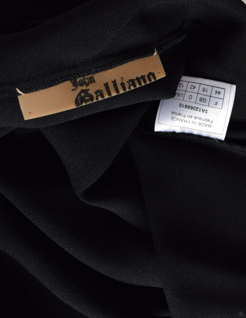 John Galliano Vintage AW2003 Black Hammered Satin Draping Lace Bias Dress
