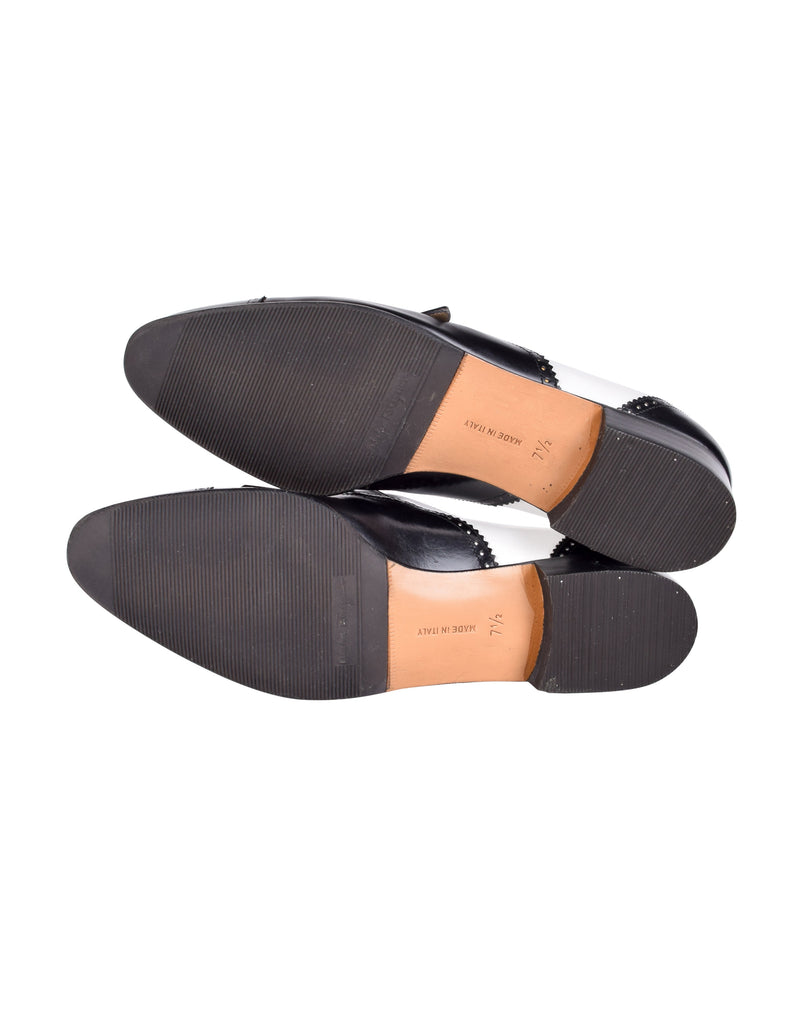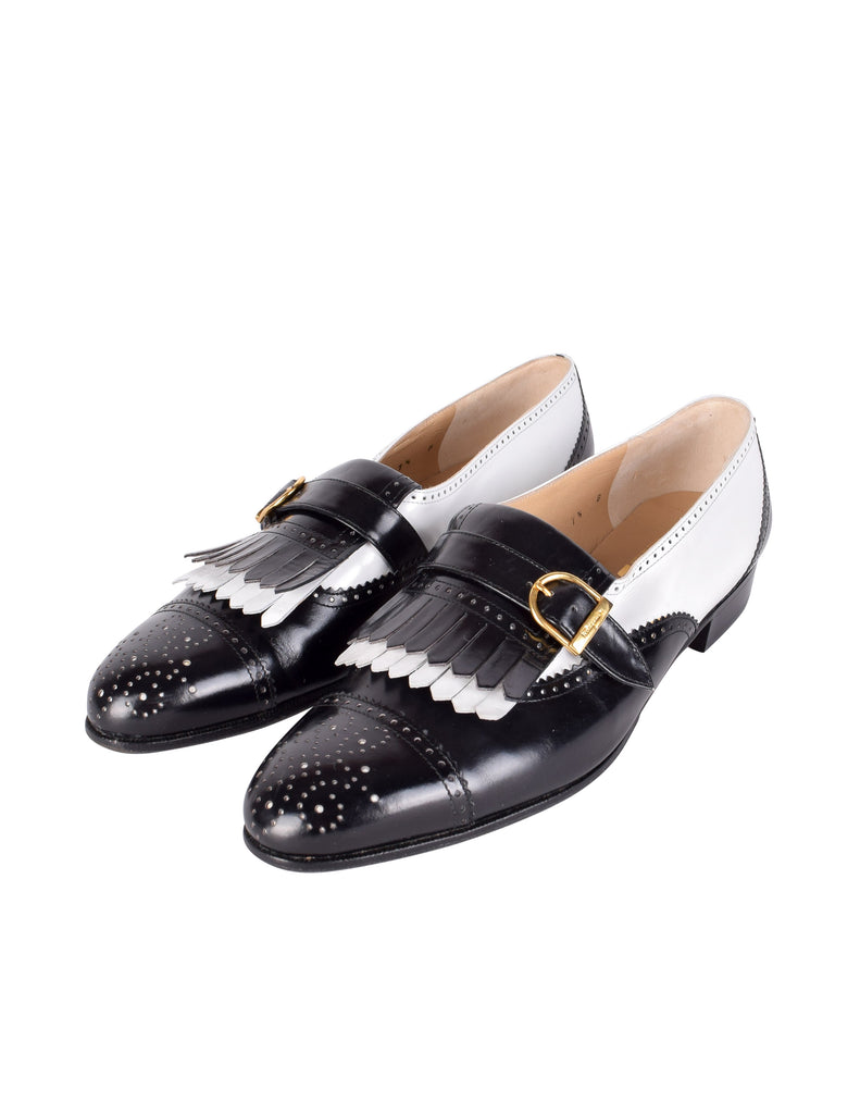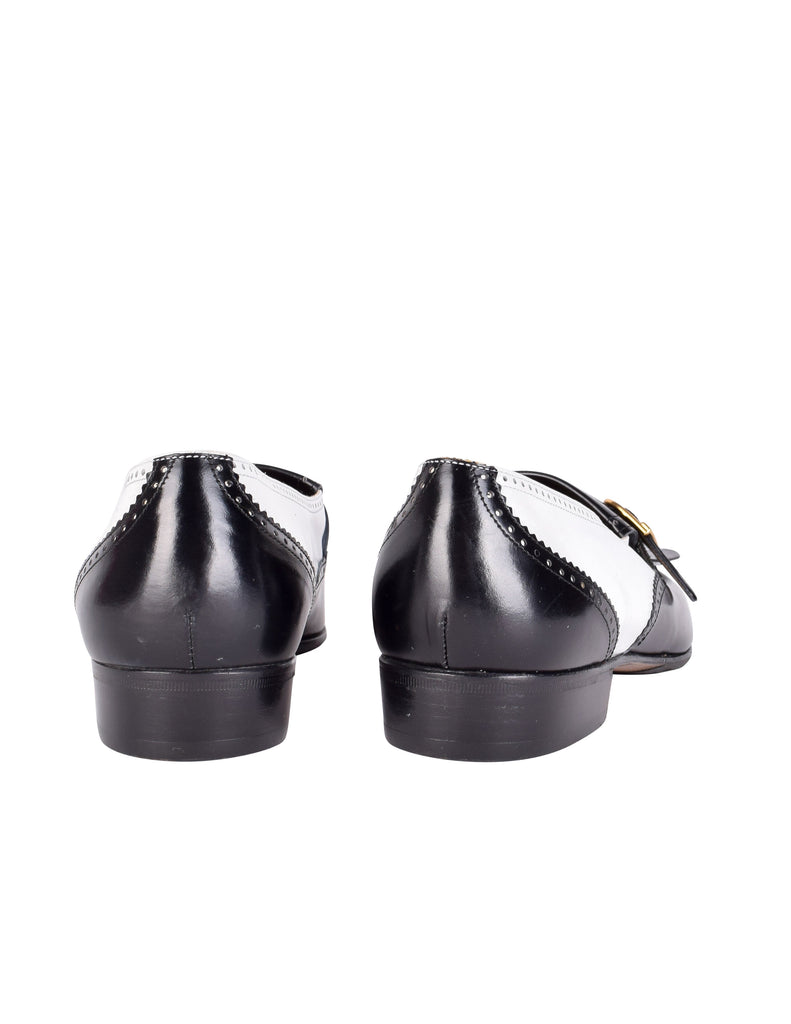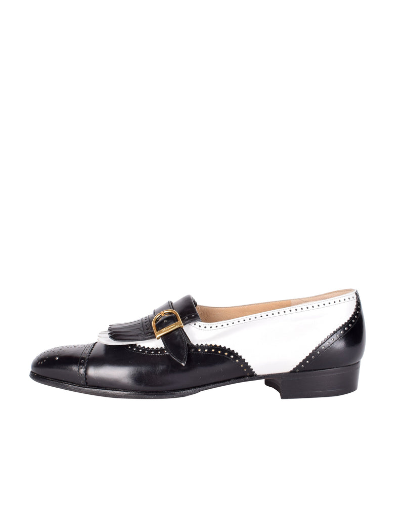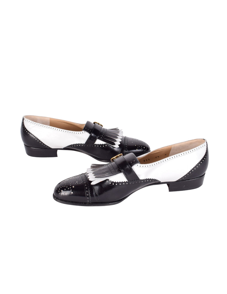 Ferragamo Vintage Black and White Leather Kiltie Buckle Shoes
