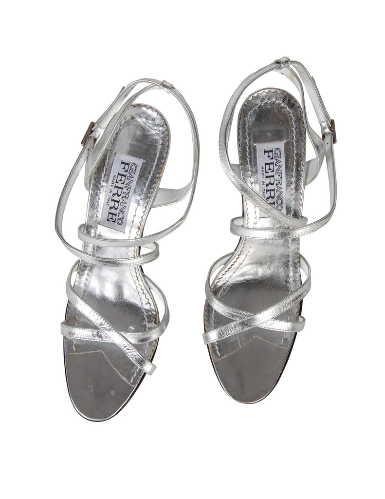 Gianfranco Ferre Vintage Metallic Silver Leather Strappy Heels