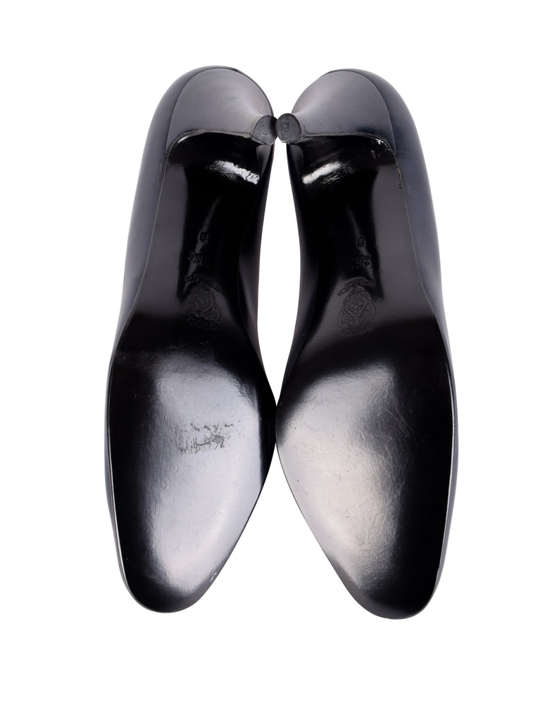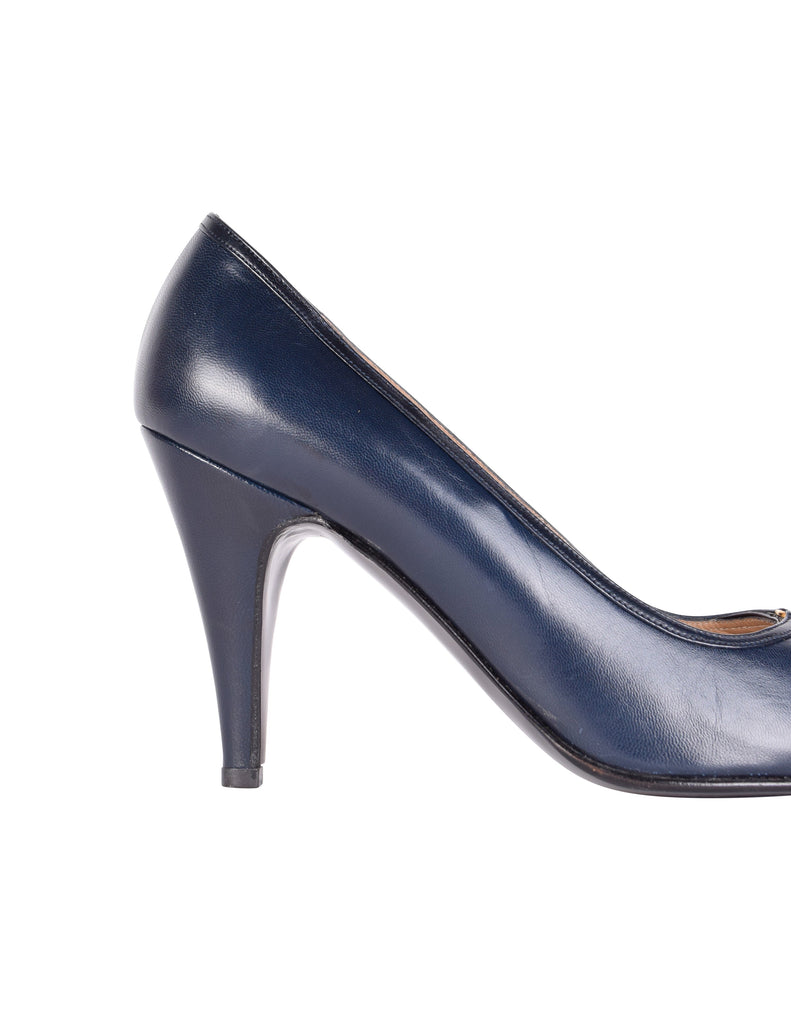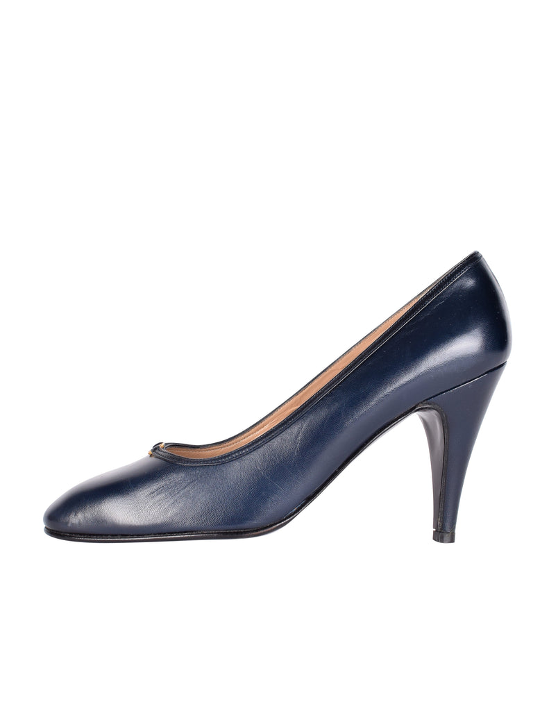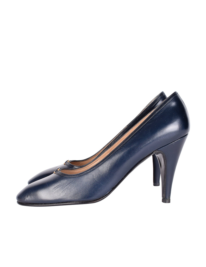 Gucci Vintage AW 1985 Navy Blue Leather Golden Logo Heels