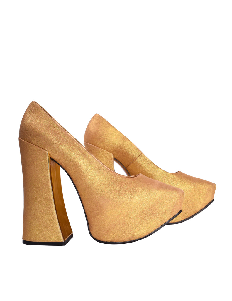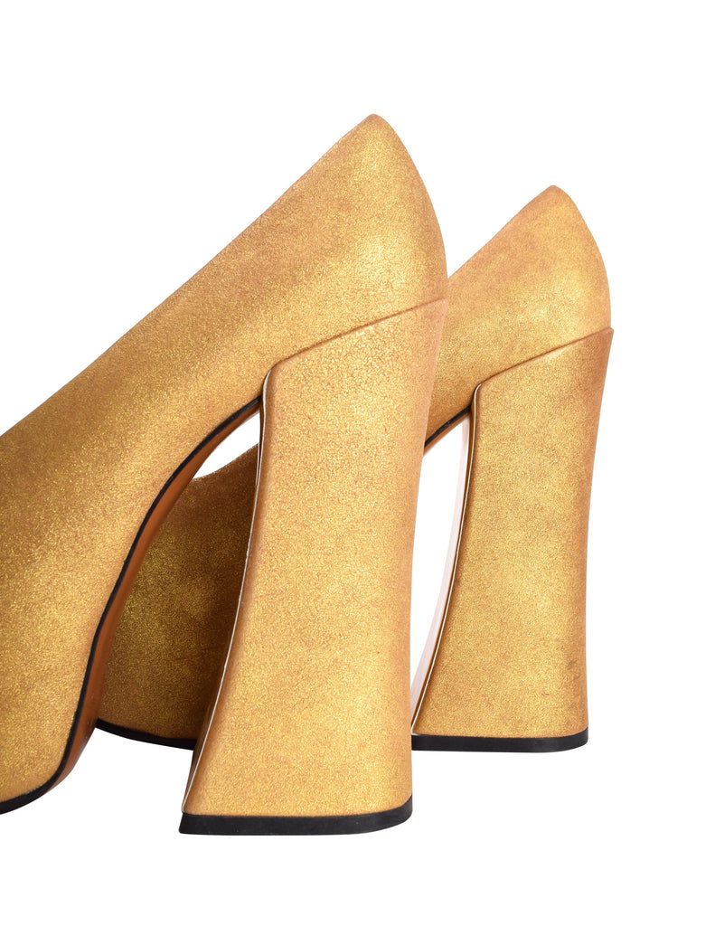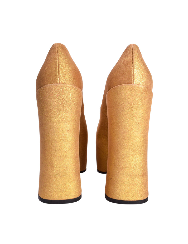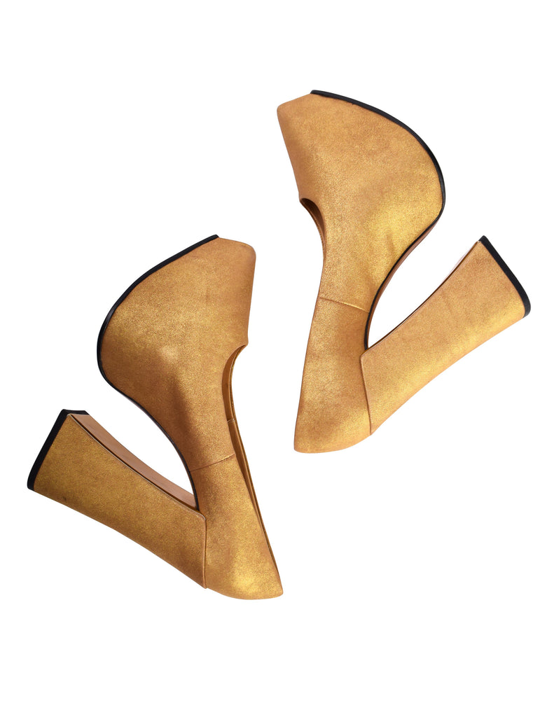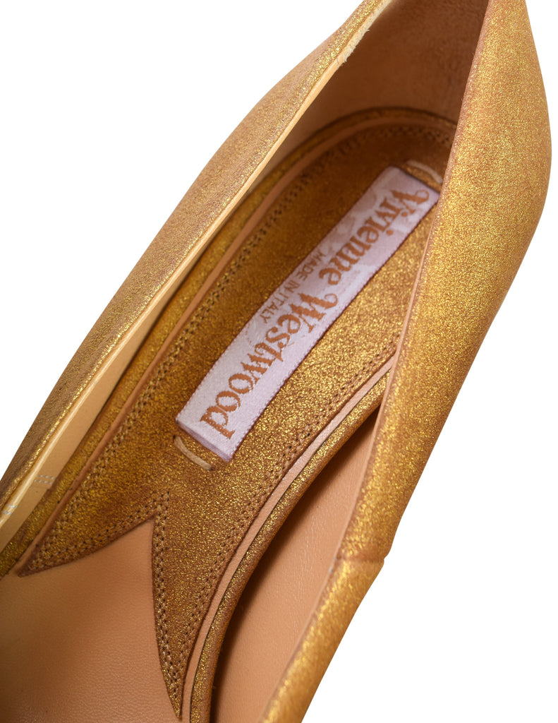 Vivienne Westwood Gold Nubuck Leather Pointed Toe Arctic Platform Heels