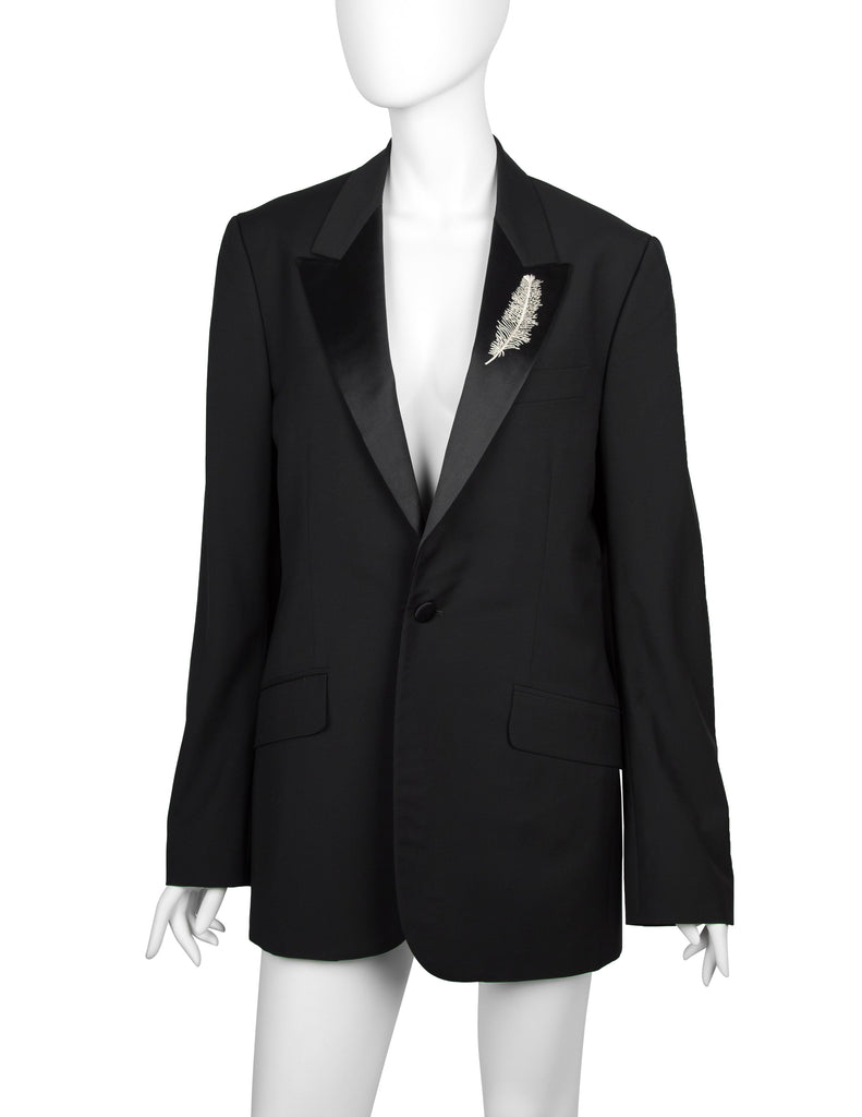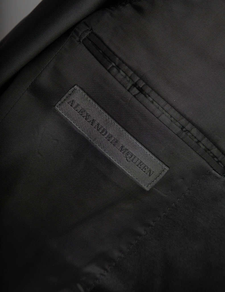 Alexander McQueen Vintage SS 2007 Black Wool Satin Feather Lapel Jacket