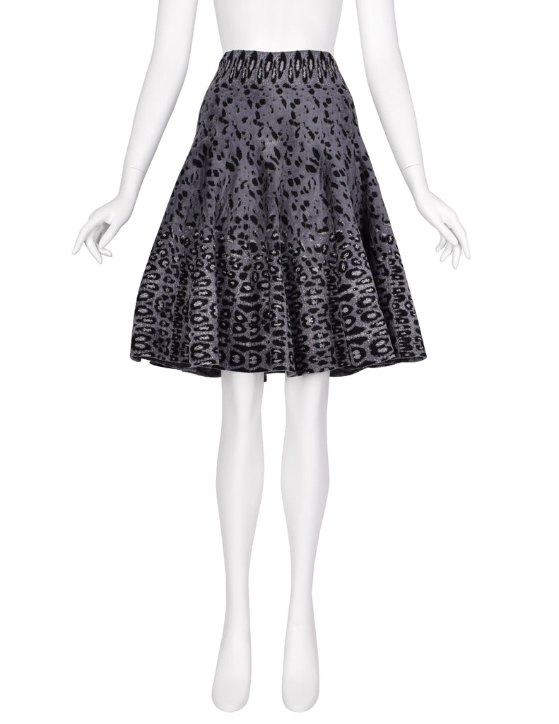 Azzedine Alaia AW 2011 Grey Leopard Knit Fluted Skirt
