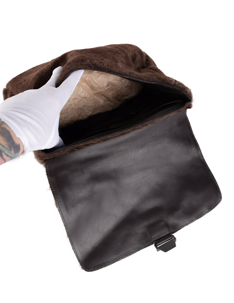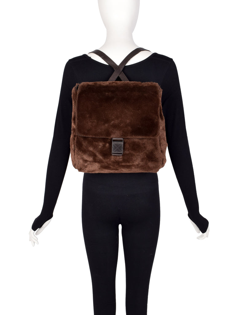 Bottega Veneta Vintage 1990s Brown Faux Fur Leather Backpack