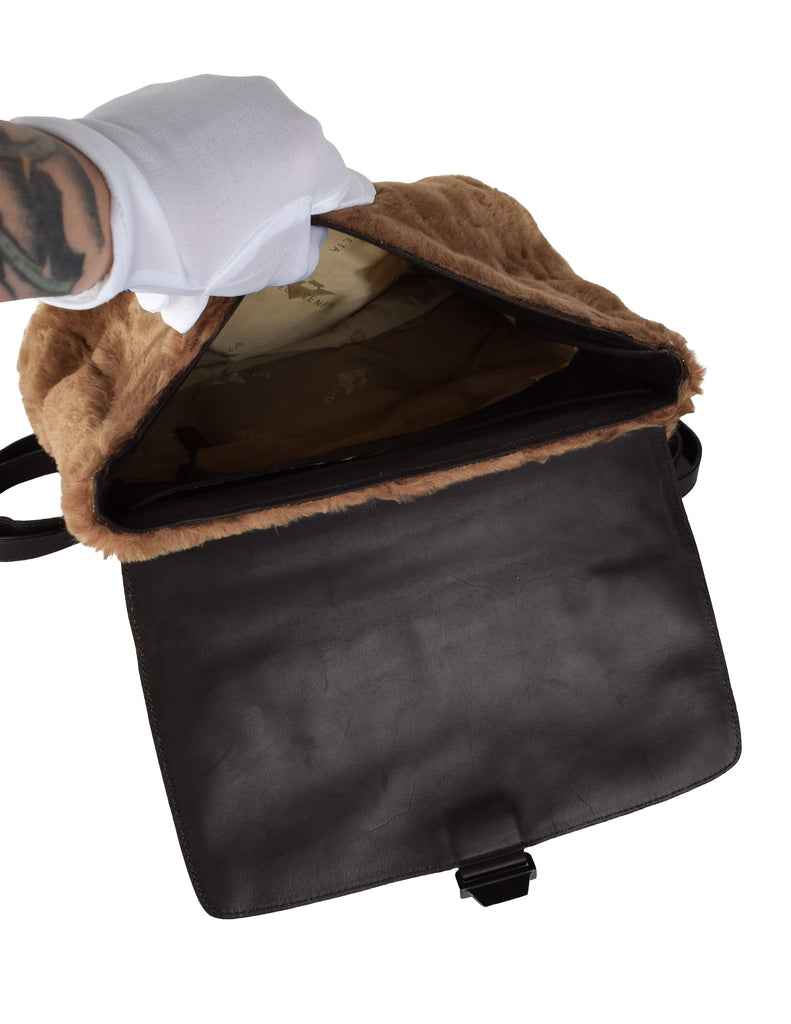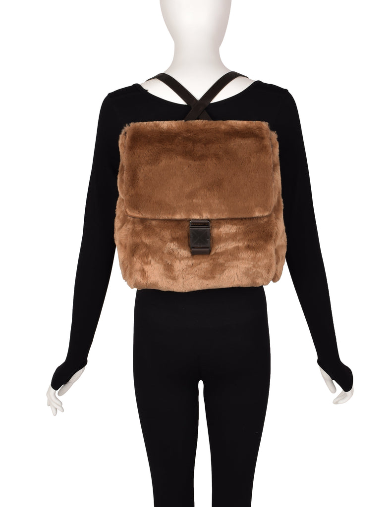 Bottega Veneta Vintage 1990s Dark Brown Faux Fur Leather Backpack