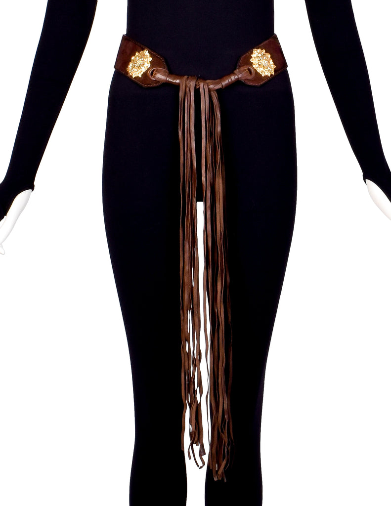 Bottega Veneta Vintage Brown Suede and Leather Lion's Head Wrap Tassel Belt