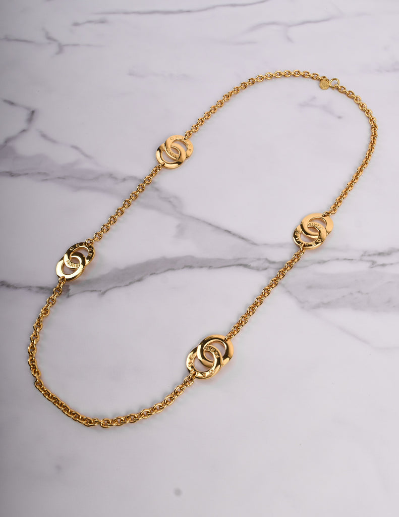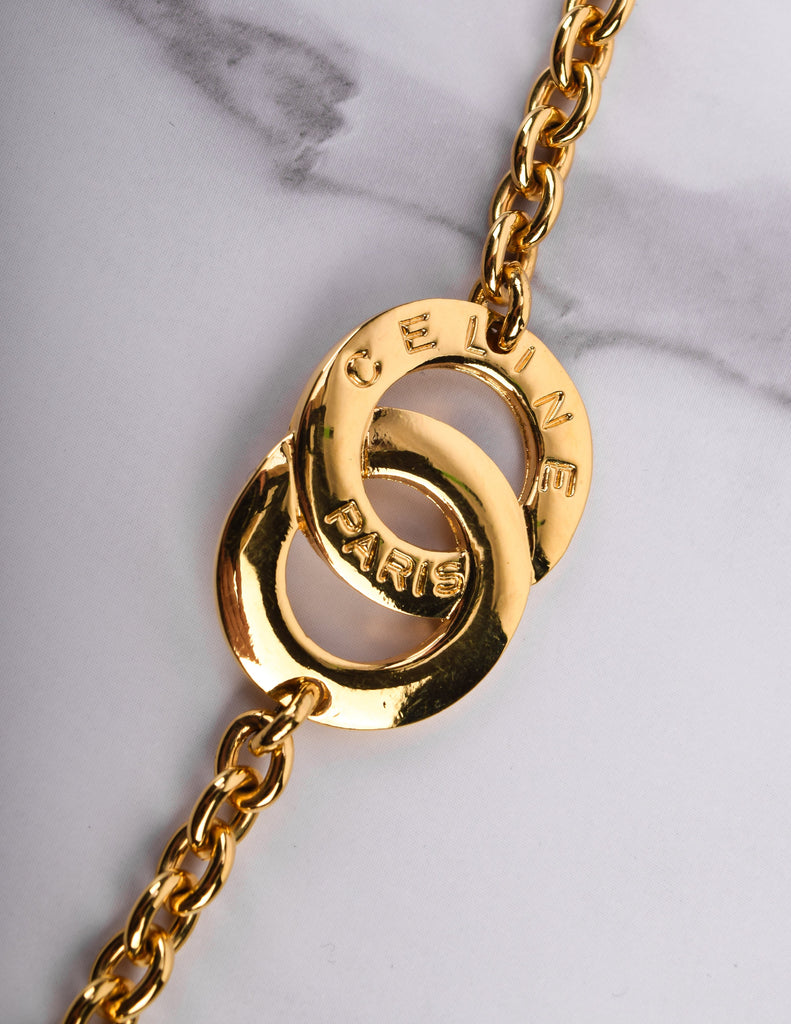 Celine Vintage Golden Interlocking Insignia Ring Chain Necklace