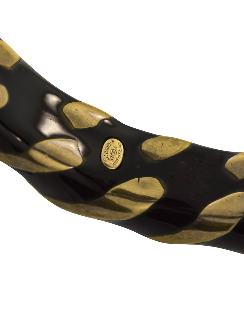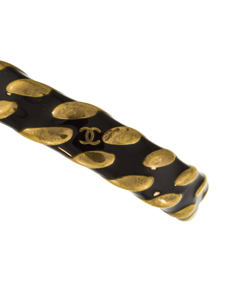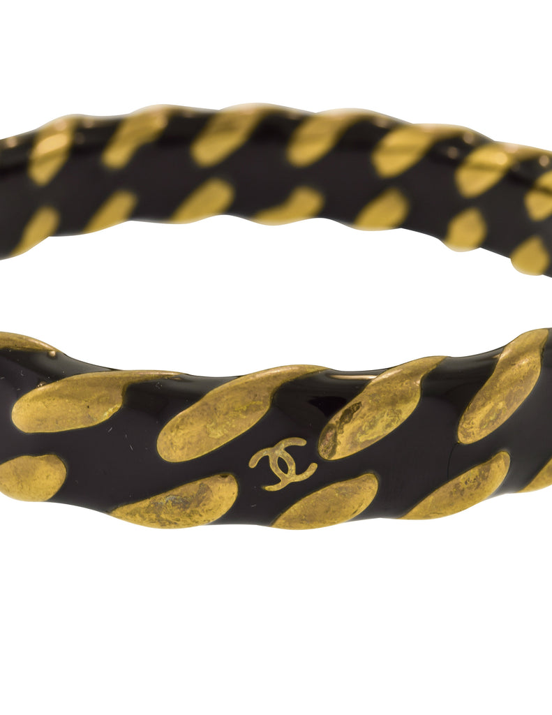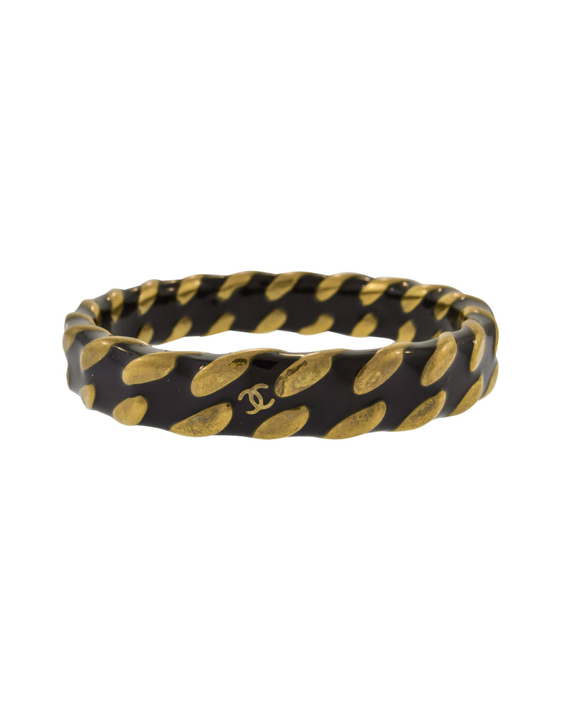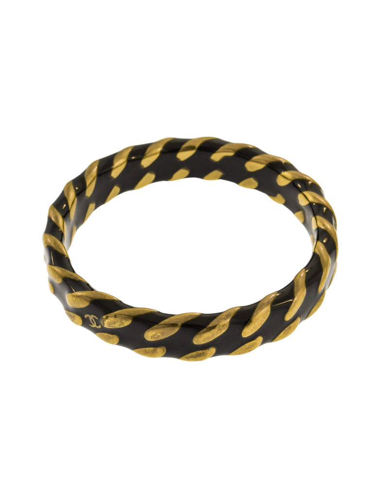 Chanel Vintage AW 1997 Black Enamel and Brass Chain Bangle Bracelet