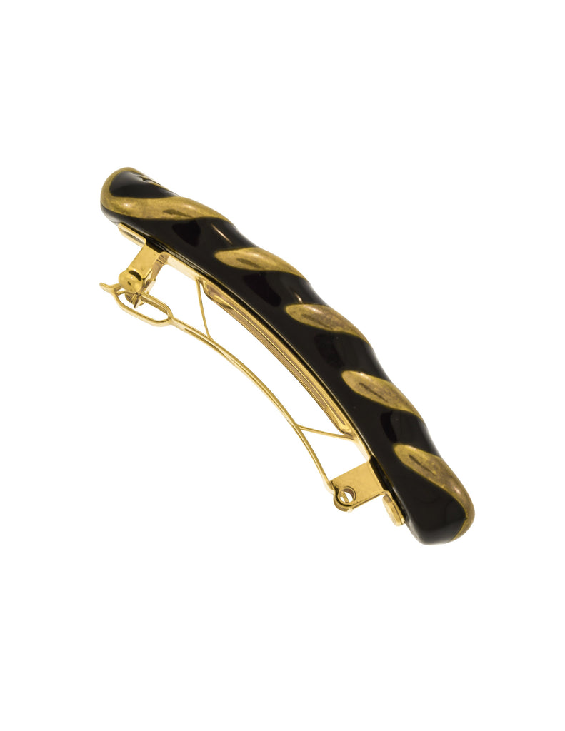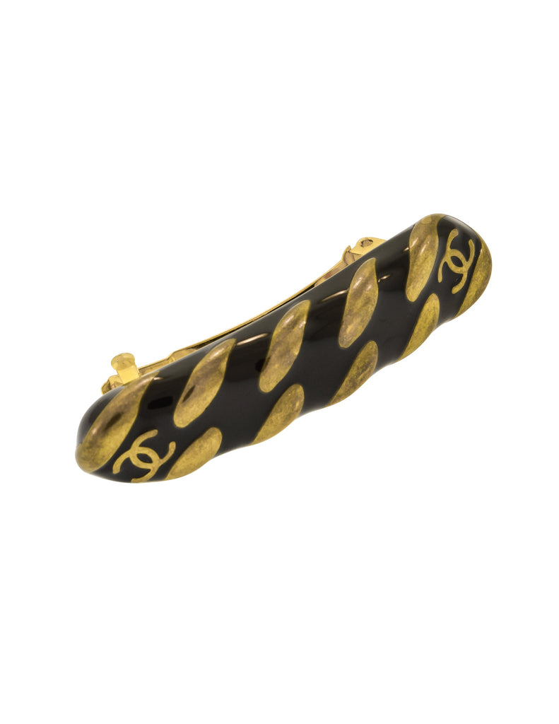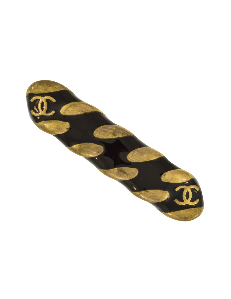 Chanel Vintage AW 1997 Black Enamel and Brass Chain Hair Clip Barrette