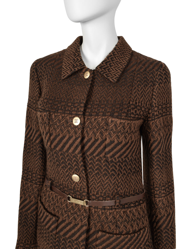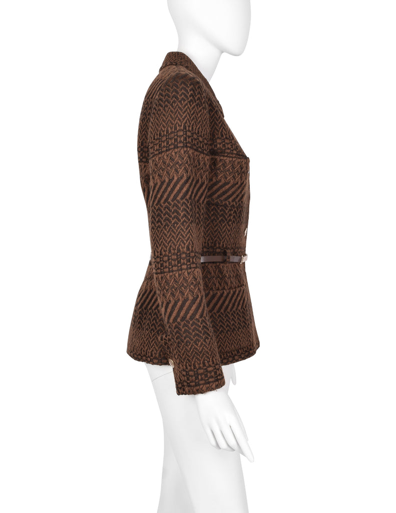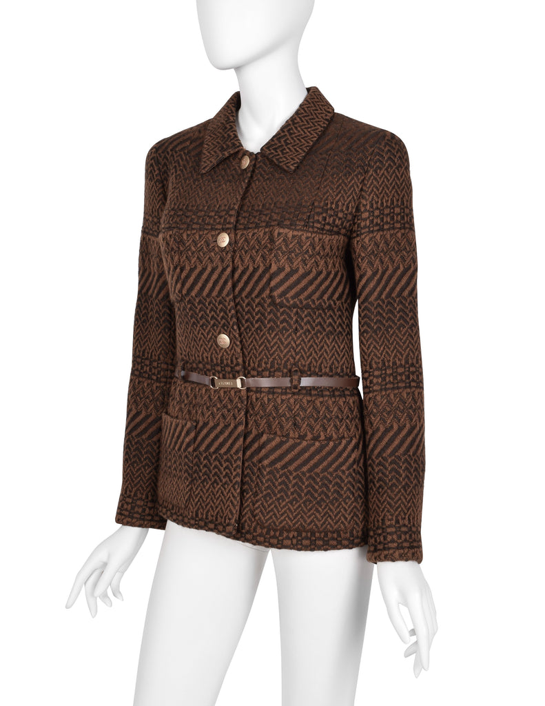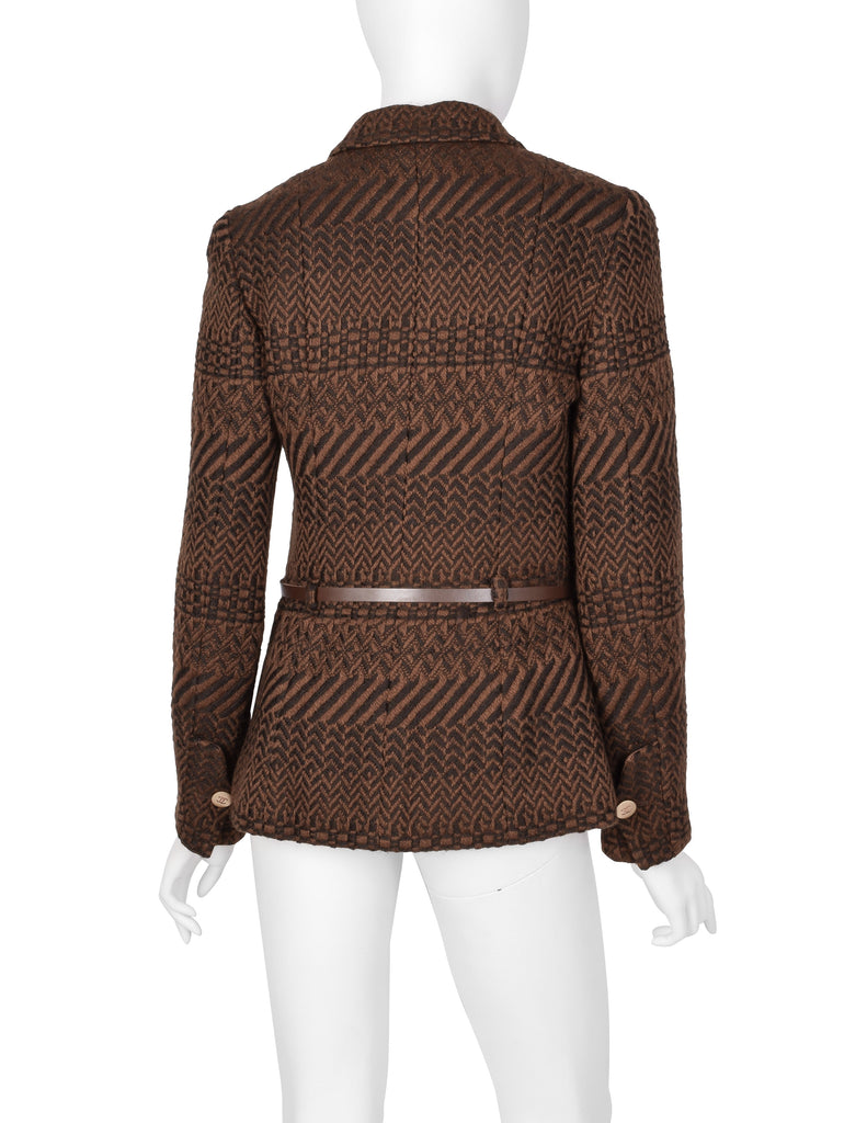 Chanel Vintage AW 2000 Brown Tonal Tweed Wool Belted Jacket
