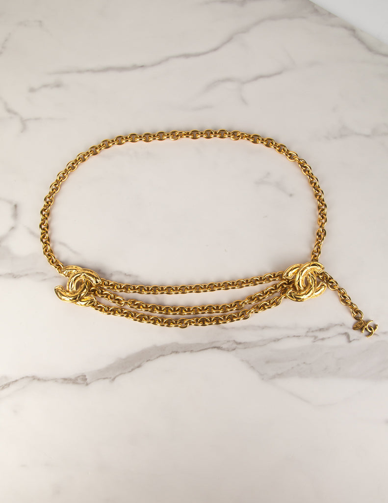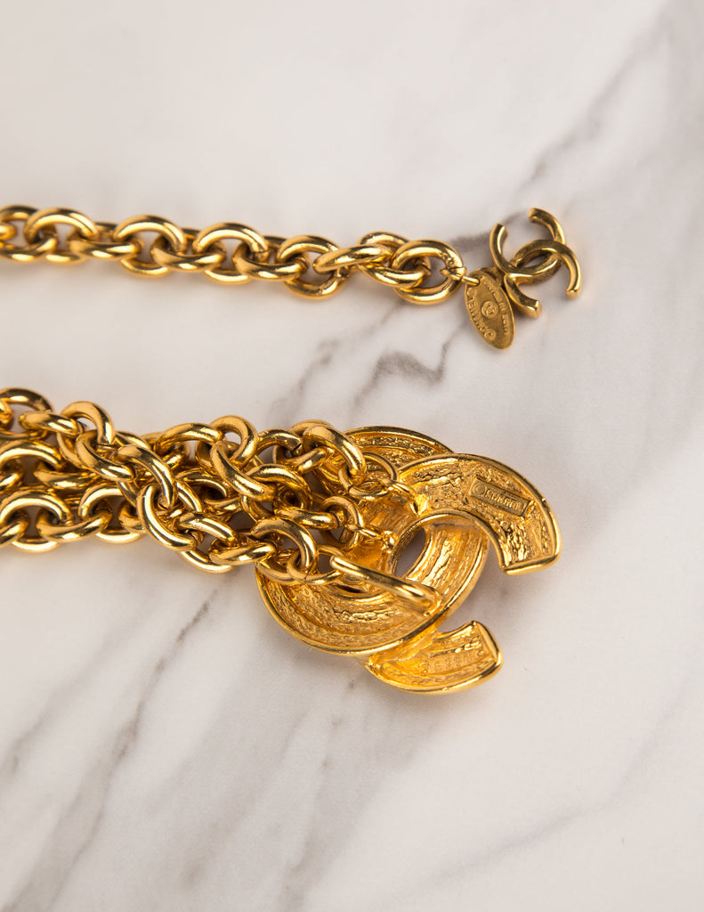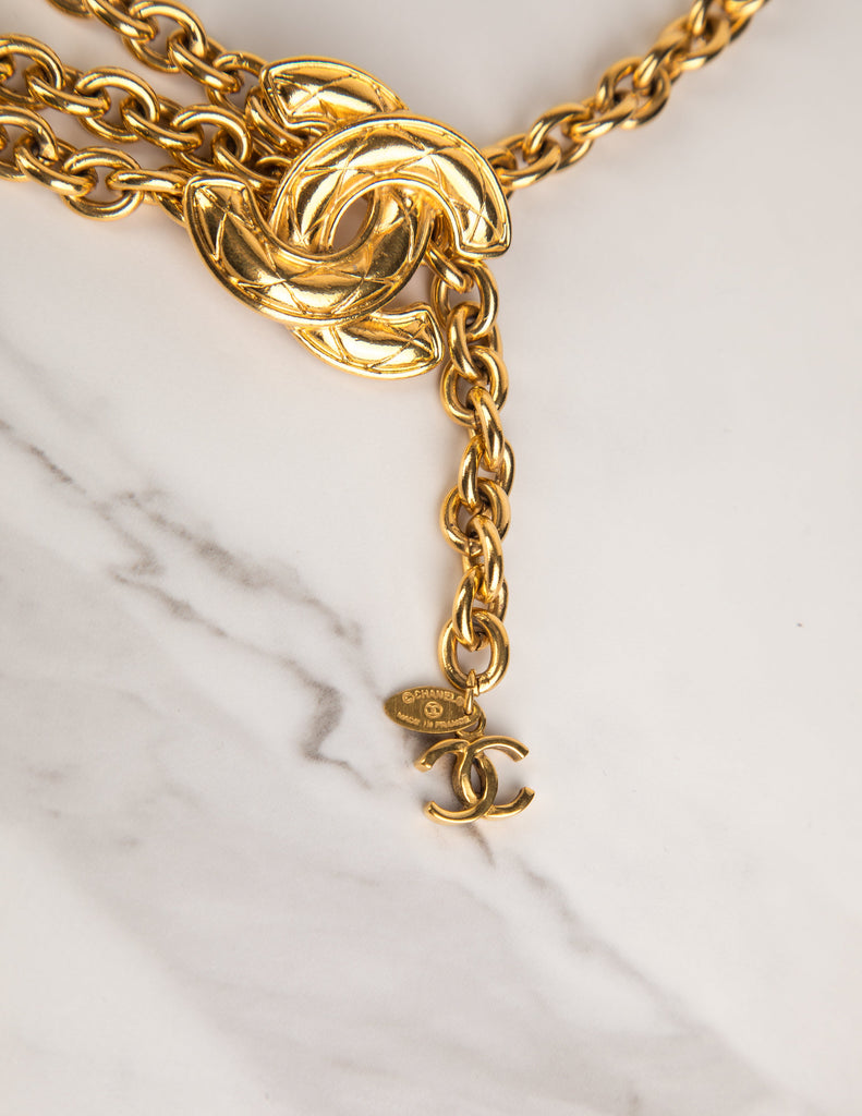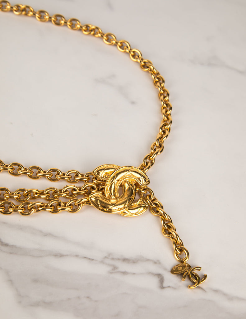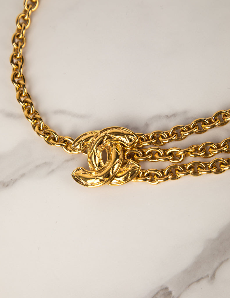 Chanel Vintage Golden Quilted CC Logo Triple Row Chain Belt