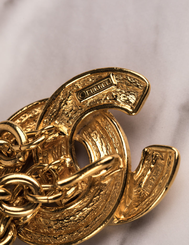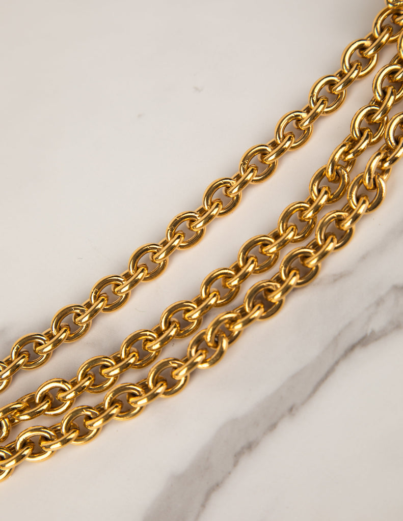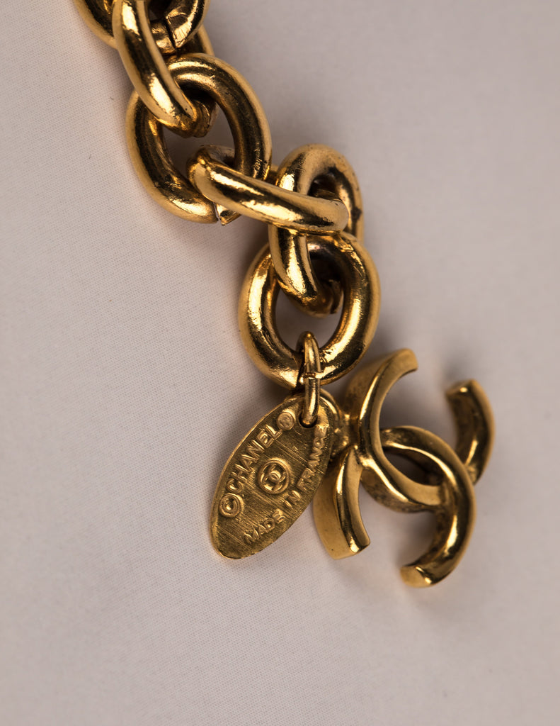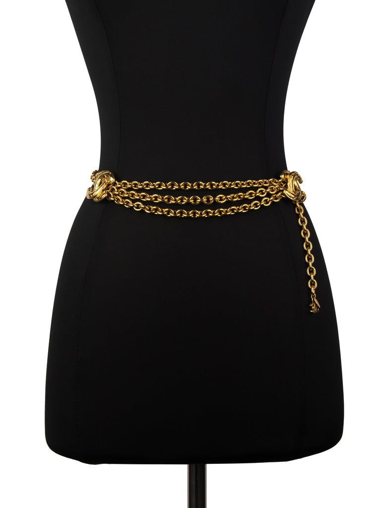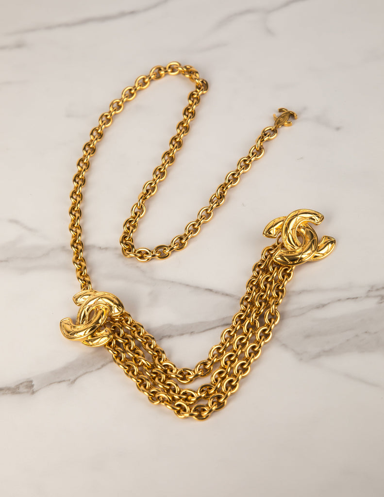 Chanel Vintage Golden Quilted CC Logo Triple Row Chain Belt