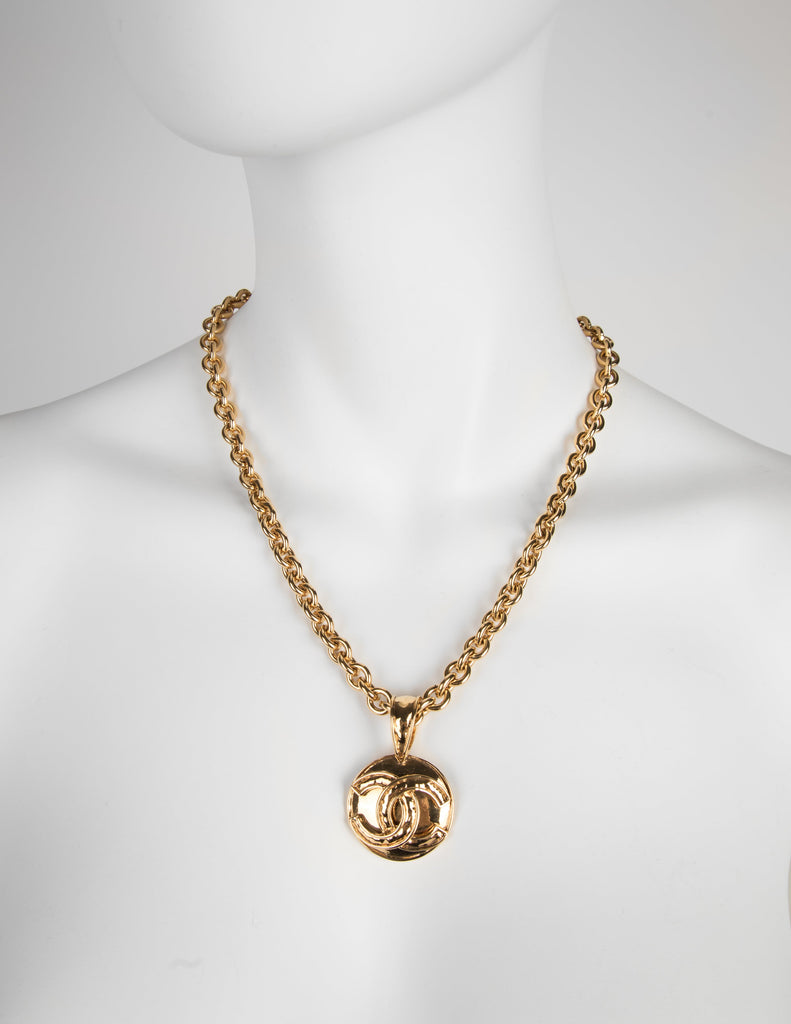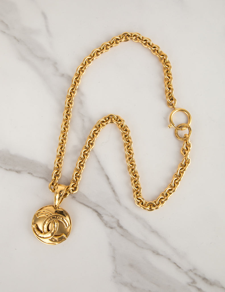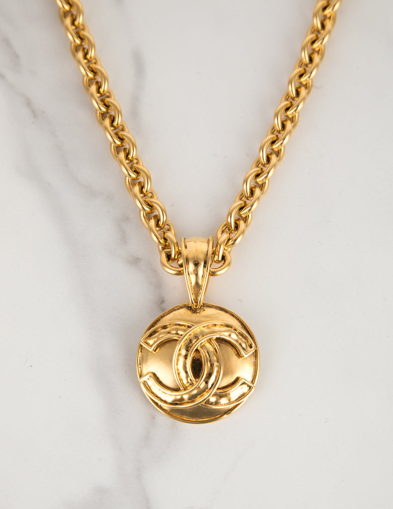 Chanel Vintage SS 1994 Gold Plated CC Logo Pendant Chain Necklace