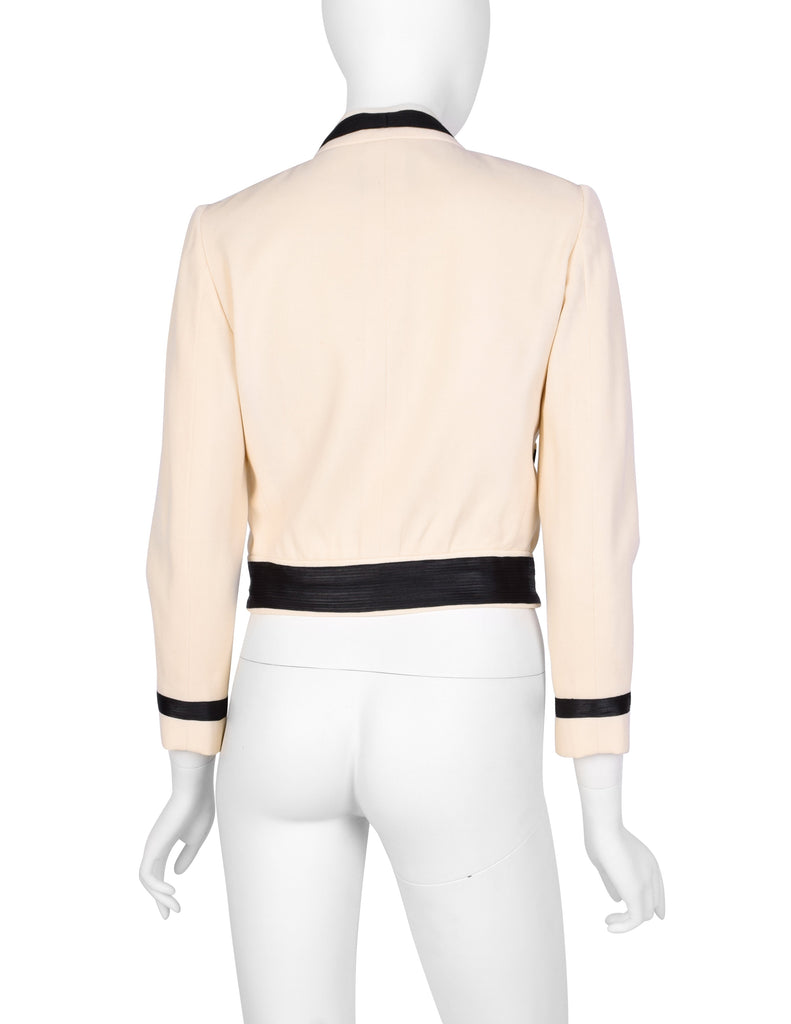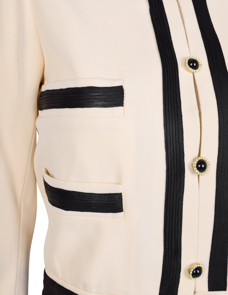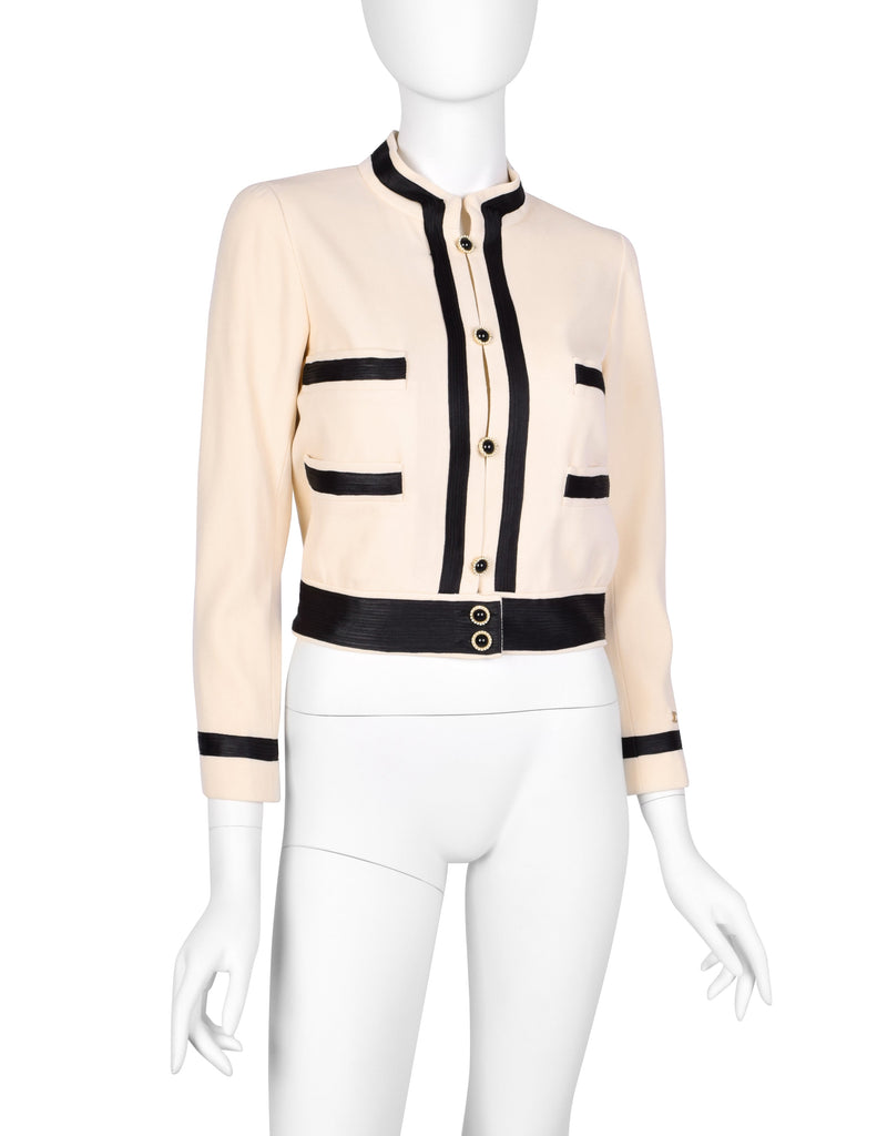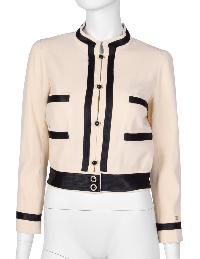 Chanel Vintage SS 2002 Cream Wool Black Silk Cropped Jacket