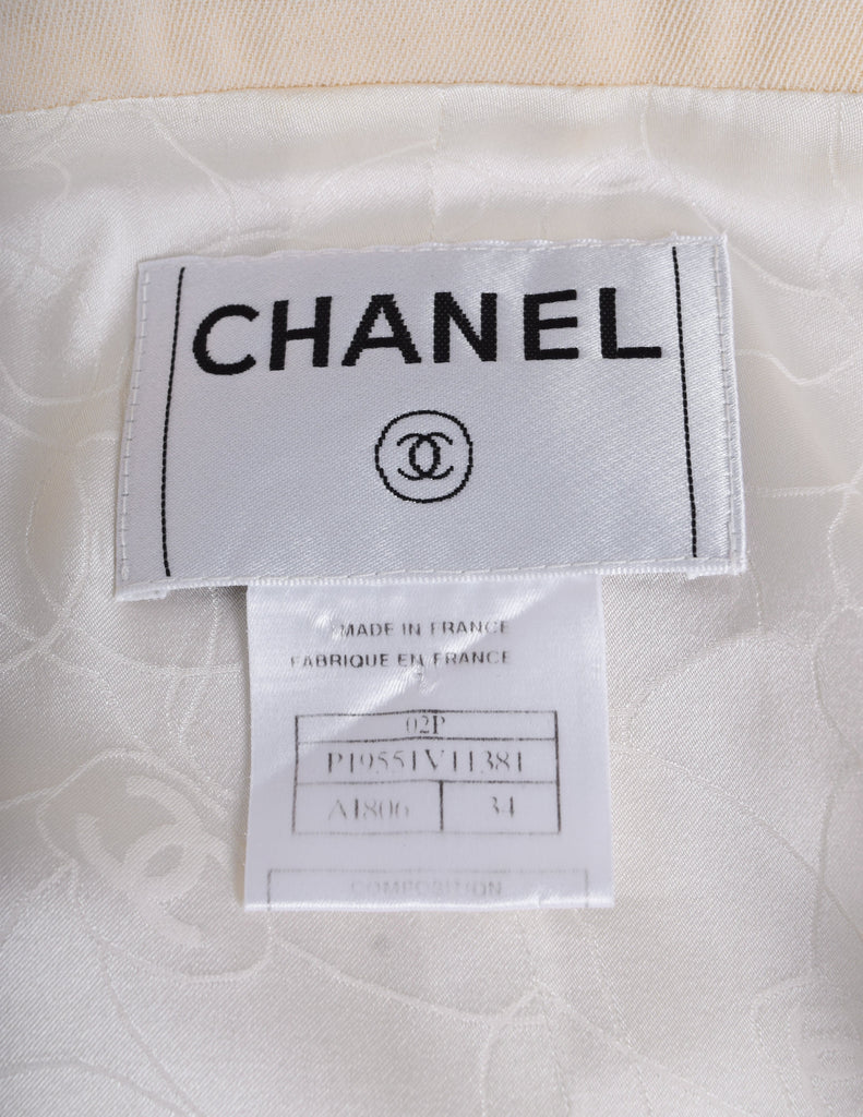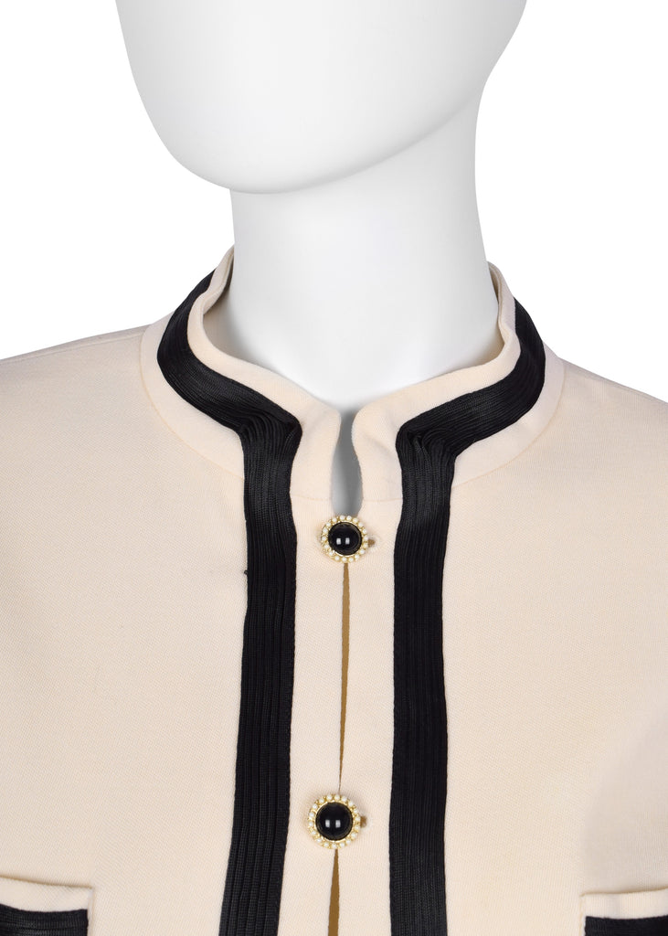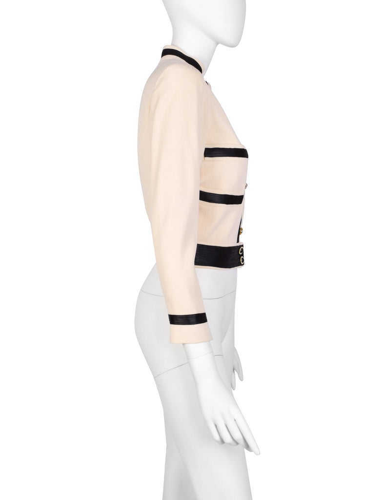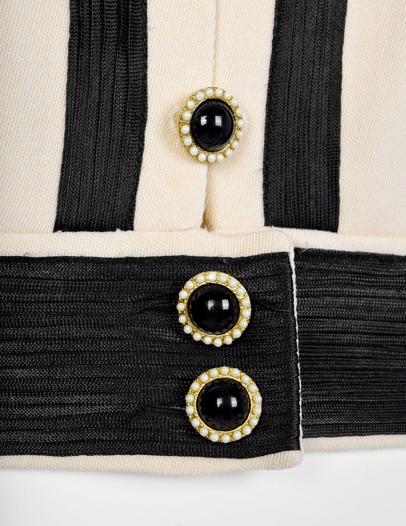 Chanel Vintage SS 2002 Cream Wool Black Silk Cropped Jacket