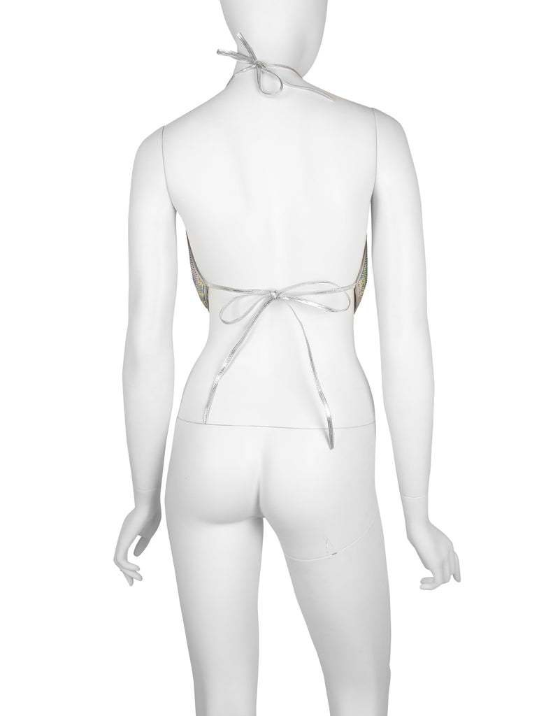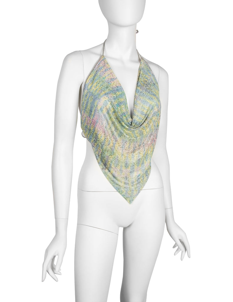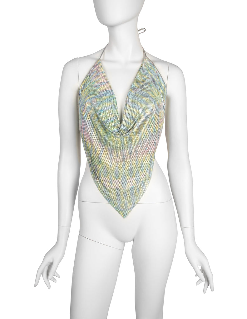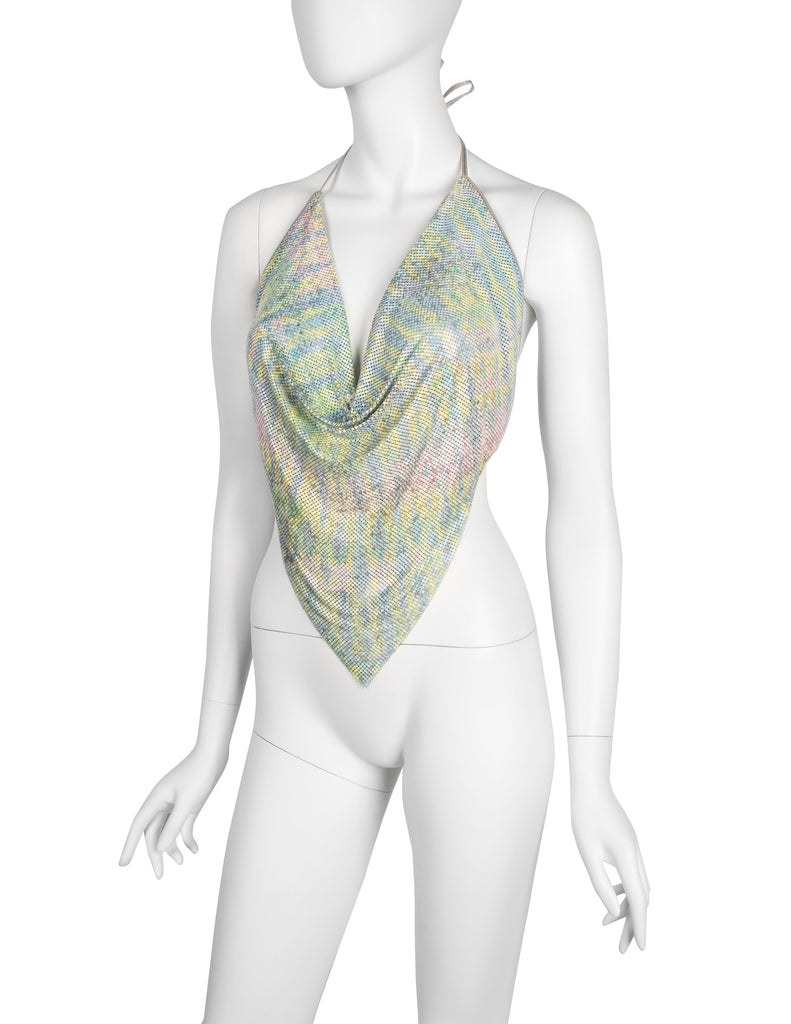 Ferrara Archive Iconic Animal Print Pastel Metal Mesh Pointed Halter Top