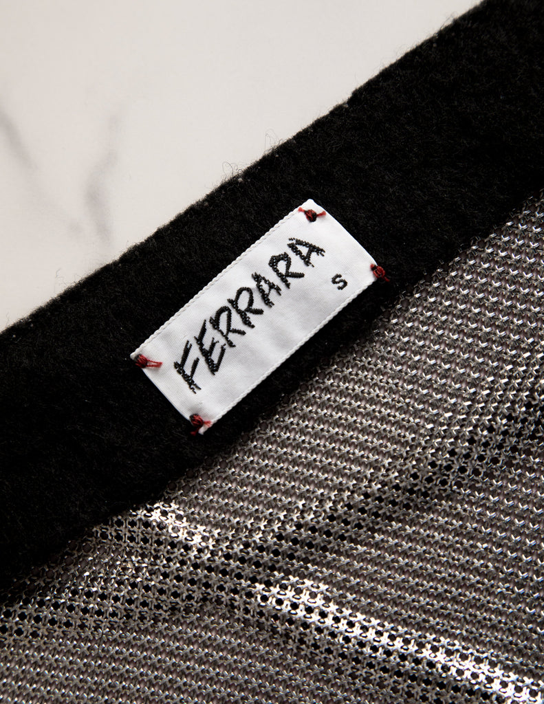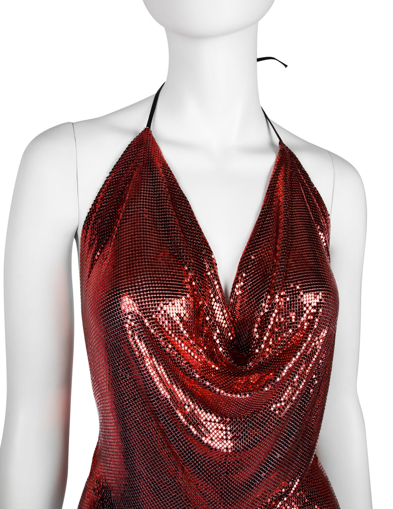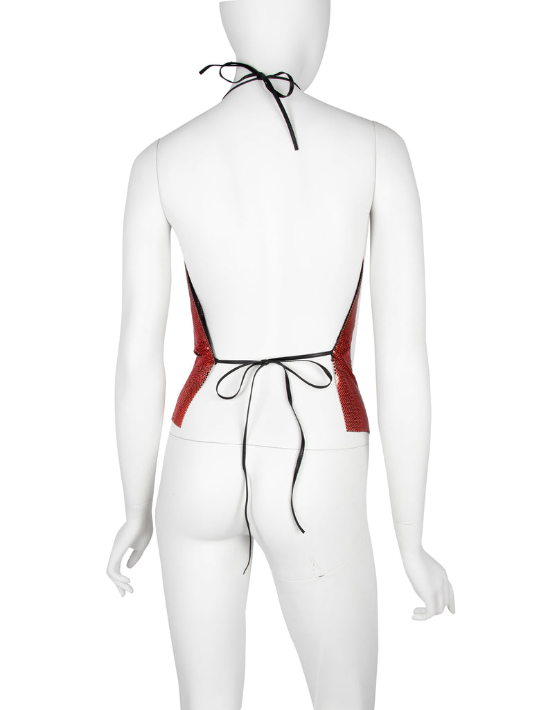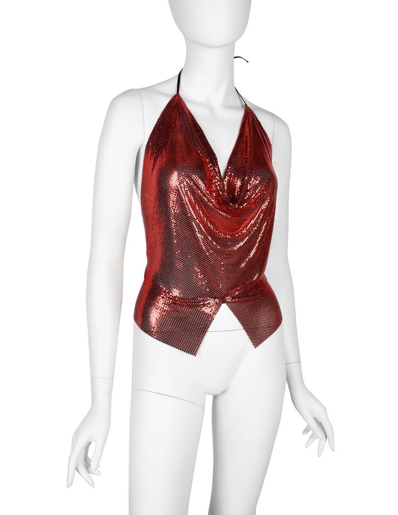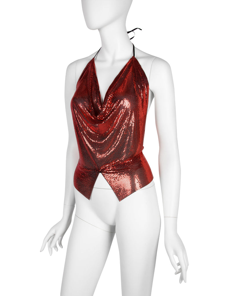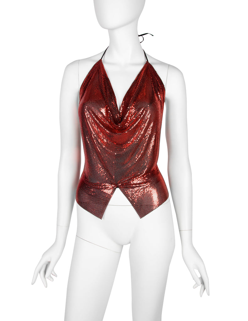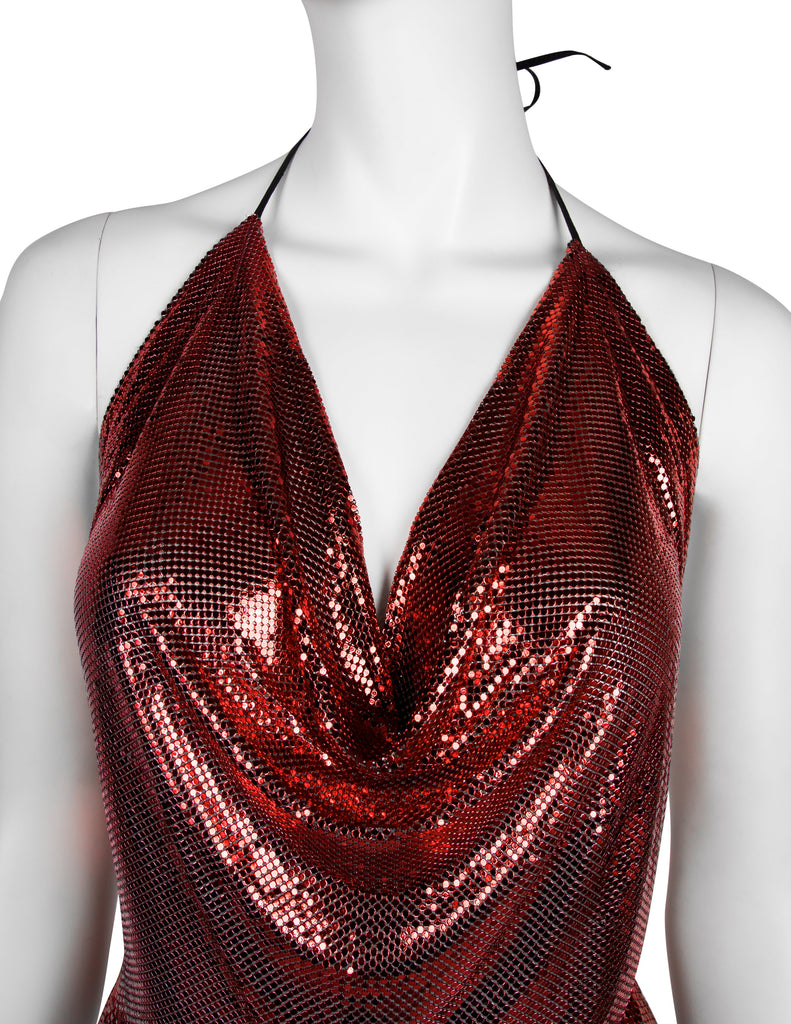 Ferrara Archive Iconic Ruby Red Metallic Metal Mesh Halter Top