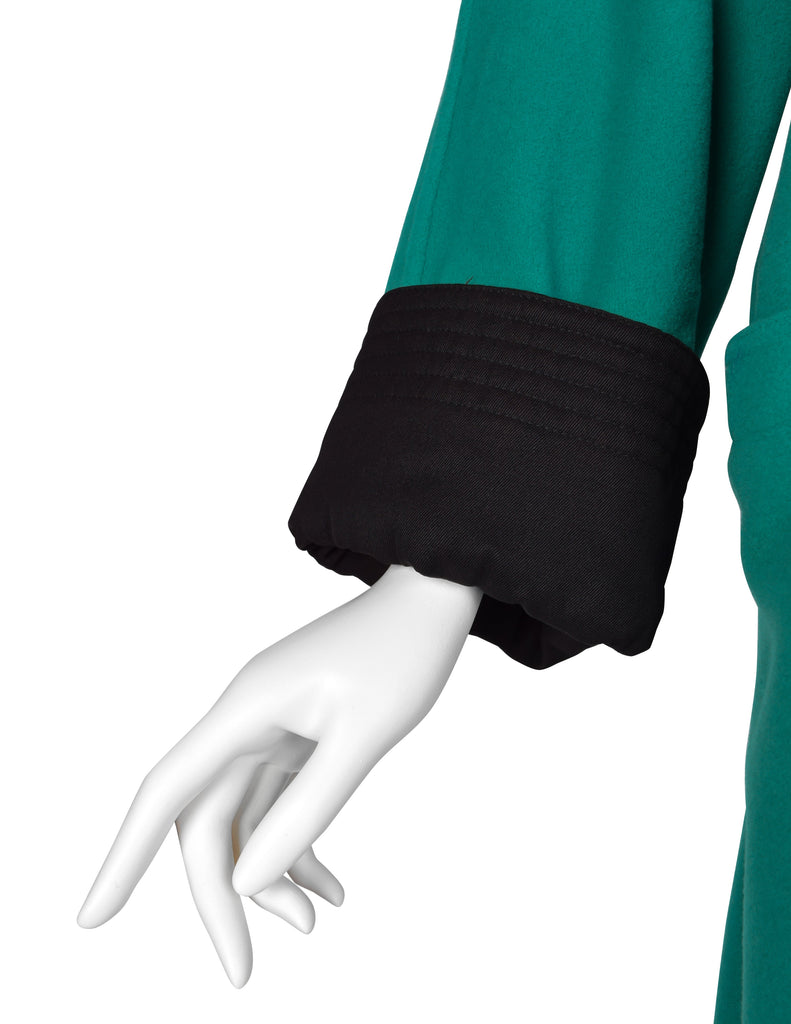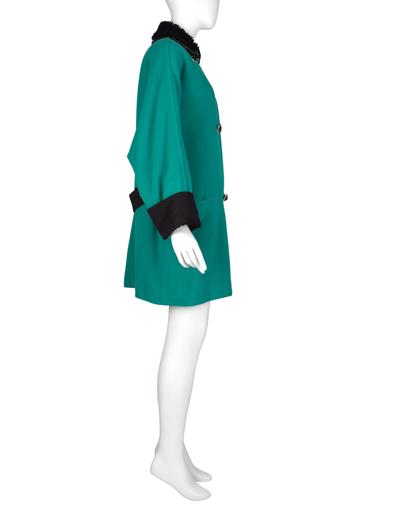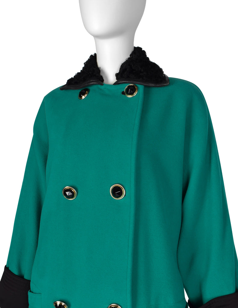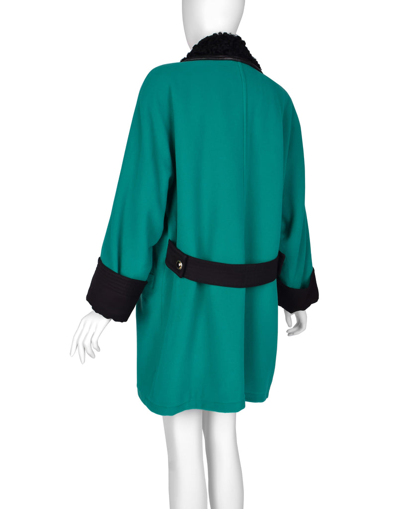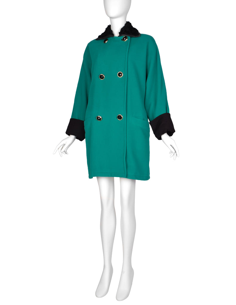 Gianni Versace Vintage 1990s Teal Wool Cashmere Shearling Collar Coat