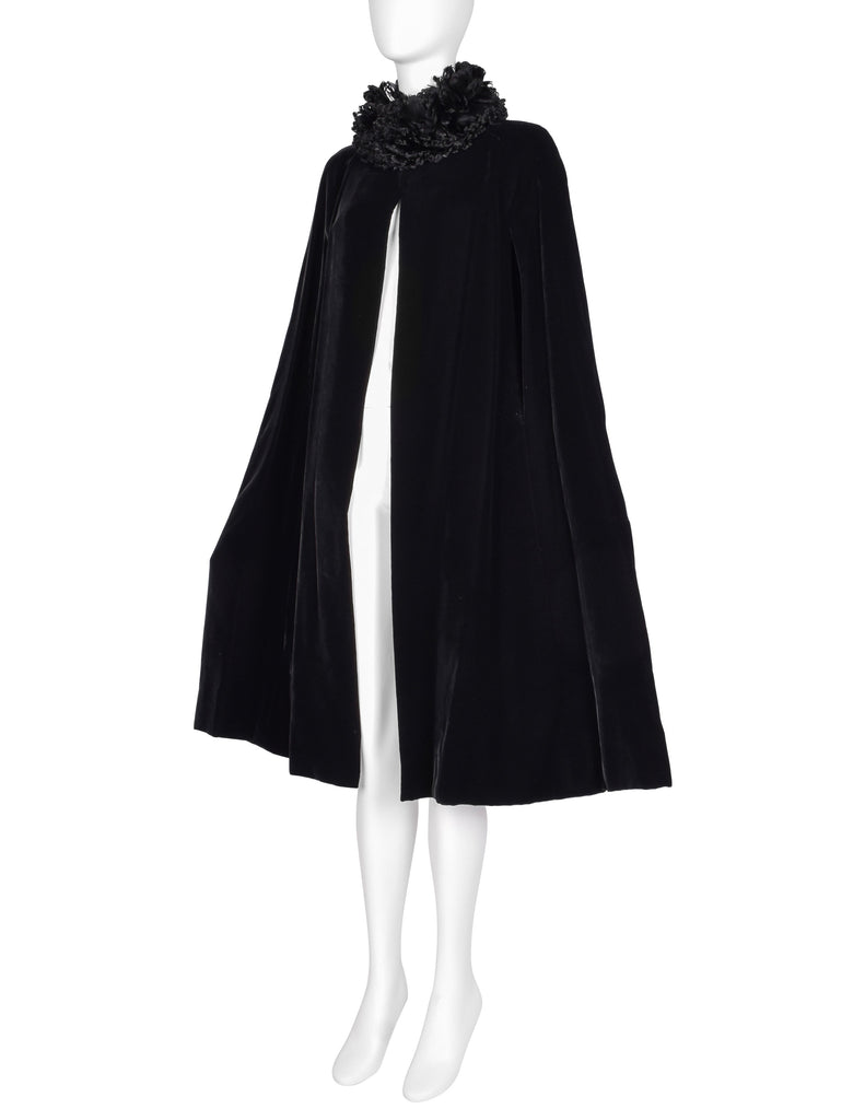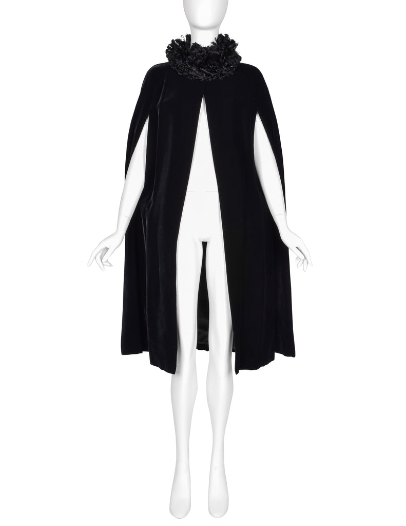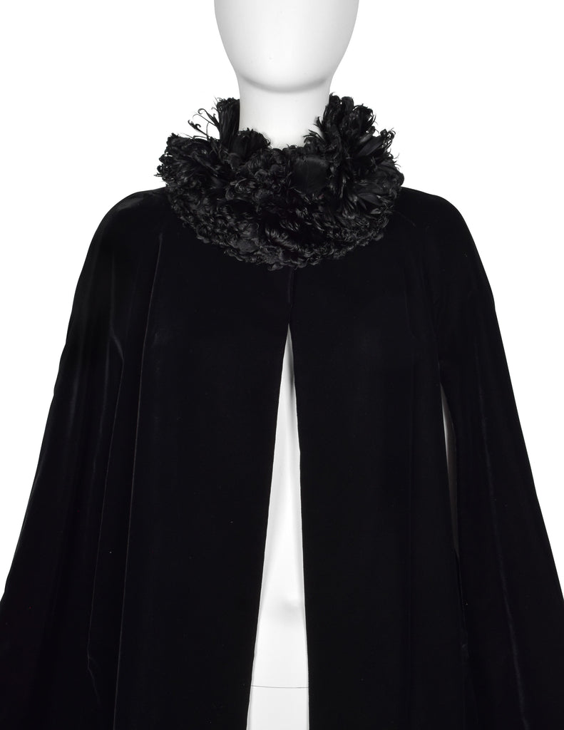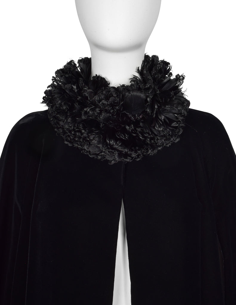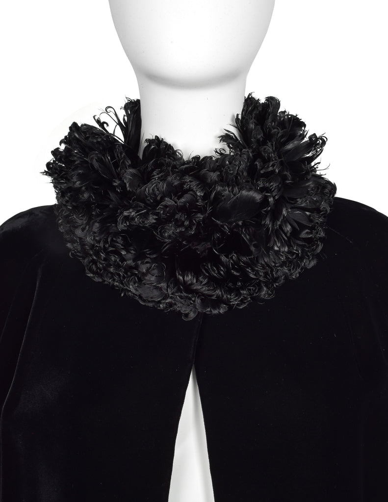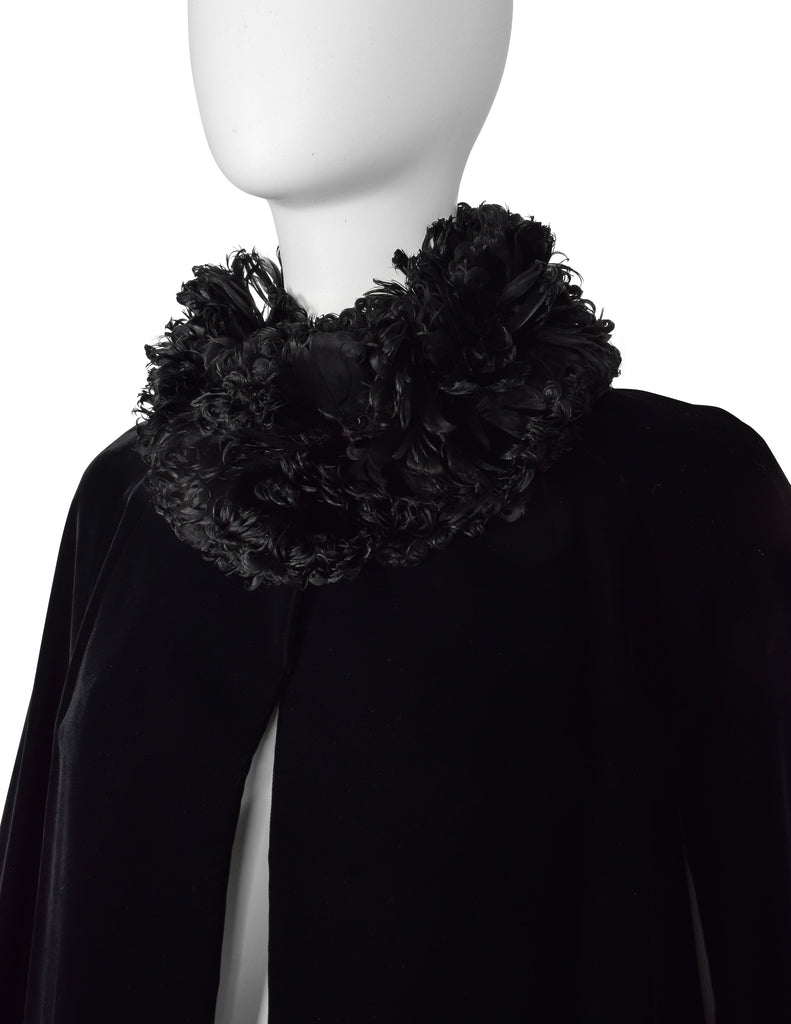Givenchy Haute Couture Vintage 1970s Feather Collar Velvet Evening Cape