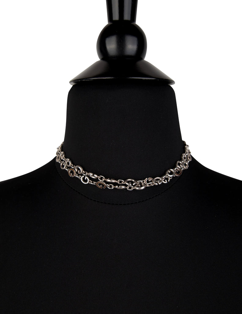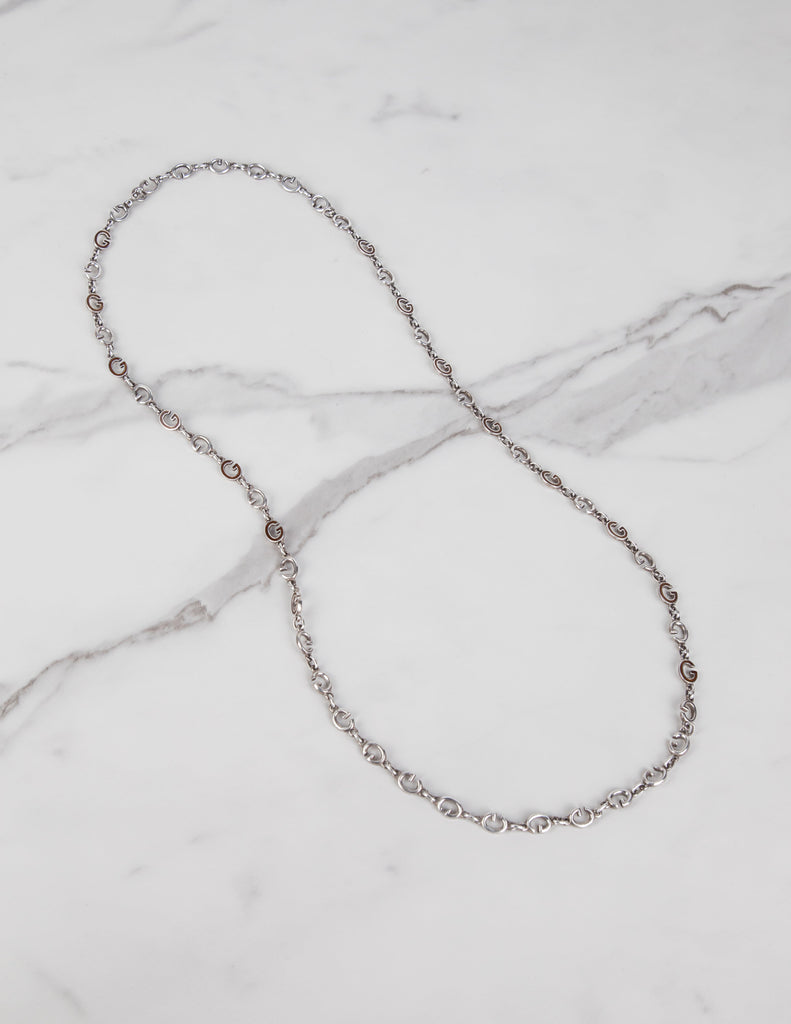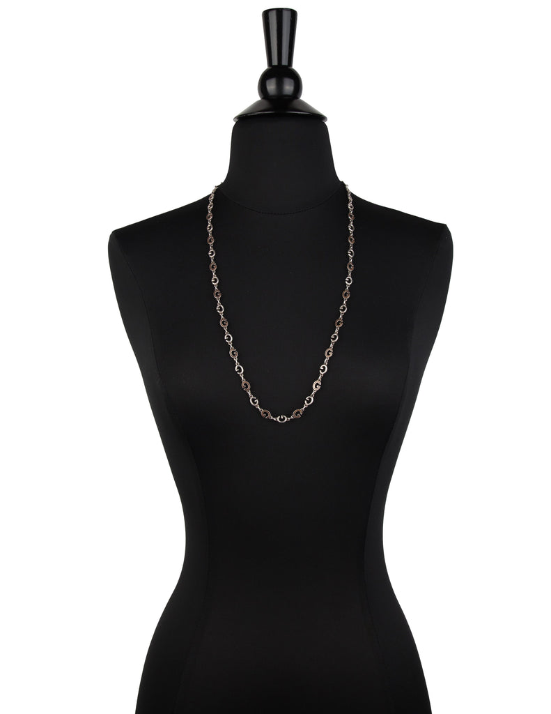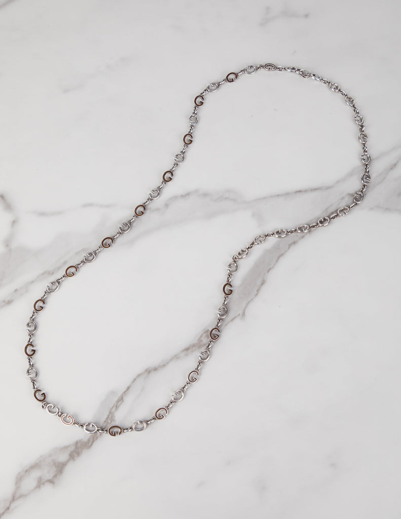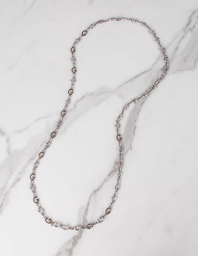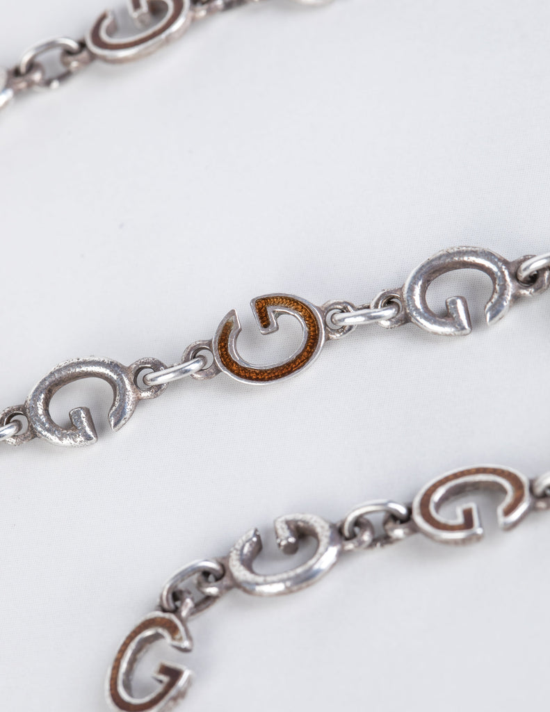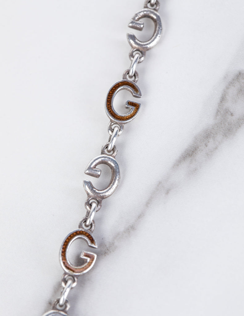 Gucci Vintage Sterling Silver and Enamel G Link Long Necklace