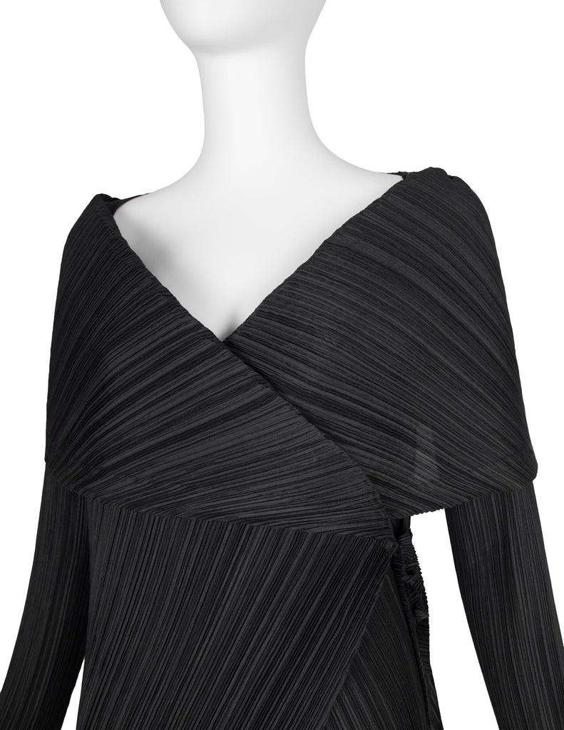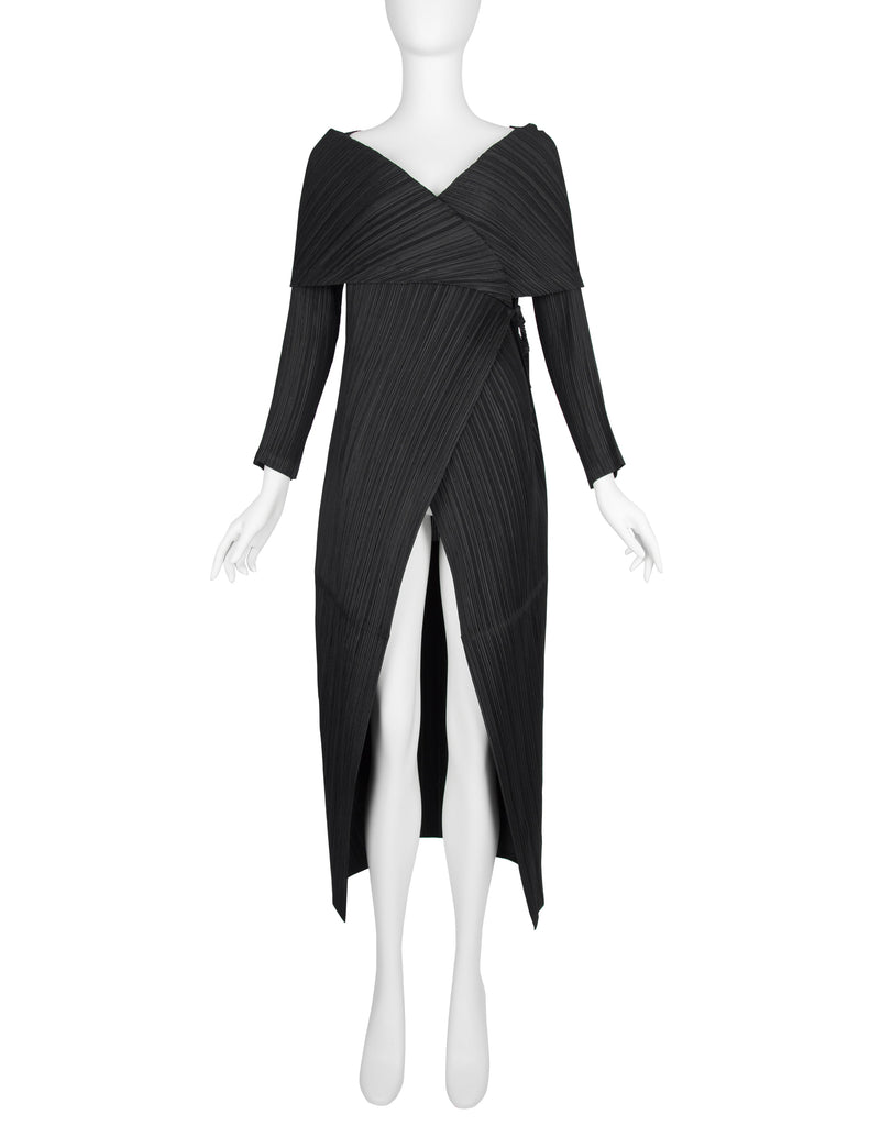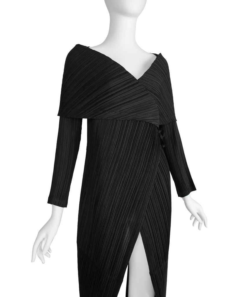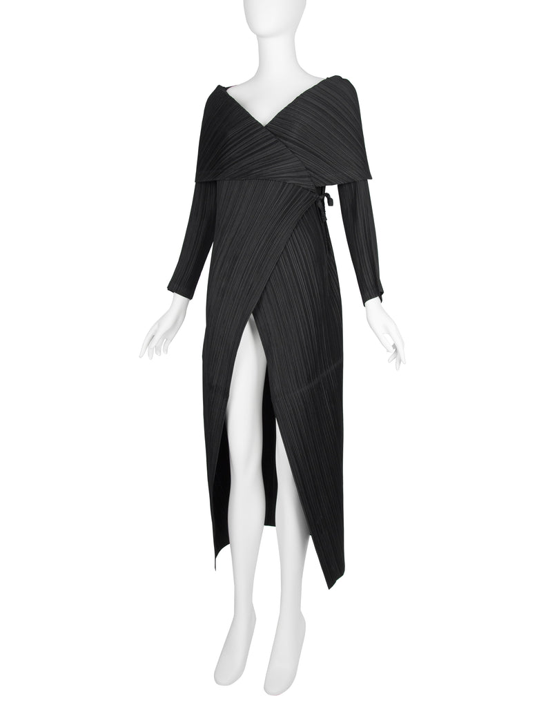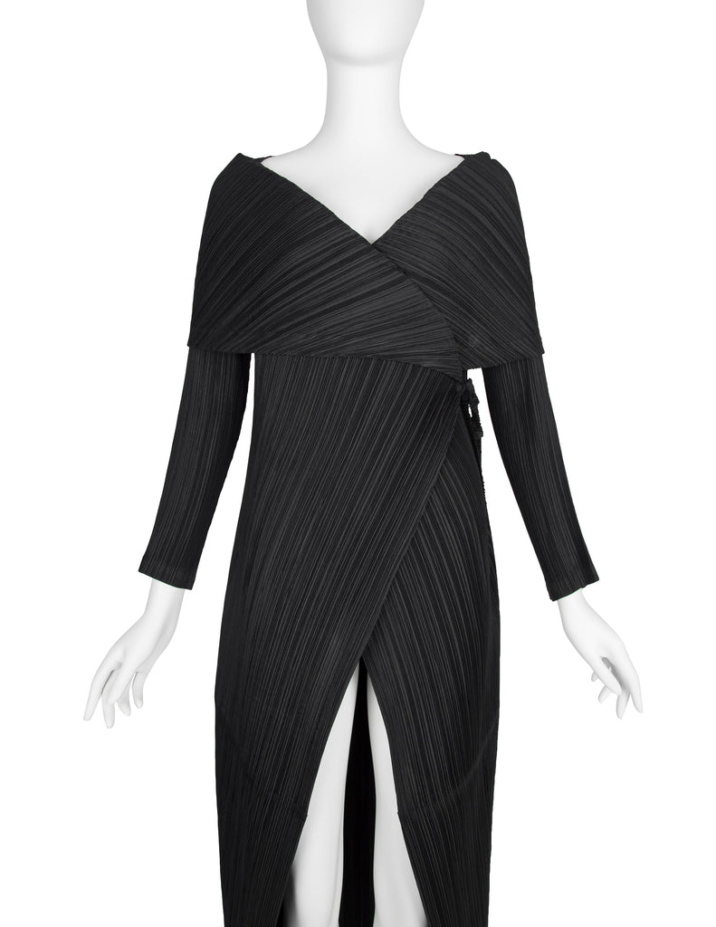 Issey Miyake Fete Vintage 1990s Pleated Silk Shawl Collar Duster