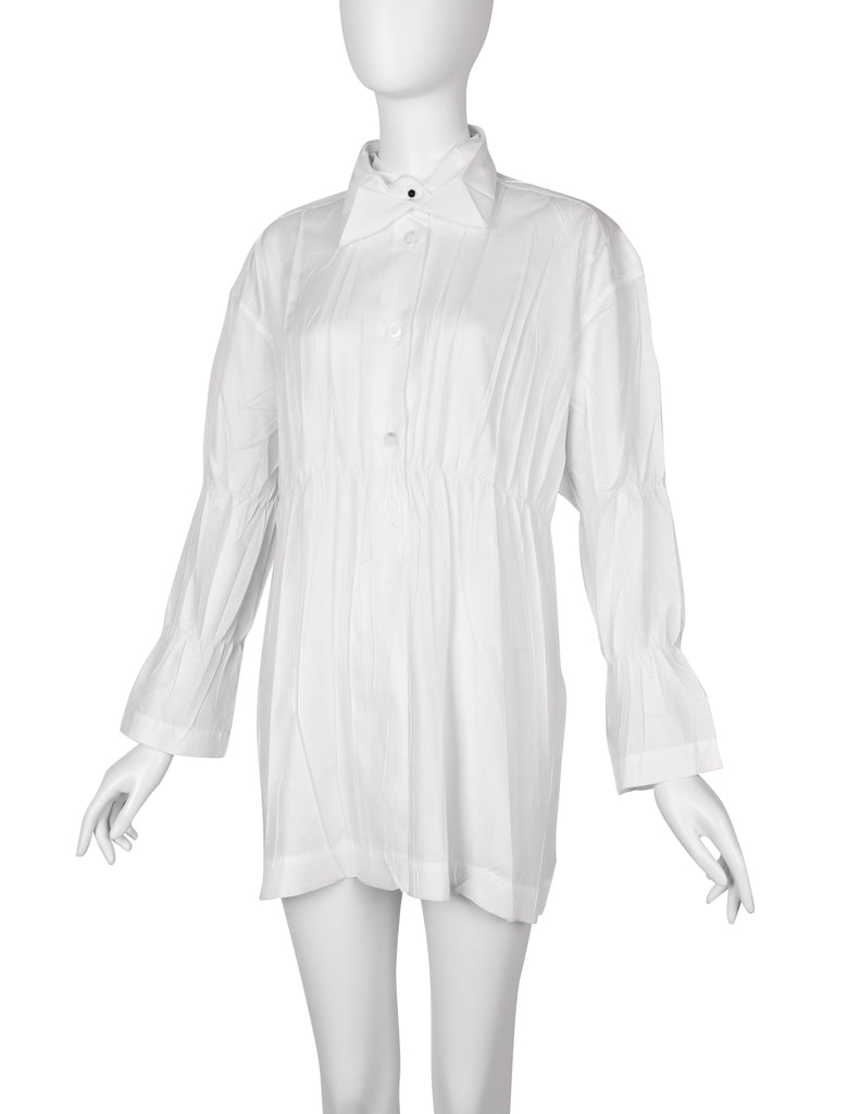 Issey Miyake Vintage AW 1992 White Pleated Button Up Collared Top