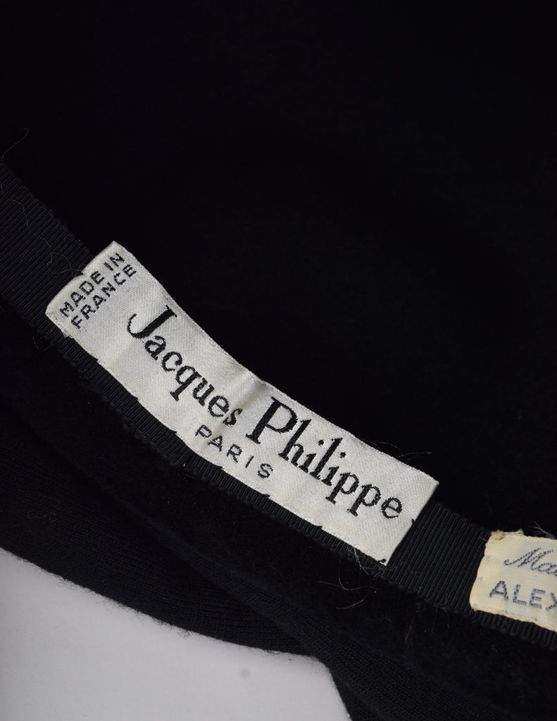 Jacques Philippe Vintage 1960s Black Velvet and Wool Mod Hat