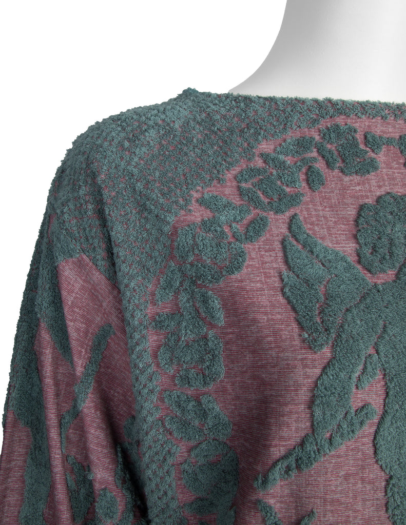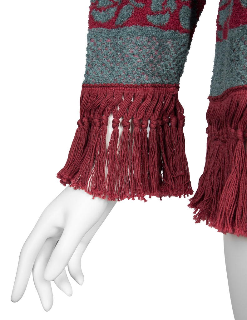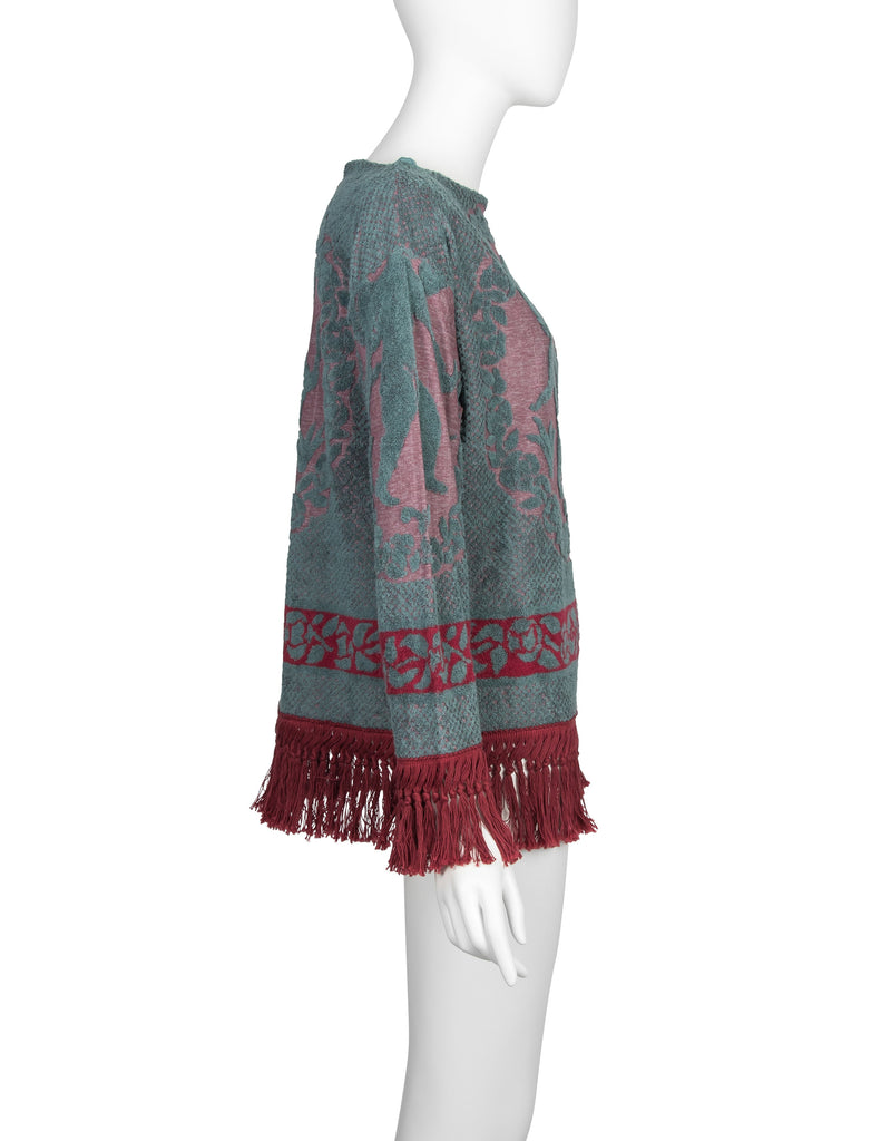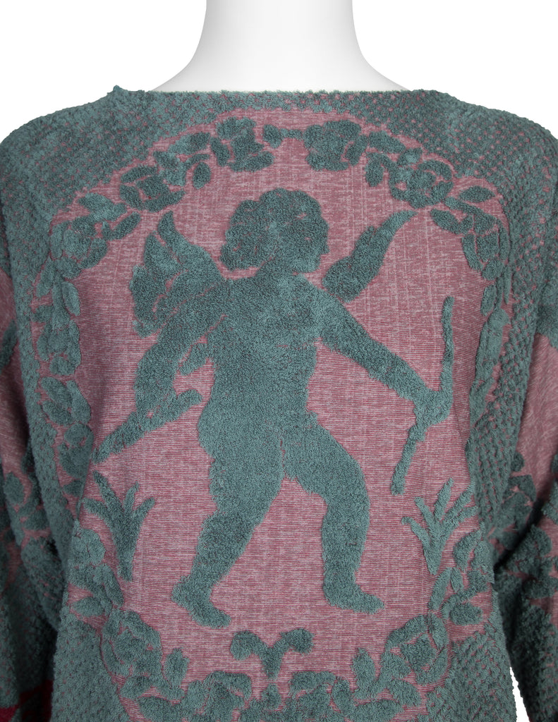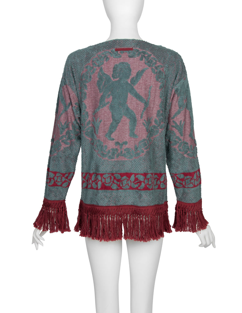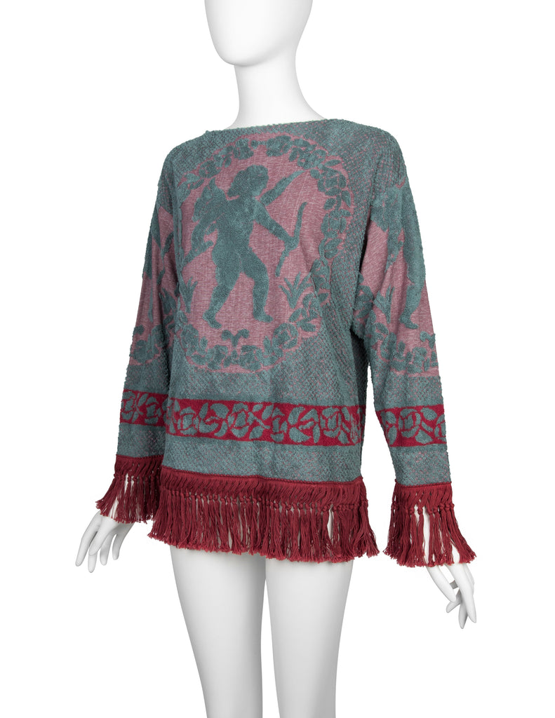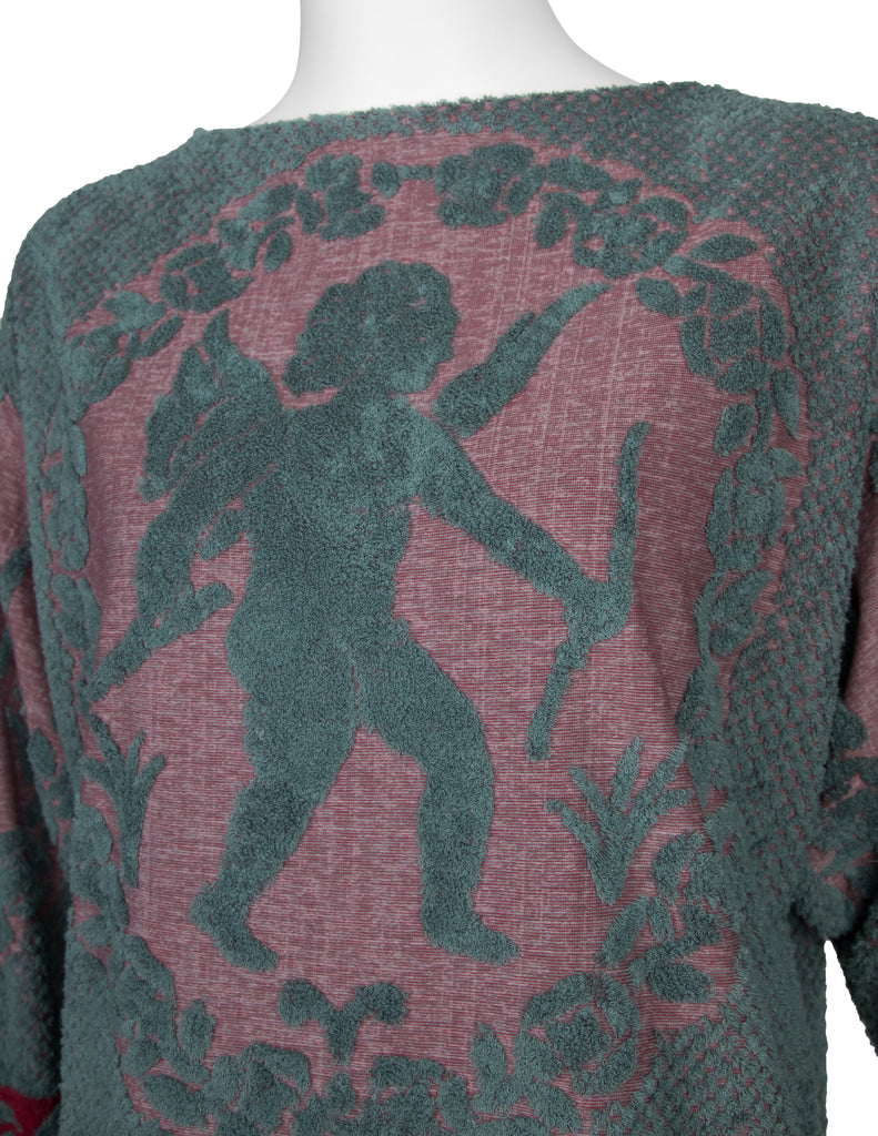 Jean Paul Gaultier Vintage AW 1986 Teal and Red Cherub Terrycloth Fringe Sweater