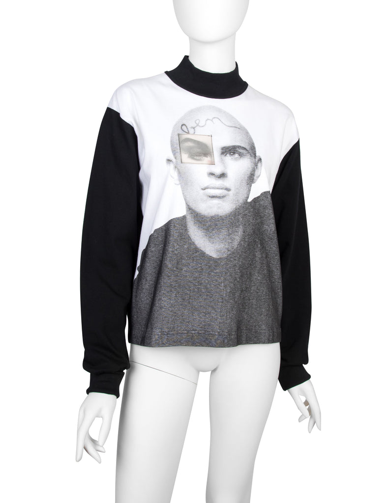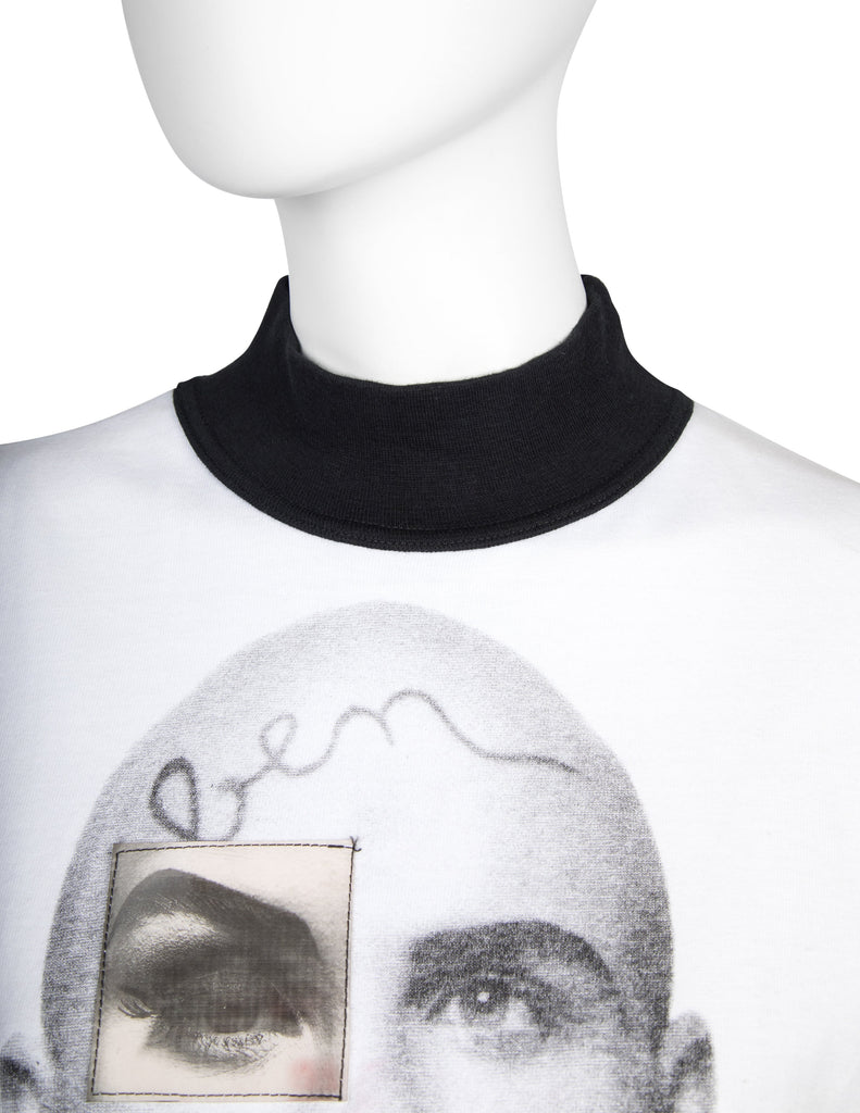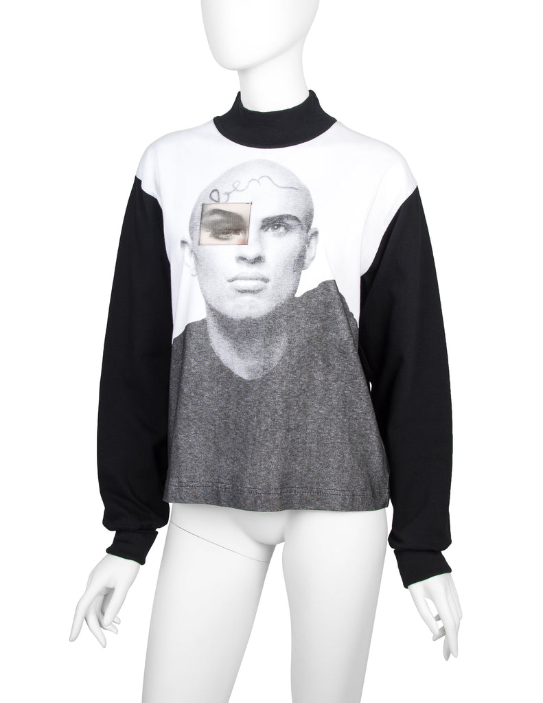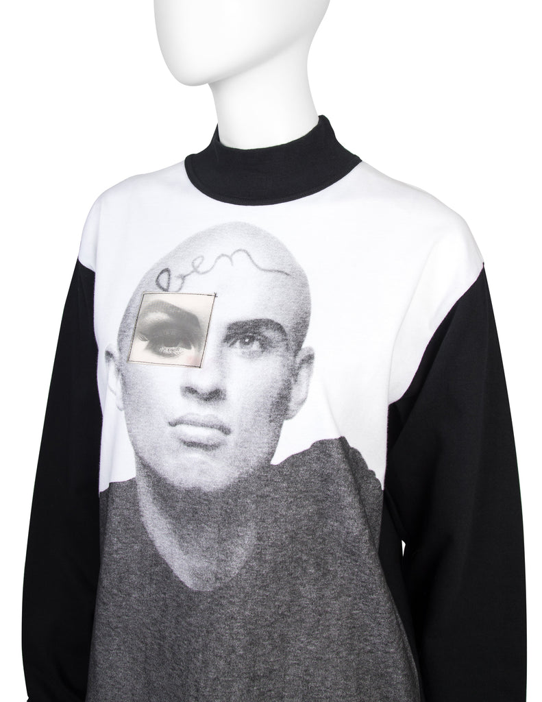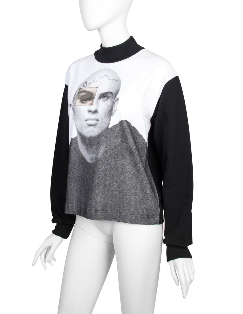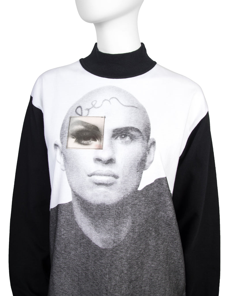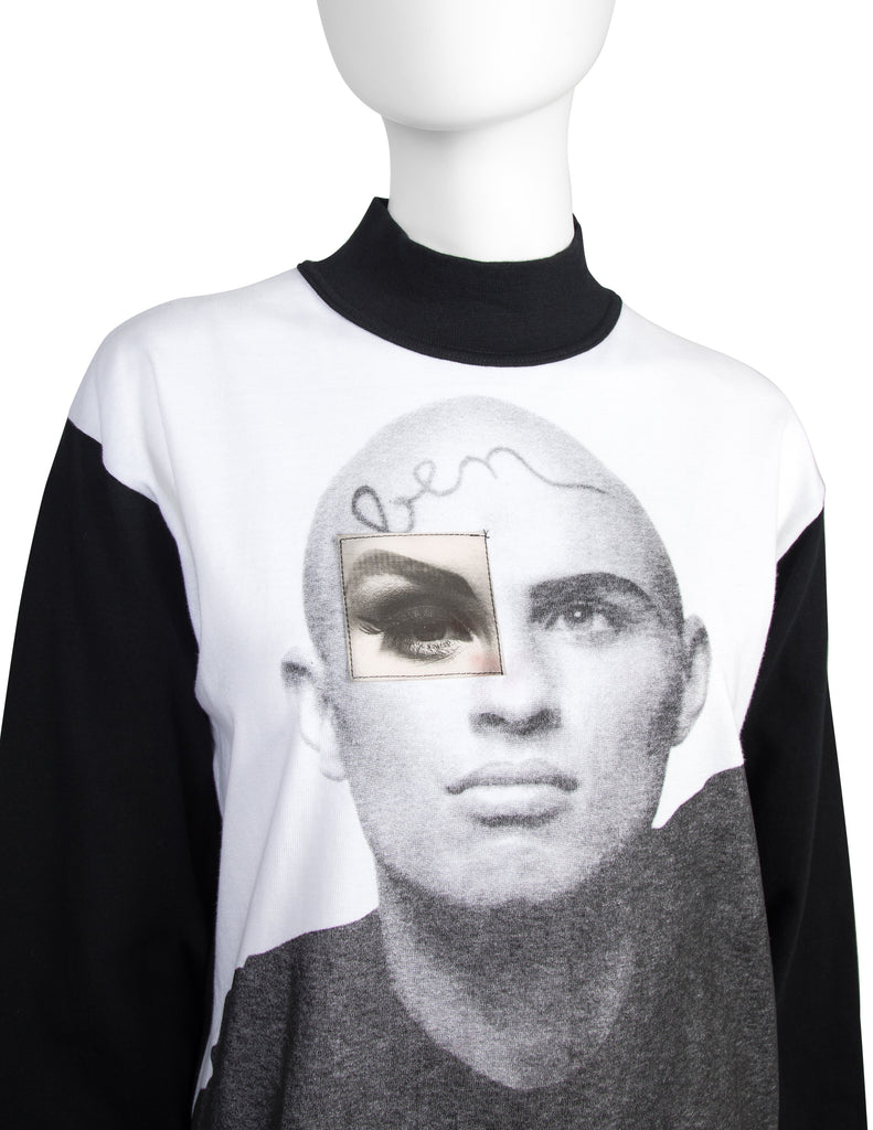 Jean Paul Gaultier Vintage AW 1992 Blinking Eye Hologram Face Print Black Long Sleeve Shirt