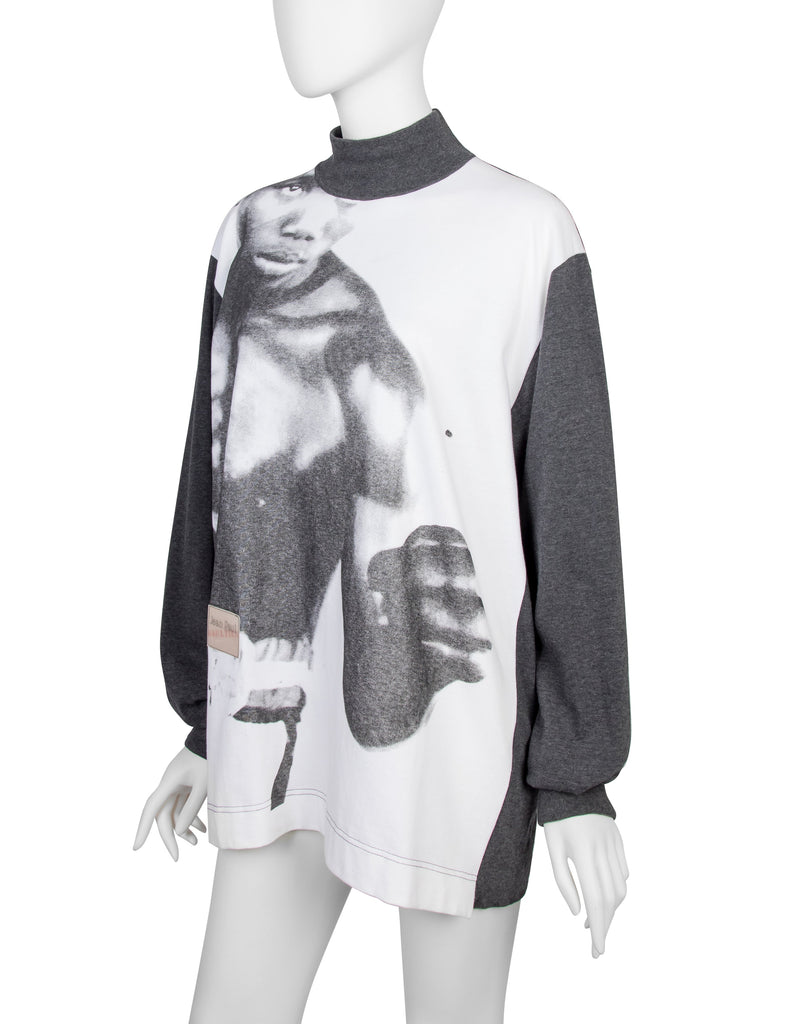 Jean Paul Gaultier Vintage AW 1992 Boxer Print Charcoal Grey Long Sleeve Shirt