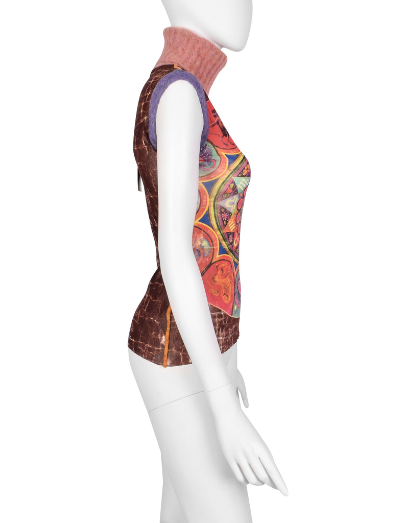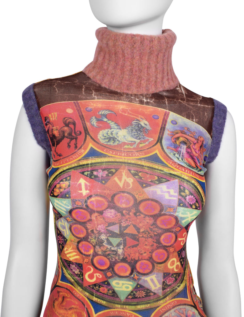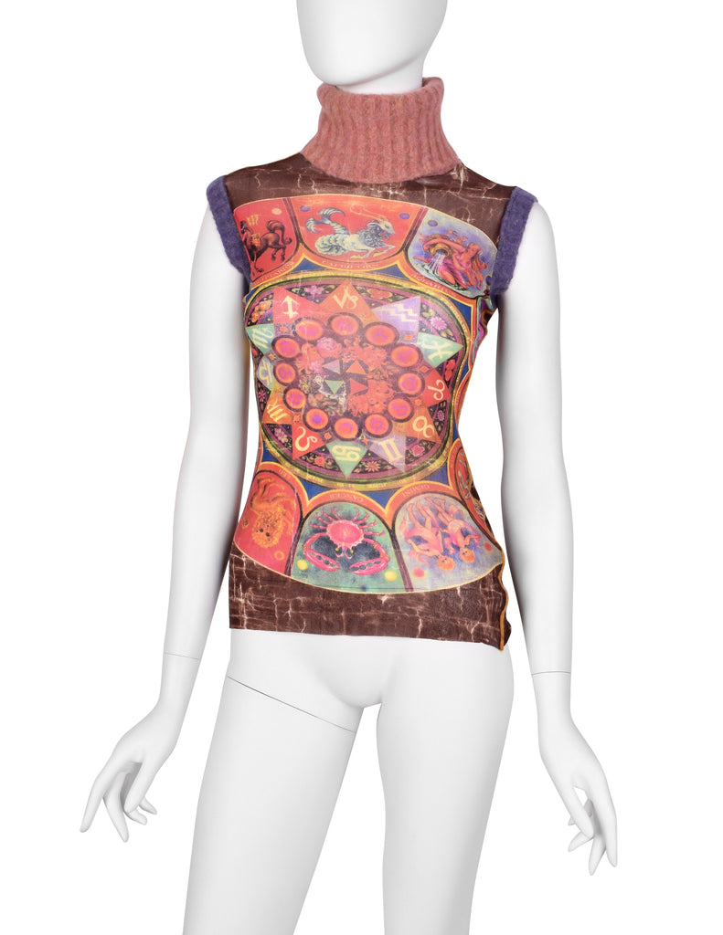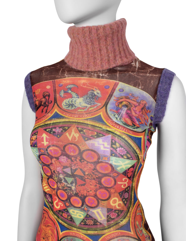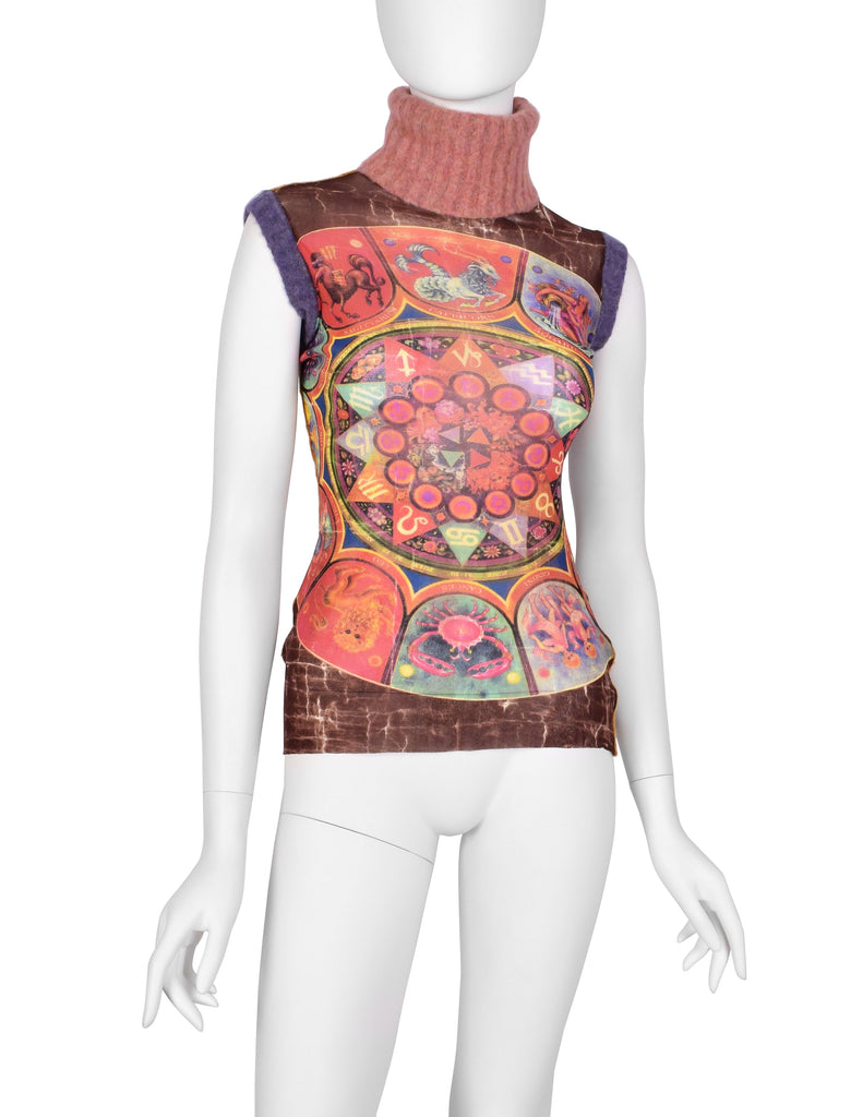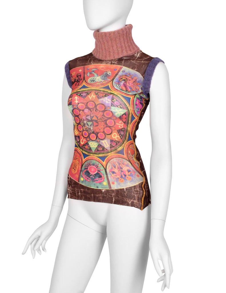 Jean Paul Gaultier Vintage AW 1999 Zodiac Print Sleeveless Turtleneck Top