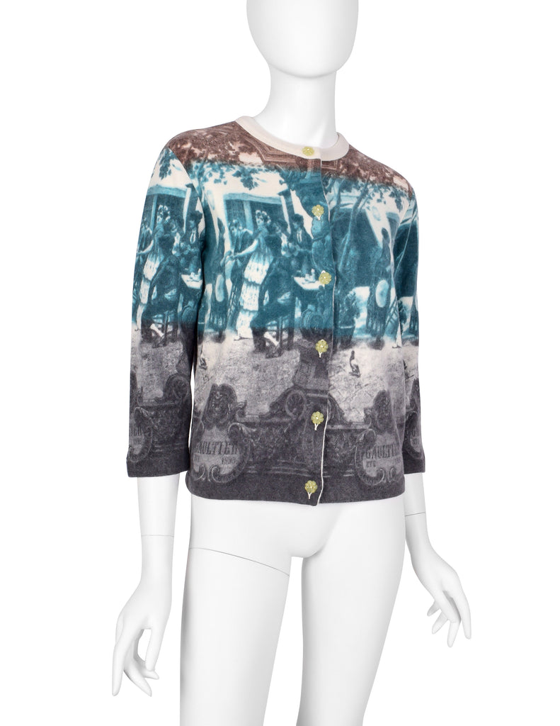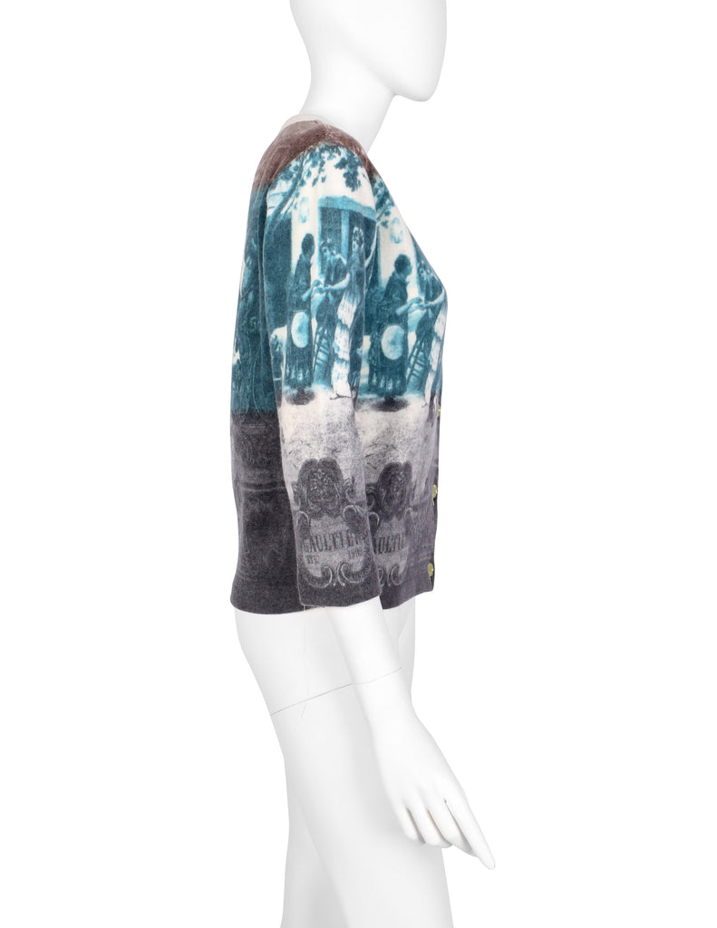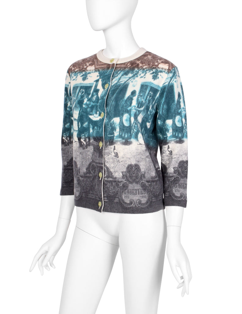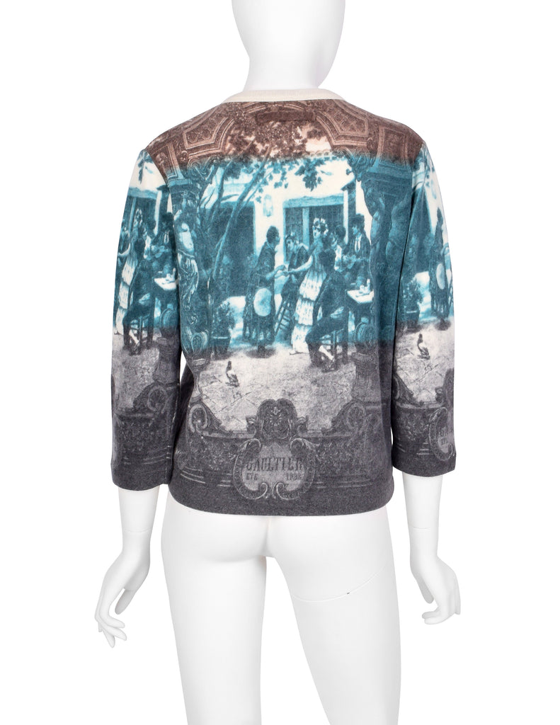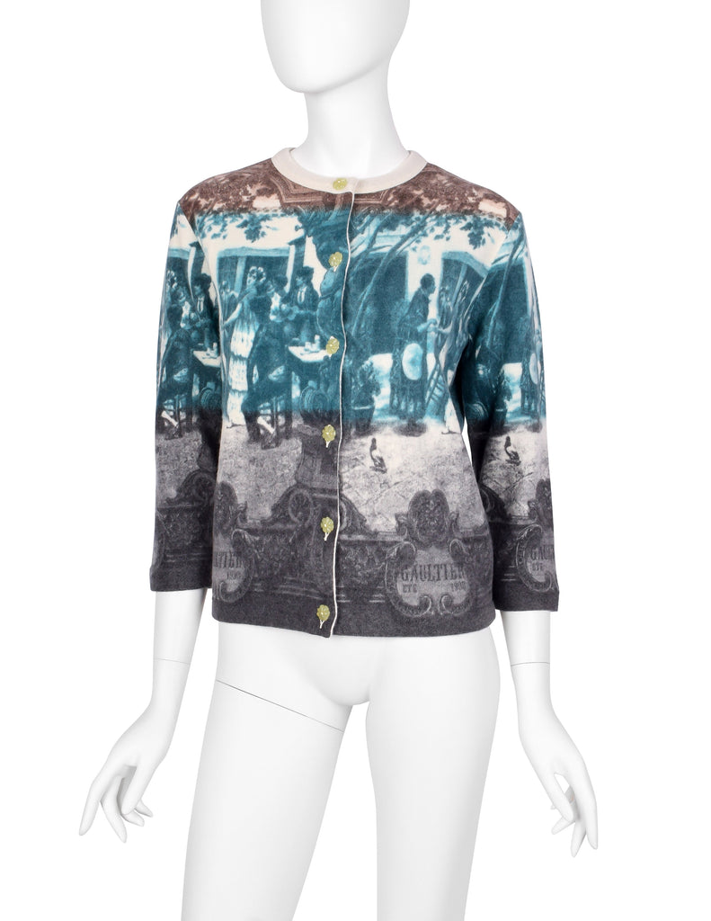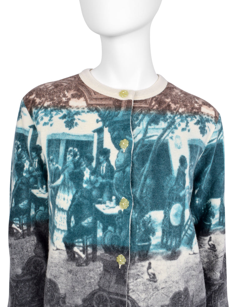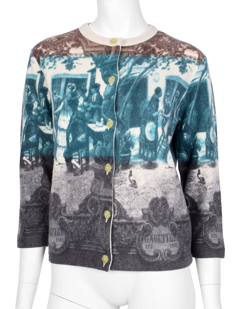 Jean Paul Gaultier Vintage SS 1998 Scenic French Courtyard Wool Cardigan Sweater