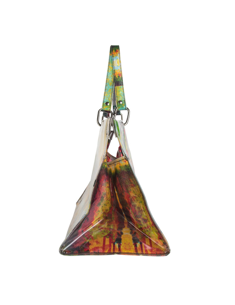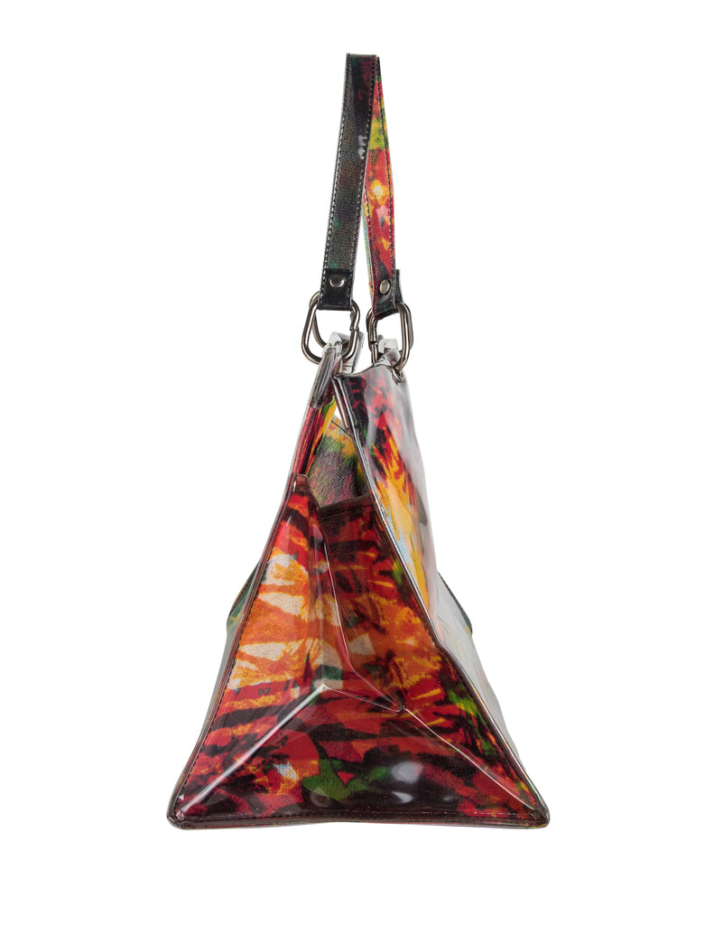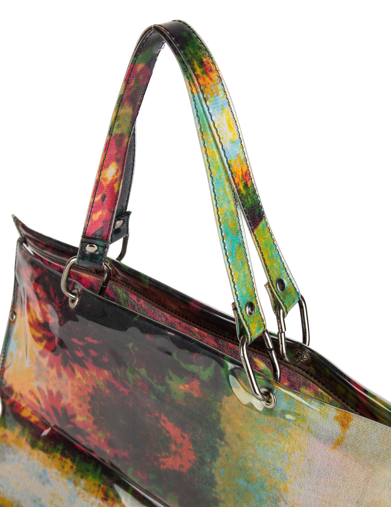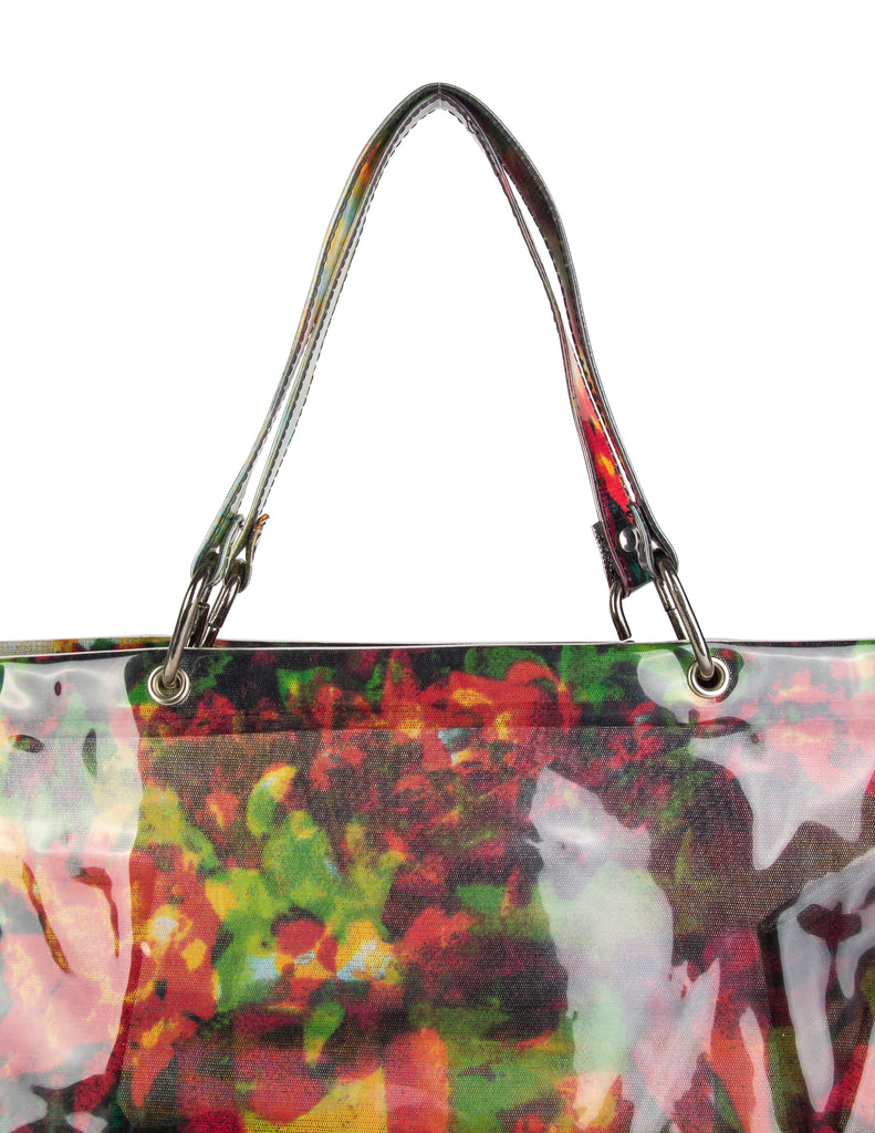 Out of this world vintage Jean Paul Gaultier bag from the Spring/Summer 2000 'Love Boat' Collection. This extremely rare tote bag features a vibrant, Tahitian print mesh encased in clear vinyl. Spacious interior with attached clear zip bag for Small items. Original tag still attached, this bag has never been used.