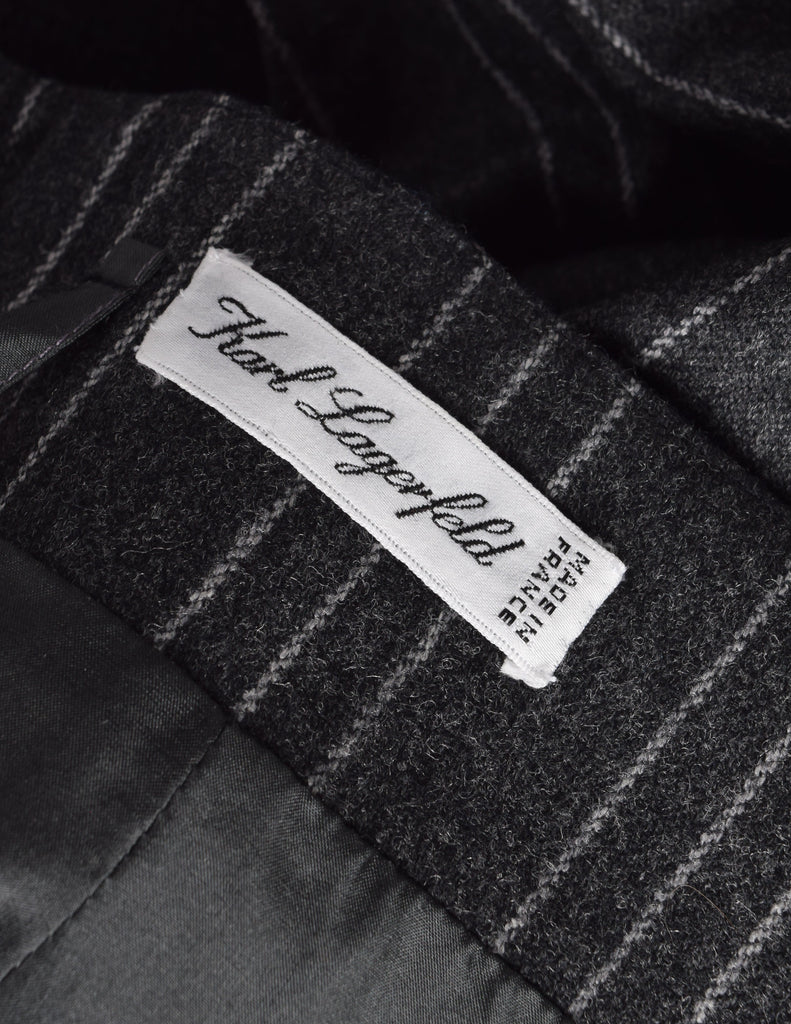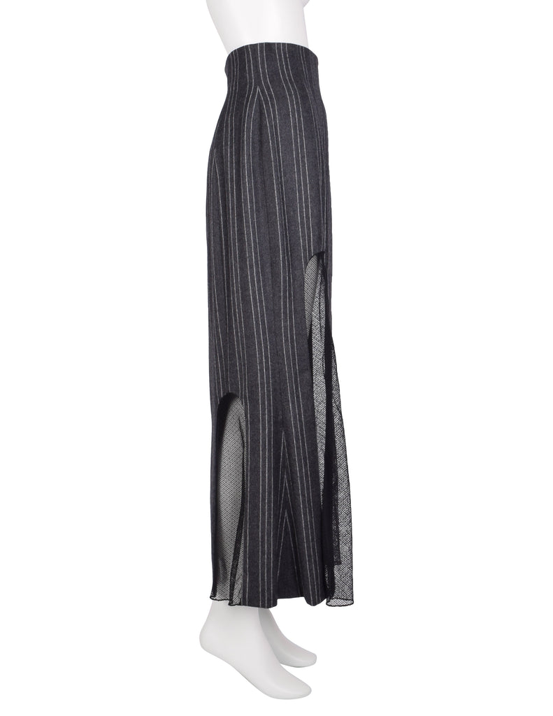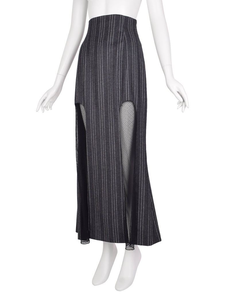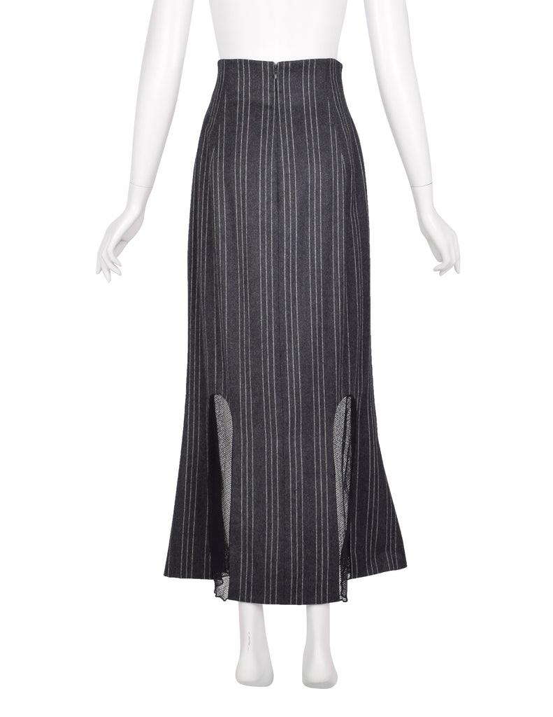 Karl Lagerfeld Vintage AW 1993 Grey Pinstripe Wool Mesh Panel Skirt