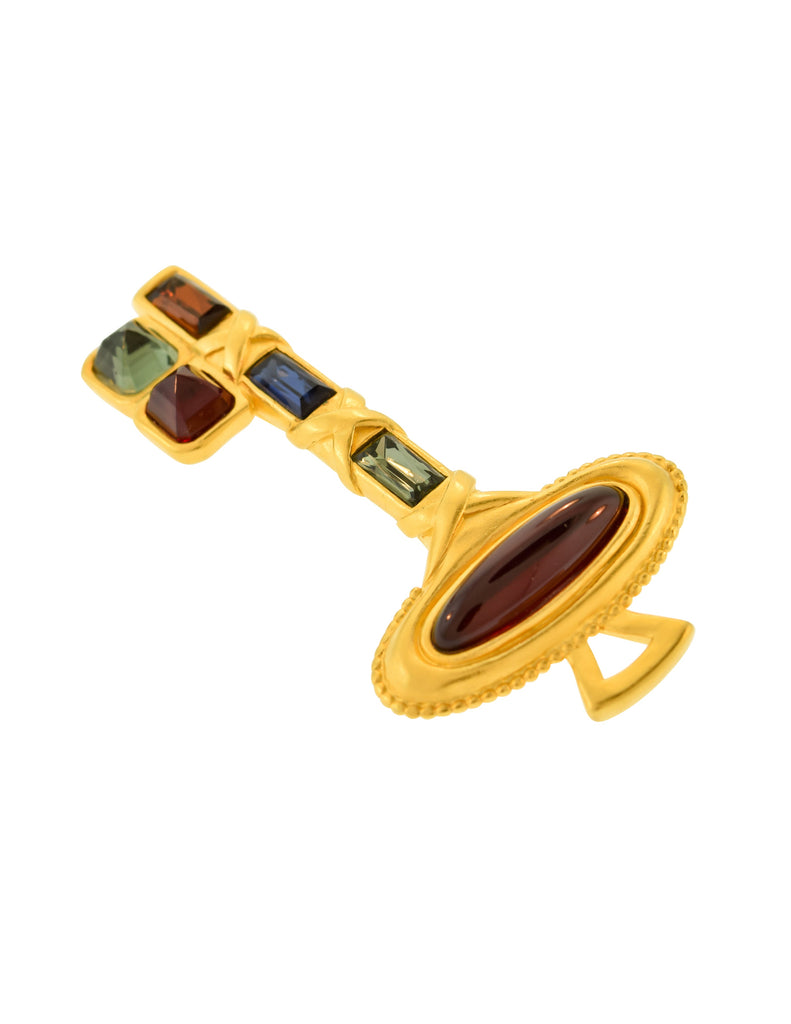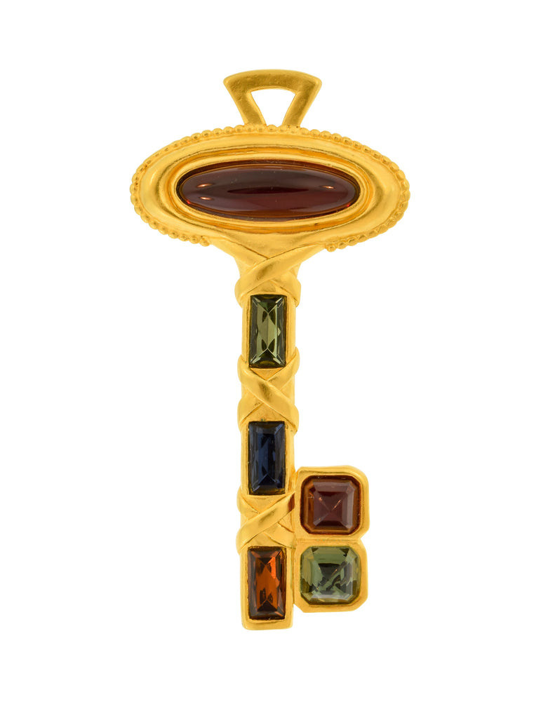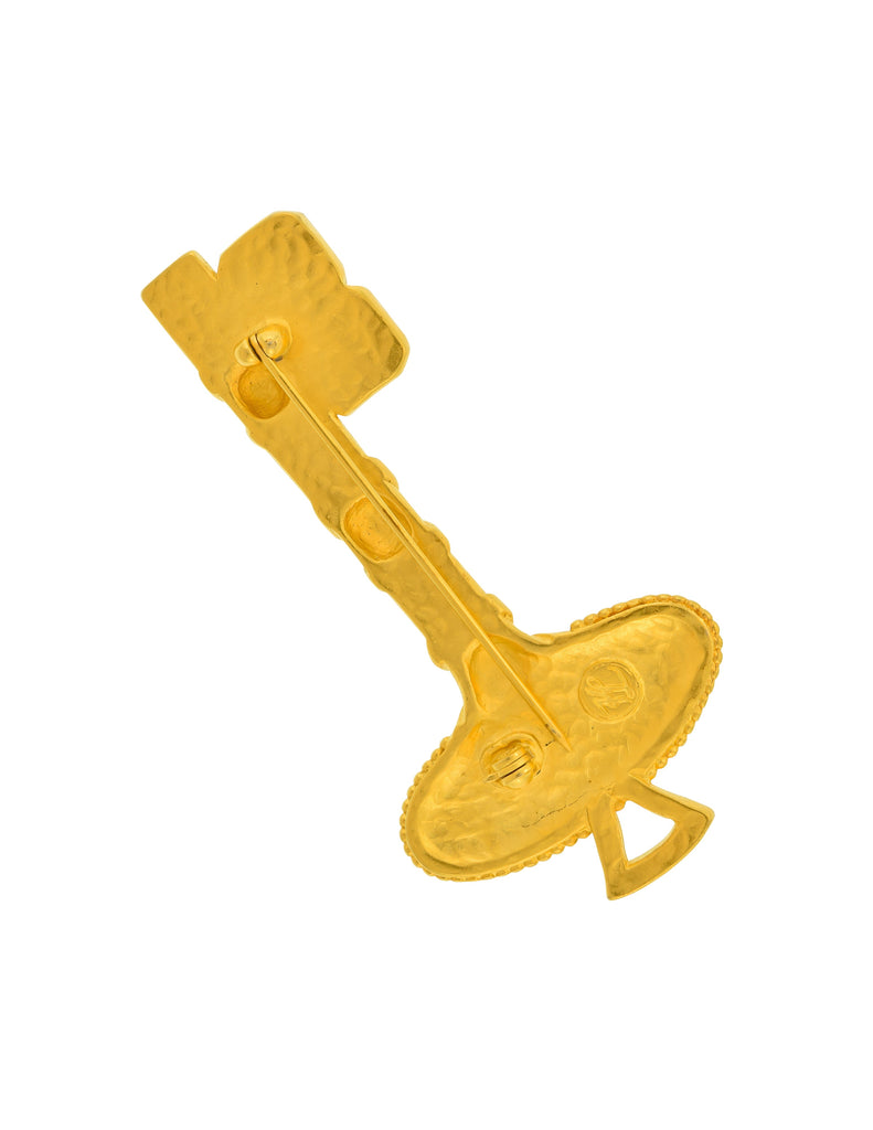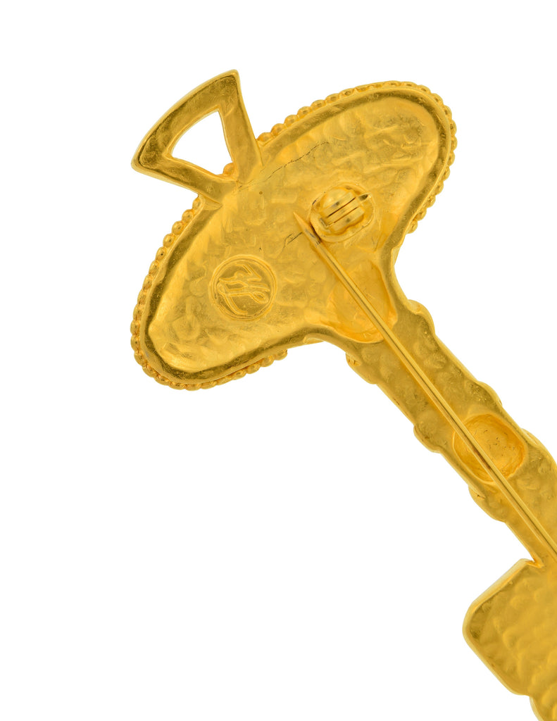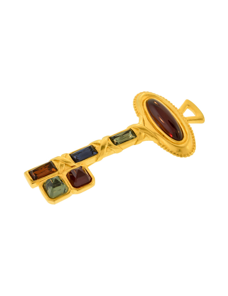 Karl Lagerfeld Vintage Gem Encrusted Brushed Gold Key Brooch Pin