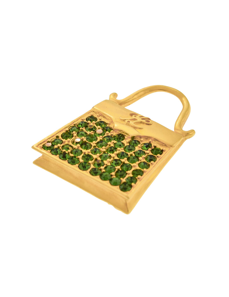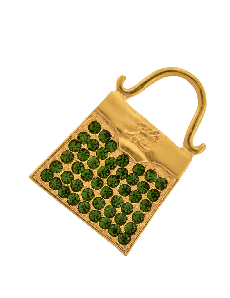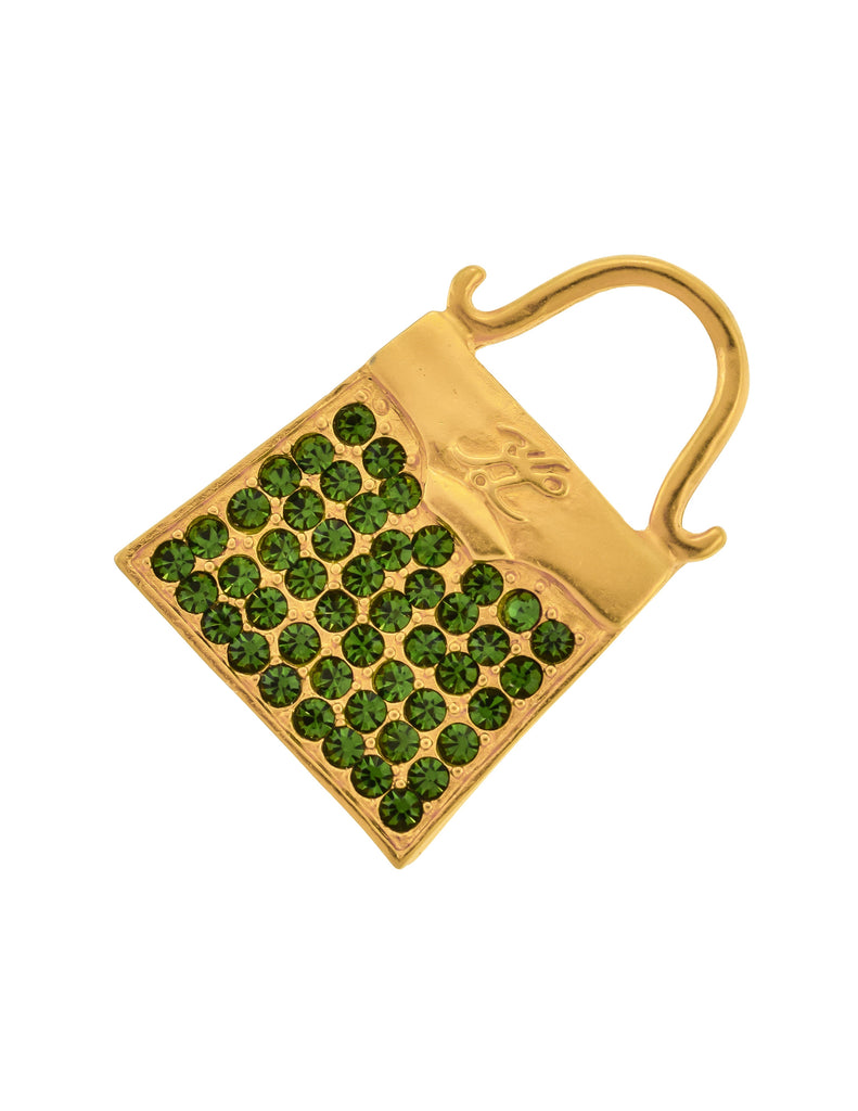 Karl Lagerfeld Vintage Golden Green Rhinestone Handbag Brooch
