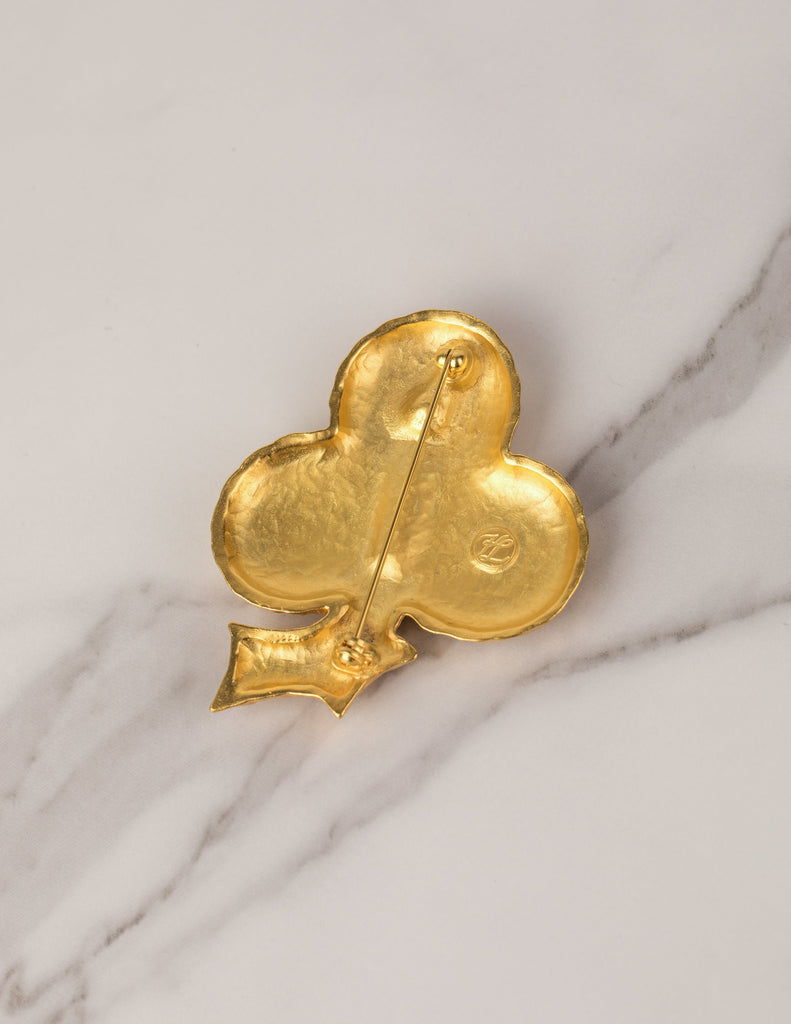 Karl Lagerfeld Vintage Golden Lucky Club Clover Brooch