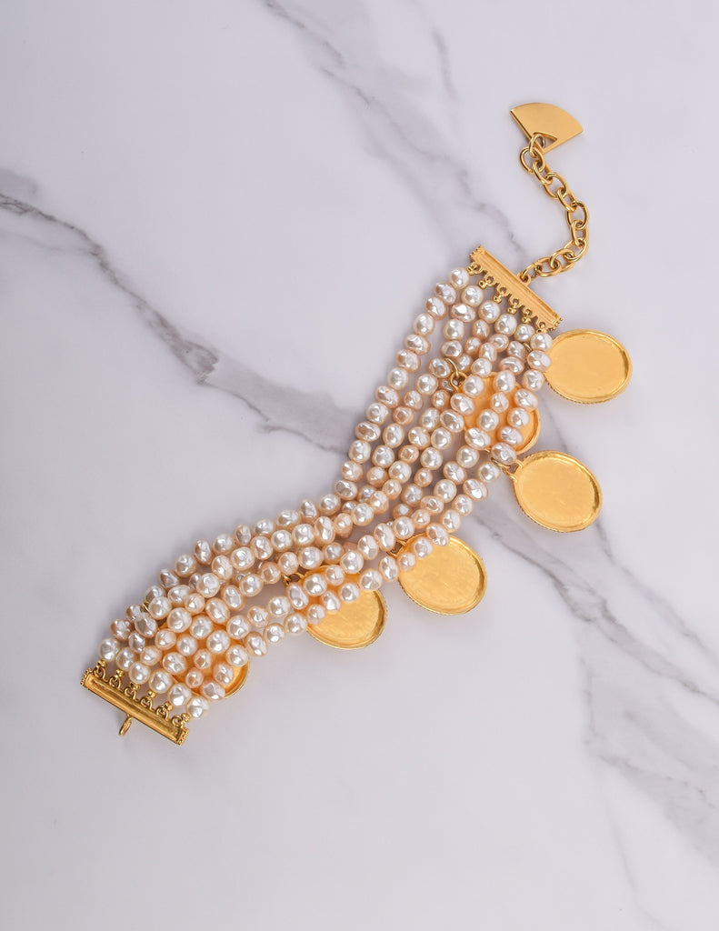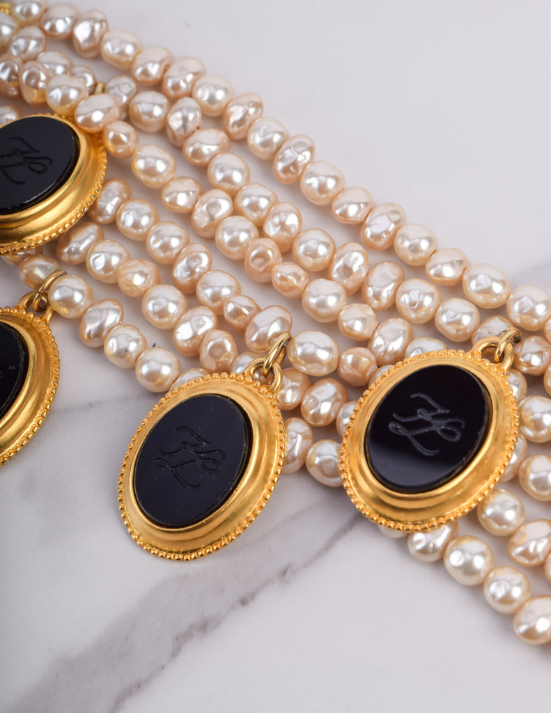 Karl Lagerfeld Vintage Incredible Multistrand Pearl and Dangling Cameo Bracelet