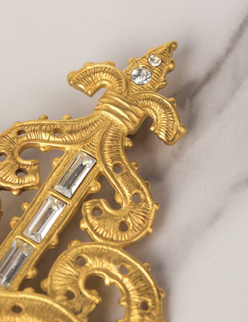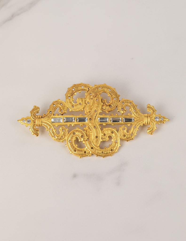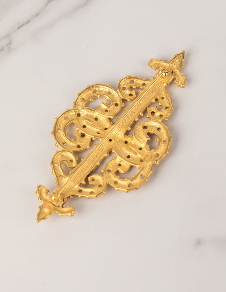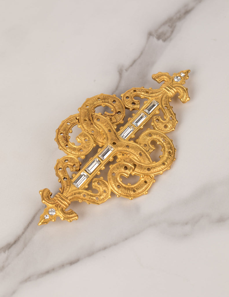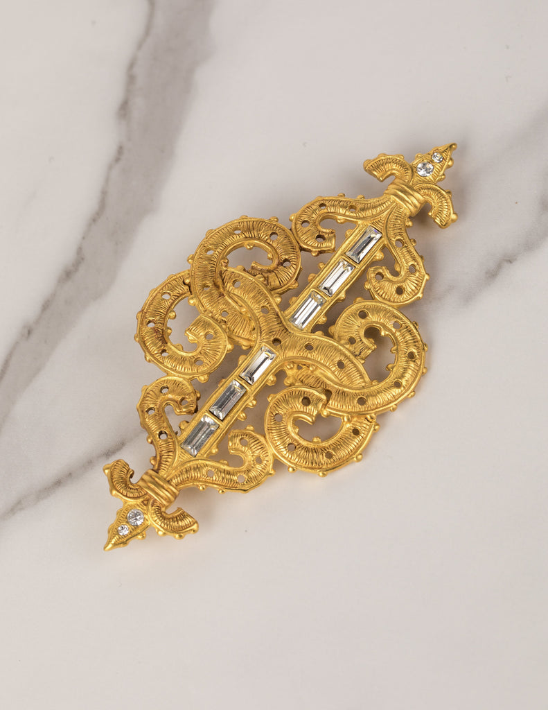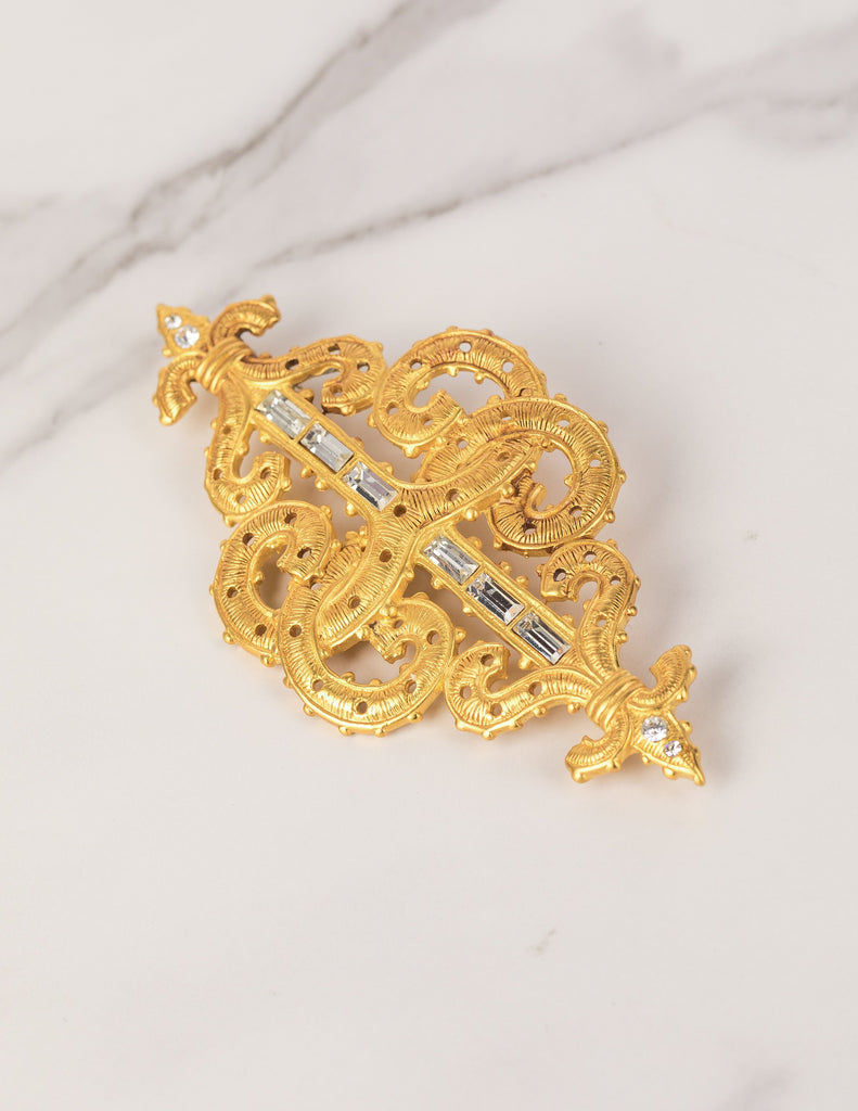Karl Lagerfeld Vintage Large Golden Baroque Fleur de Lis Brooch