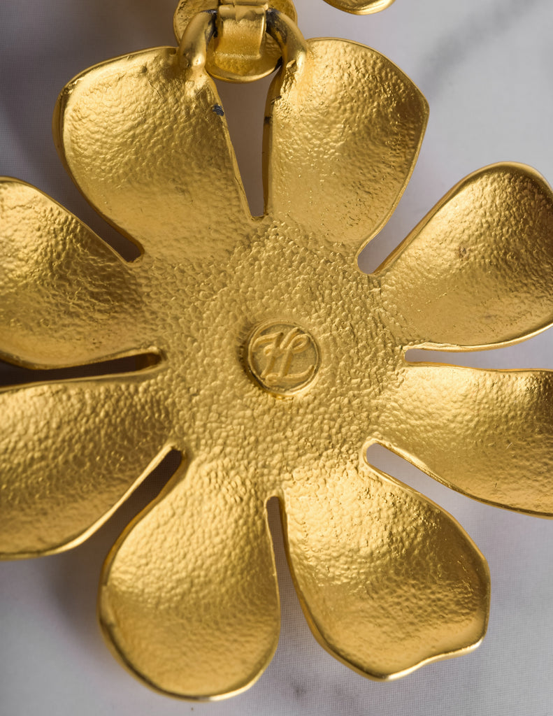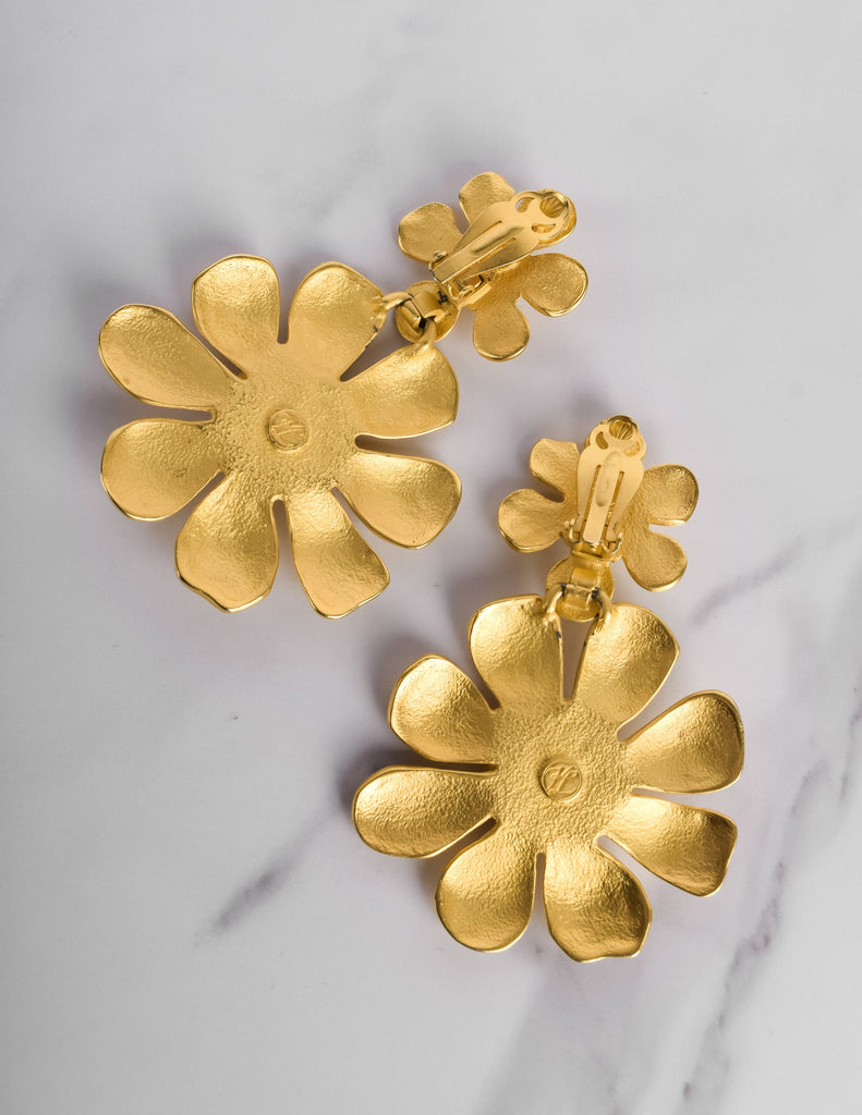 Karl Lagerfeld Vintage SS 1991 Massive Golden Double Flower Statement Earrings